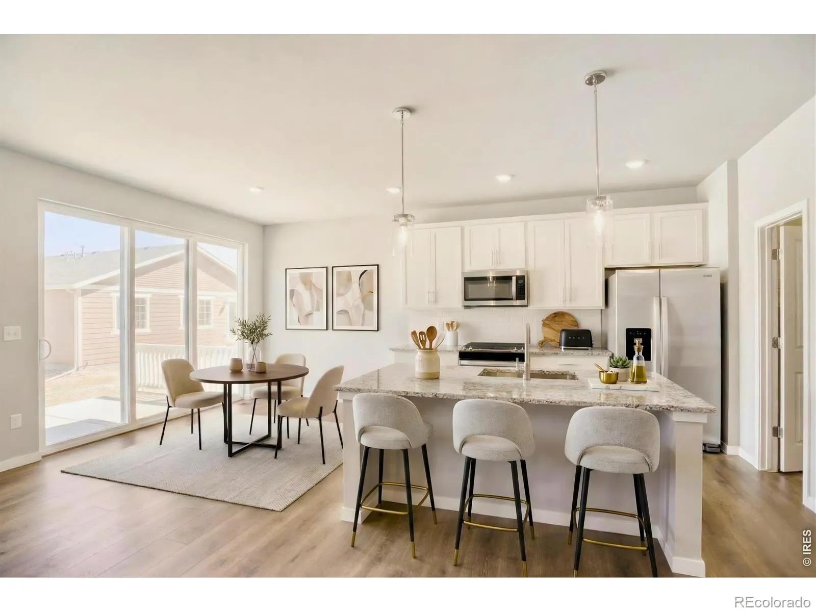 No Metro! This South Facing light-filled ranch floorplan offers 3 bedrooms, a 2-car garage with a service door, and an open layout designed for both comfort and functionality. Enjoy cooking and entertaining in the upgraded kitchen featuring stainless steel appliances, a grand center island, stylish flooring, and upgraded soft-close cabinetry. The great room is anchored by a cozy gas fireplace and offers a bright, open layout. Step outside to the backyard patio-perfect for relaxing or entertaining and enjoying Colorado’s lifestyle. Unwind in the spacious primary suite with an elegant bath showcasing upgraded fixtures. Main-level laundry is centrally located to all bedrooms for everyday convenience. Additional highlights include A/C, a tankless water heater, and designer finishes throughout. Ideally located on the east side of Berthoud with easy access to shopping, dining, Longmont, Loveland, highway 287 and I-25. Residents will enjoy an upcoming amenity center featuring a pool, playground, park, outdoor recreation areas, and more! Move in Ready! No Metro tax! Stop by our office located on 154 Buckwheat Ln, Berthoud, CO 80513. Or by appointment.