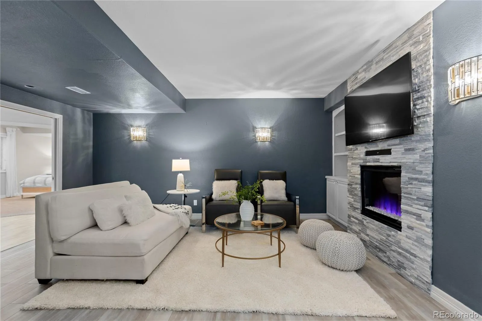 Upstairs, a loft overlooks the great room and leads to a spacious primary retreat with a five-piece bath and a generous walk-in closet. The second level also includes three additional bedrooms, including an en-suite, and captures mountain views. The professionally finished basement expands the lifestyle even further with a large media area, game space, a huge mirrored exercise studio, a guest suite, and plenty of storage. Out back, enjoy a rare, level and fully fenced near half-acre with a natural waterfall and pond feature, two patios, a basketball hoop, and room to spread out and host, all with the convenience of quick access to C-470, the DTC corridor, and everyday Highlands Ranch living.