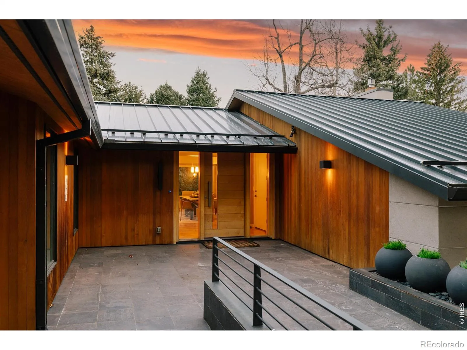 Privately positioned on 0.57 acres behind a dramatic, illuminated gated driveway, this architecturally distinguished estate, renovated by Harvey Hine, reflects a refined mid-century modern aesthetic and offers a sophisticated balance of timeless design, privacy, and effortless livability. The main-floor primary suite offers a serene retreat with a generous walk-in closet and spa-inspired bath, allowing for luxurious single-level living. An oversized pivoting wood door provides an elegant introduction to the home. The living room features a vaulted ceiling, a statement tiled fireplace, and maple hardwood floors, while large windows and glass doors create a natural connection to the elevated rear deck, ideal for entertaining or quiet evenings at home. The chef’s kitchen blends mid-century-inspired warmth with modern performance, featuring custom walnut cabinetry, a dramatic waterfall stone island, designer tile backsplash, walk-in pantry, Wolf range, and Sub-Zero refrigeration. A refined library lounge transitions to a flexible office or fifth bedroom with direct access to the front patio. The fully finished lower level includes a media lounge and private guest suite, with architectural renderings available to reimagine the space as a wellness retreat. Outdoors, the grounds unfold as a secluded oasis with towering 50-foot evergreens, natural boulders, a stone patio, a seasonal water feature, and multiple intimate seating areas. A heated bonus studio provides exceptional flexibility as a gym, art studio, or private office. With its scale, privacy, and layout, the property also presents compelling Sundance Film Festival 2027 rental potential. Ideally located on one of the most desirable streets in coveted Newlands, just minutes to downtown Boulder, open space, trails, shops, and schools. Explore the 3D tour and property video.