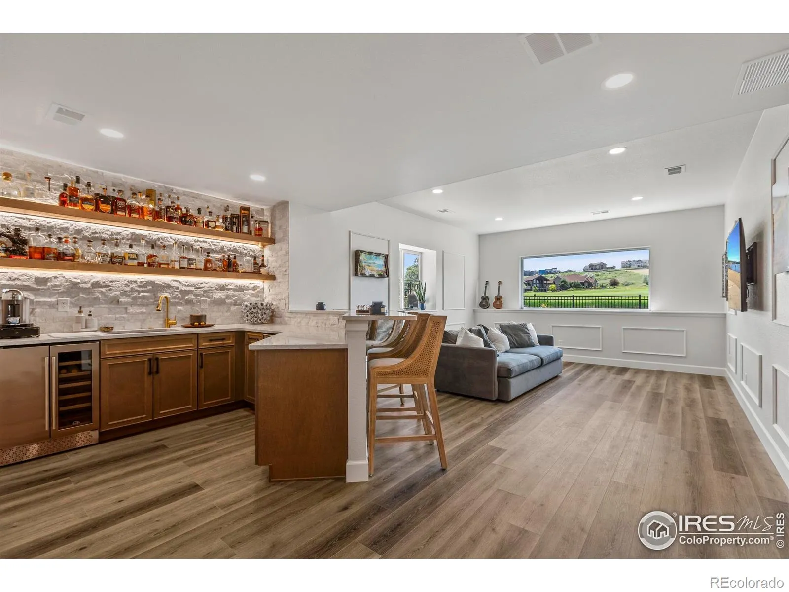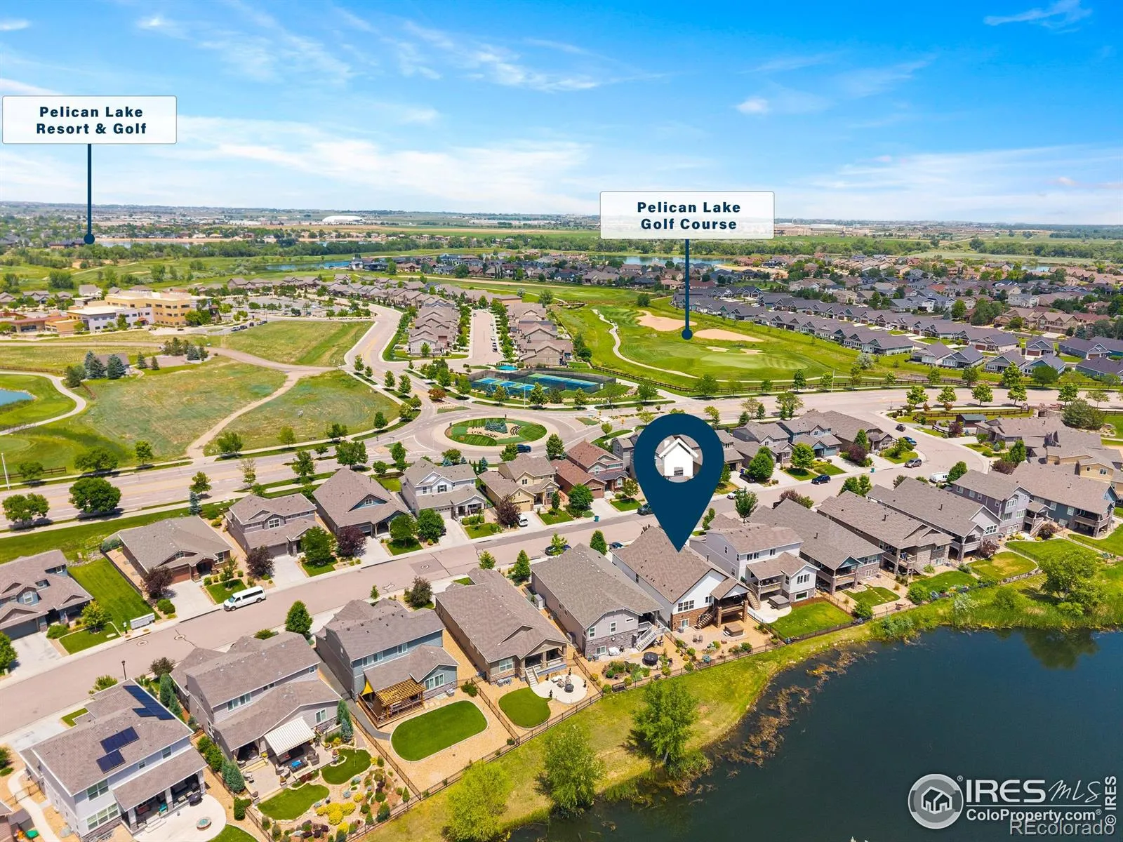 A rare opportunity to experience refined golf course living at Pelican Lakes. This premier golf course property is perfectly situated on a private pond overlooking the 4th hole of the Pelican Falls Course, offering west-facing sunset views and free from errant golf shots. Custom finishes and thoughtful upgrades throughout make this a truly one-of-a-kind residence. The finished mudroom features custom cabinetry, a second pantry, and additional refrigerator. The fully finished basement is ideal for entertaining with a wet bar, wine refrigerator, ice maker, custom shelving, and a “man cave” behind hidden built-in bookshelf door. A large picture window fills the space with natural light and showcases stunning golf course views. The main level includes an office, guest bathroom, eat-in kitchen, spacious living room, and access to the deck overlooking the pond and fairway. Upstairs offers two bedrooms, full bathroom, loft, and a luxury primary suite with oversized shower, dual vanity, walk-in closet, and peaceful wildlife and golf course views.