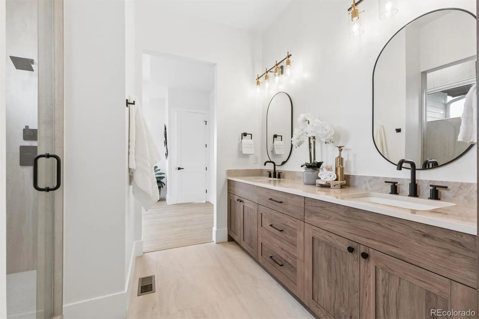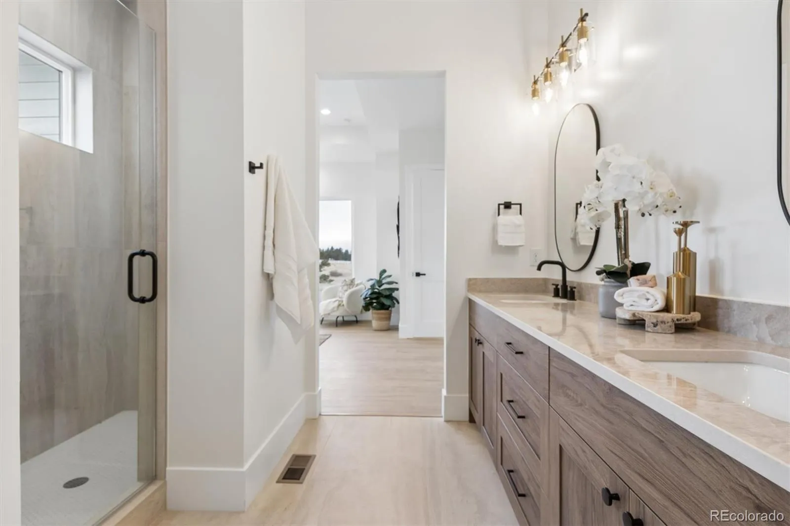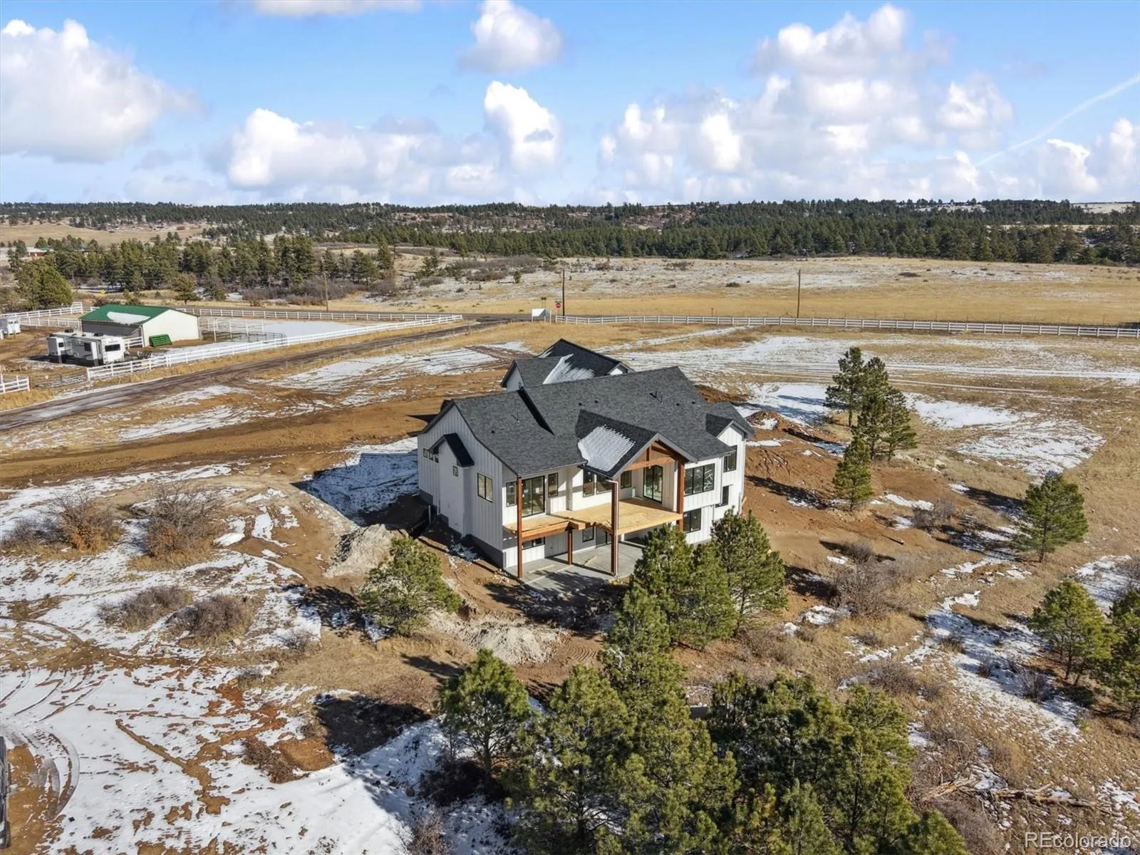 New Construction Zoned Horse Property! Situated on 5 acres, this custom ranch is ready for you and your animals, toys, family or whatever! Located conveniently within approx. 15 minutes to downtown Castle Rock or downtown Parker, this hidden gem of a neighborhood is what you have been looking for. In addition to being on well and septic, this small community has No HOA and No Metro District! The covered front porch w/vaulted entry is warm & inviting w/wood ceiling and recessed lighting. Entering into the foyer, the striking views of towering pines give a sense of a welcome family space. The wide plank luxury vinyl plank floors run throughout the entire main living areas. To the left is a powder room while 2 bedrooms w/Jack-n-Jill bath are on your right. From the volume ceilings, custom lighting and rails, fireplace surround w/shelving & linear fp are just a few of the custom touches. The gourmet kitchen is sure to delight any discerning chef. The expansive center island looks out to the living & dining room spaces. Kitchen includes gas cooktop, dbl ovens, custom cabinets, quartz counters & separate pantry. Relax at the end of the day in your primary suite w/views to the backyard acreage, en suite bath w/walk in shower, dual vanities, linen storage & 16×9 walk in closet. Finishing out the main floor is a huge mudroom/laundry room space w/built in storage lockers & utility sink w/storage cabinet. Embarking downstairs, the finished walk out basement includes 2 more bedrooms and 2 more full bathrooms. The 4th bedroom flexes as work out space, office or den. Plenty of unfinished space still left in the basement to add additional living space if needed. Enjoy relaxing on the covered patio off your walk out basement space. The hidden gem of the house is the huge unfinished attic space in the oversized garage! With over 600+ sq. ft. that could be used as playroom, office, or just more storage! Too many good things to see. Don’t wait, see this home before it’s too late!