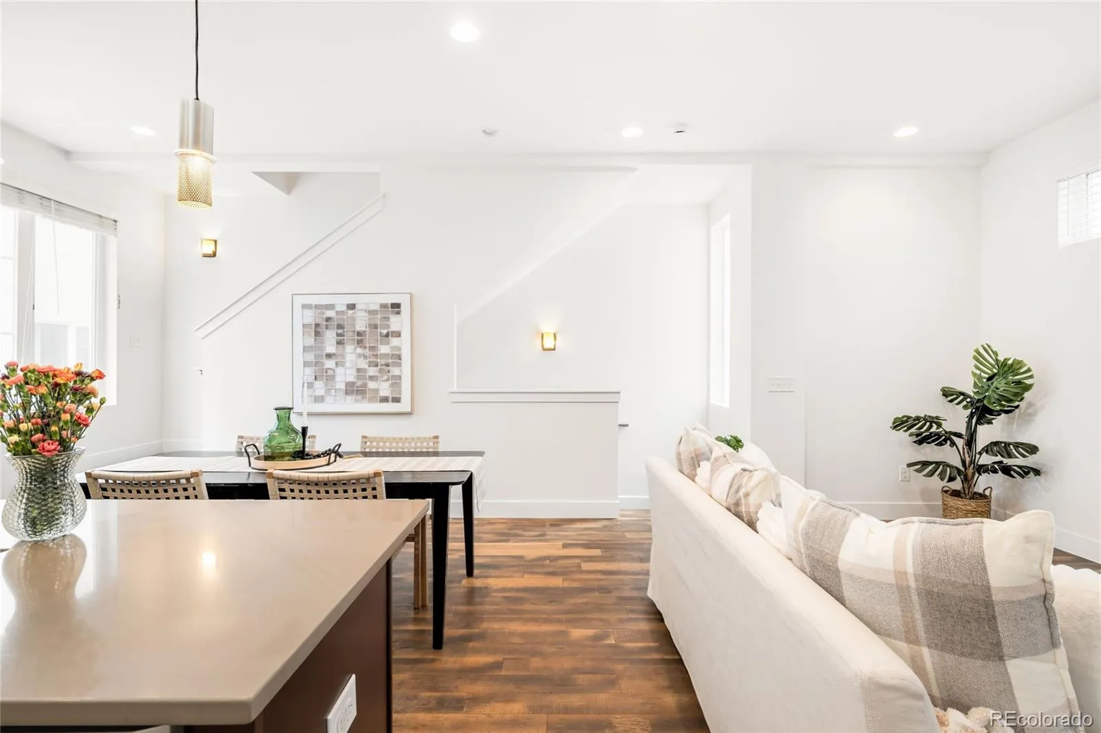 Modern city living reaches its peak in this refined Jefferson Park townhome showcasing stunning views. Inside, a bright open-concept main level showcases 10-foot ceilings, clean contemporary finishes and a seamless flow between the kitchen and luminous dining and living areas. The sleek kitchen anchors the space, featuring stainless steel appliances, generous cabinetry, a stylish tiled backsplash and a center island. Upstairs, two spacious bedrooms each feature private en-suite baths, offering true dual-primary flexibility for guests or work-from-home needs. Crowning the home is an expansive rooftop deck with sweeping city and mountain views — an urban sanctuary perfect for sunset gatherings, summer dinners or quiet mornings overlooking the Front Range. A tankless water heater enhances efficiency, while the attached two-car garage adds everyday convenience. Set in the heart of Jefferson Park, this low-maintenance residence provides proximity to coffee shops, local dining and downtown.