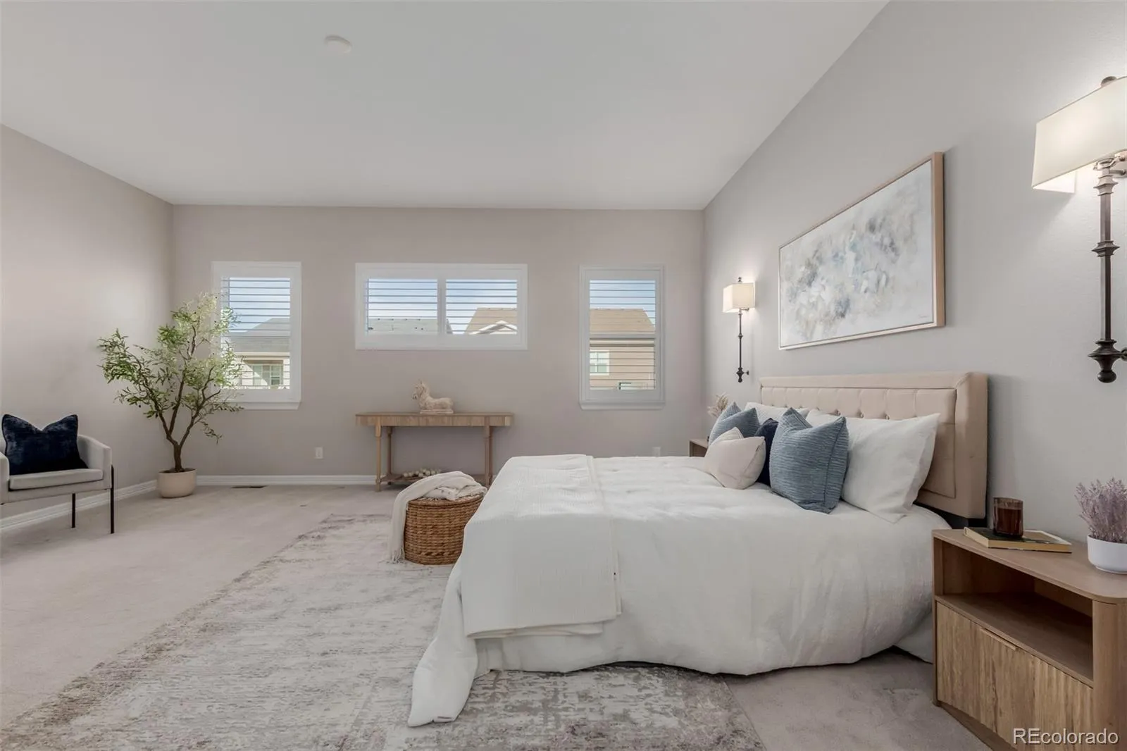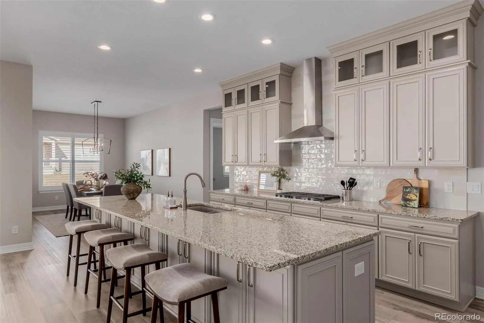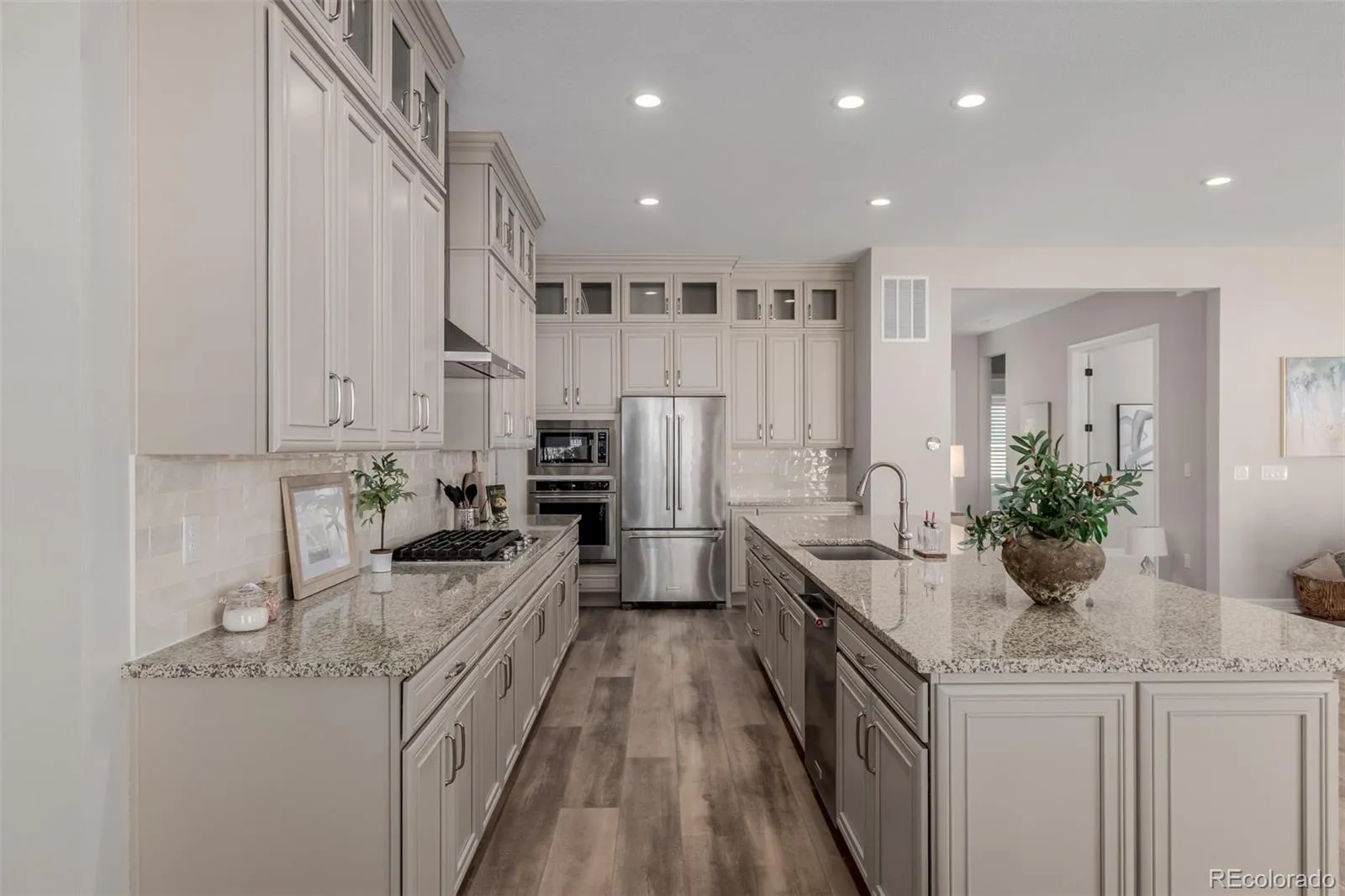 LIKE NEW, this Drake model, which is apart of the Regency 55+ community at Montaine, Boulder Collection, by Toll Bros., comes appointed with all the finest structural upgrades and design center features: the entire backside of the home has been bumped out 5′ which extends the patio, dining space, primary bedroom and also increases the kitchen island length to a 13′ countertop (the island now includes wrap around base cabinetry), the kitchen has been upgraded with a gourmet kitchen package featuring KitchenAide stainless steel appliances: five burner gas cooktop, convection oven, built in microwave and French door refrigerator, the addition of top-stacked glass cabinets above the 42″ upper cabinetry really accentuates the 10′ ceilings, a gas fireplace in the center of the family room has a hearth and stacked stone to the ceiling with mantle, the whole house has been custom fit with plantation shutter window treatments, the primary five-piece bath includes a spa like floating tub and fully tiled shower with seamless glass, the laundry has additional cabinets with a utility sink right off the three car garage entrance, and the entire main floor features 9″ luxury vinyl plank flooring (excluding carpet in the bedrooms) and 8′ doors. There is so much more and too much to list! This doesn’t even include the premium lot that faces south and backs to open space which is close to the clubhouse featuring a pool, fitness center, tennis and pickle ball courts, tons of activities and the property is down the block from the entrance to vast open space walking trails! The home has been meticulously lived in for the past two and half years by the original owner. There are limited Boulder Collection series homes left in the Regency. 467 Scrubjay Trl, for it’s improvements, for it’s location, for it’s condition, all for it’s price is the one you want!