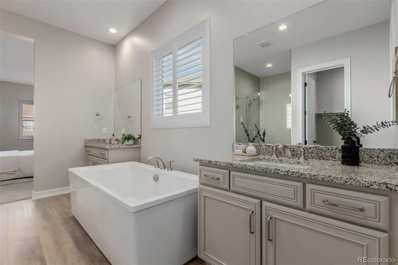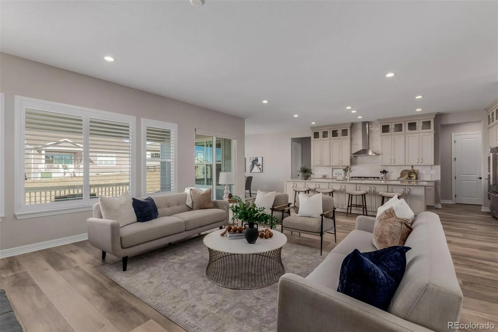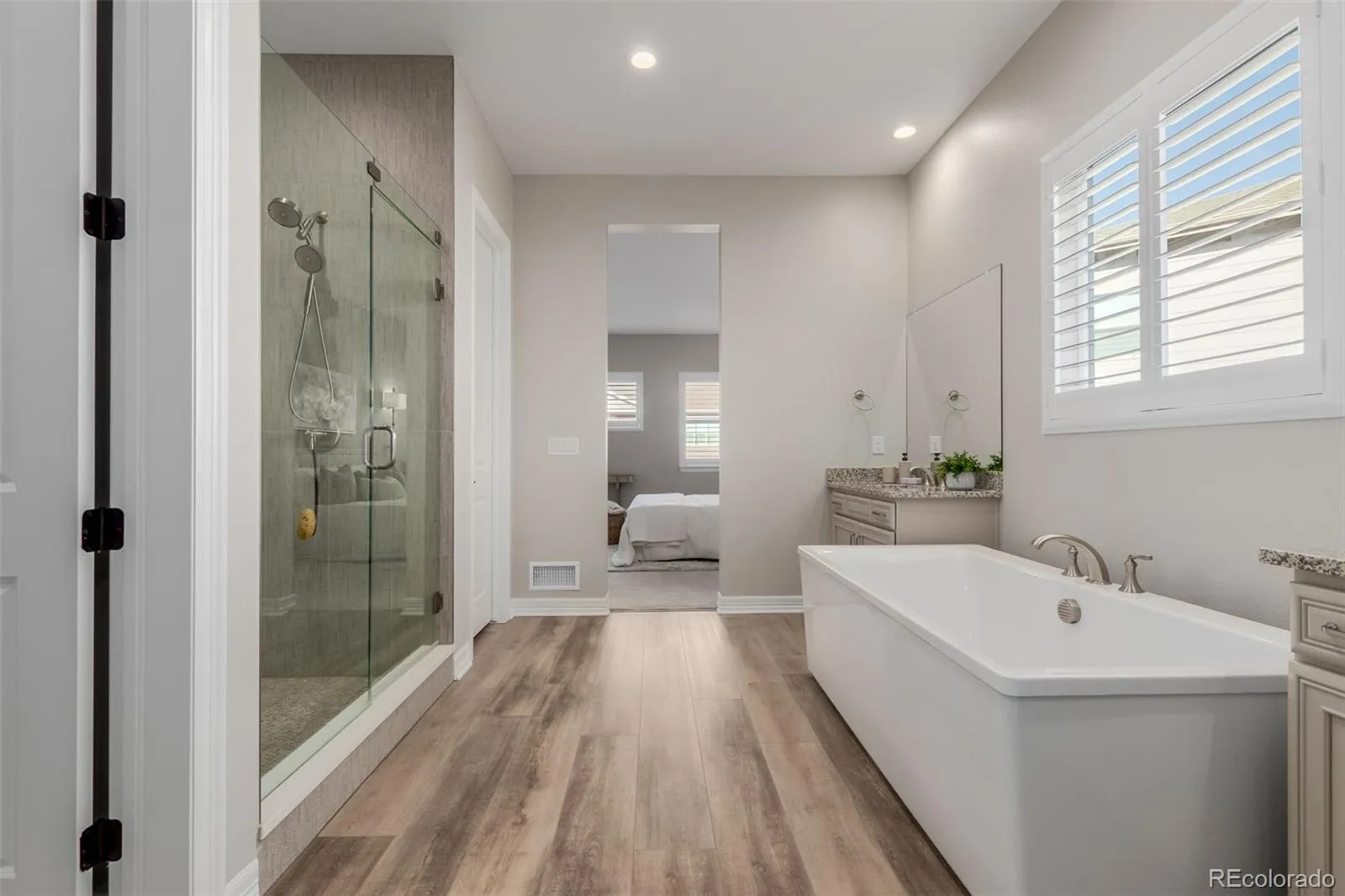 LIKE NEW, this Drake model, which is apart of the Regency 55+ community at Montaine, Boulder Collection, by Toll Bros., comes appointed with all the finest structural upgrades and design center features: the entire backside of the home has been bumped out 5′ which extends the patio, dining space, primary bedroom and also increases the kitchen island length to a 13′ countertop (the island now includes wrap around base cabinetry), the kitchen has been upgraded with a gourmet kitchen package featuring KitchenAide stainless steel appliances: five burner gas cooktop, convection oven, built in microwave and French door refrigerator, the addition of top-stacked glass cabinets above the 42″ upper cabinetry really accentuates the 10′ ceilings, a gas fireplace in the center of the family room has a hearth and stacked stone to the ceiling with mantle, the whole house has been custom fit with plantation shutter window treatments, the primary five-piece bath includes a spa like floating tub and fully tiled shower with seamless glass, the laundry has additional cabinets with a utility sink right off the three car garage entrance, and the entire main floor features 9″ luxury vinyl plank flooring (excluding carpet in the bedrooms) and 8′ doors. There is so much more and too much to list! This doesn’t even include the premium lot that faces south and backs to open space which is close to the clubhouse featuring a pool, fitness center, tennis and pickle ball courts, tons of activities and the property is down the block from the entrance to vast open space walking trails! The home has been meticulously lived in for the past two and half years by the original owner. There are limited Boulder Collection series homes left in the Regency. 467 Scrubjay Trl, for it’s improvements, for it’s location, for it’s condition, all for it’s price is the one you want!