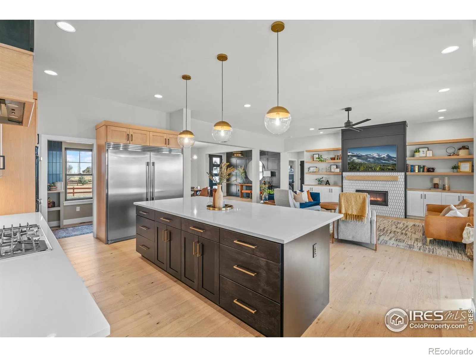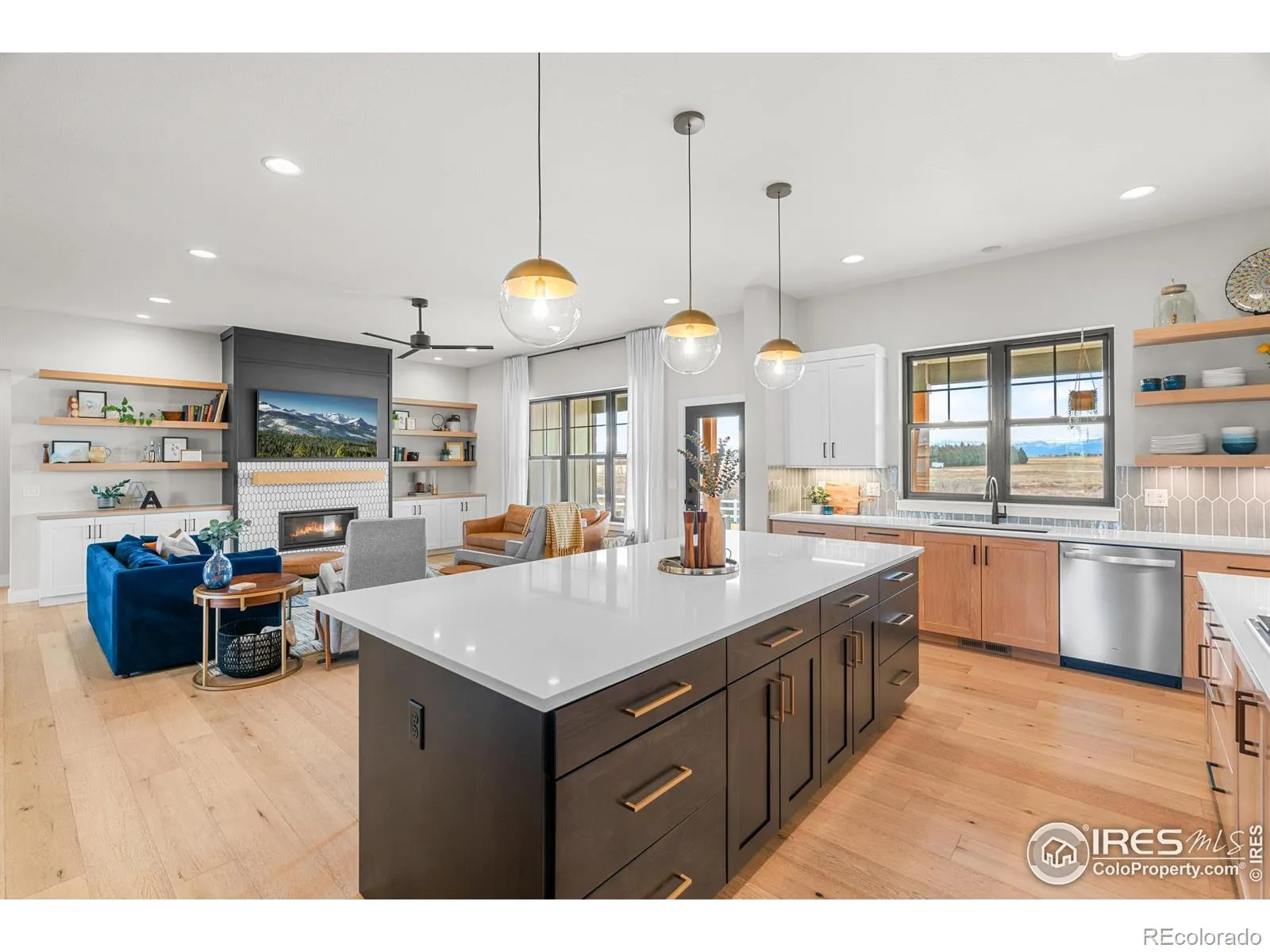 OPEN HOUSE THIS SATURDAY THE 7TH FROM 12:00 – 2:00 PM! This luxury custom residence showcases architecturally refined living, thoughtfully curated with modern, high-end finishes. Expansive windows frame panoramic MOUNTAIN VIEWS, creating a seamless connection between luxury interiors and the surrounding landscape – all with NO HOA restrictions or metro tax. The home offers 3 bedrooms, 2.5 baths, and a private office, anchored by a chef’s kitchen featuring custom Milarc cabinetry, class 4 quartz countertops, a 30″ x 30″ integrated refrigerator-freezer, coffee and dry bars, and elegant formal dining. The living space is elevated by a gas fireplace, while Pacifica white oak hardwood floors bring warmth, durability, and timeless sophistication throughout. Offering 5,026 total square feet, the residence includes a generous 2,513 square foot unfinished basement, providing endless possibilities for personalized finishes. Set on 1.2 ACRES, the exterior delivers both presence and privacy with a circular drive, expansive grounds, and thoughtfully designed outdoor space-including a covered back patio and built-in trampoline for modern family living. A rare and highly desirable addition, the 40′ x 80′ insulated SHOP features 16-foot ceilings, 10′ and 14′ bay doors, 220V power to the shop, RV dump station, and 5″ concrete with #4 rebar to superior strength offering unmatched flexibility. Completing the estate is a private-entry in the shop with a 612 square foot non-conforming CASITA with one bedroom and one bath. This is modern luxury redefined-architectural, versatile, and truly one of a kind.