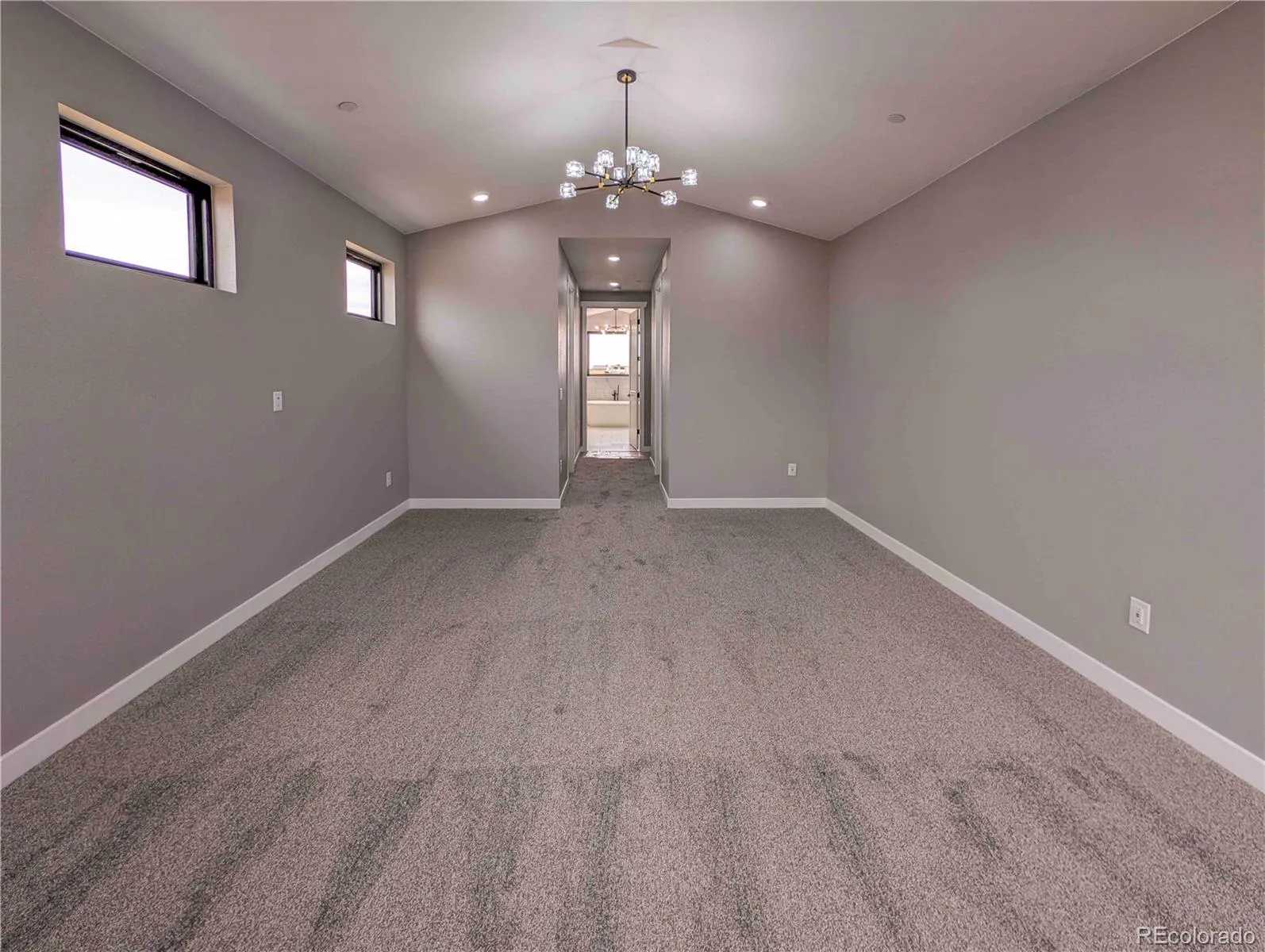 This beautifully designed residence features a gourmet kitchen, high ceilings throughout, and architectural exterior lighting that enhances the home’s presence. The main level offers three spacious bedrooms and a private office, providing both comfort and functionality.