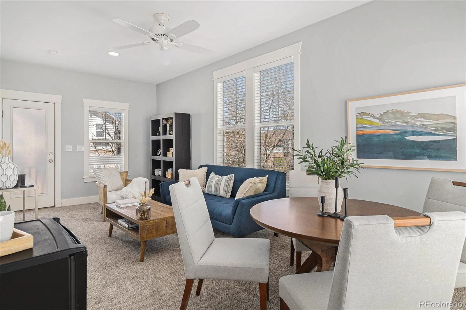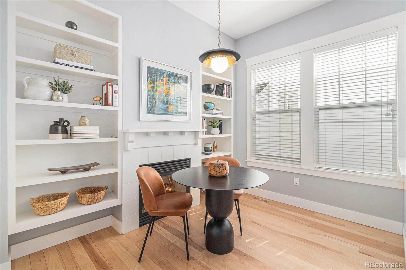 Located in the award-winning Bradburn Village between Boulder and Denver, this semi-custom cottage-style home with detached carriage house/ADU offers a rare blend of charm, flexibility, and modern Colorado living. Perfectly positioned on a premium corner lot near open space, walking trails, and parks, this home stands out for buyers searching for a Bradburn Village home with guest house, multigenerational layout, or income potential. A classic wraparound porch welcomes you into a light-filled open floor plan designed for both everyday comfort and entertaining. Refinished hickory hardwood floors flow throughout the main level, leading to a beautifully updated kitchen featuring 42” cabinetry, quartz countertops, a spacious butler’s pantry, and seamless connection to the family room. The dining nook showcases built-in shelving and a fireplace, creating a warm and inviting centerpiece. A formal dining room, sunlit main-floor office with green space views, and powder bath complete the level.