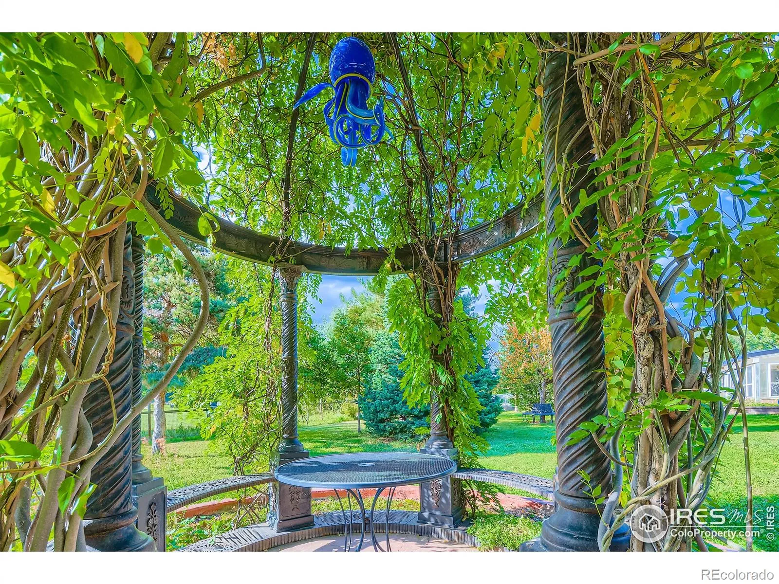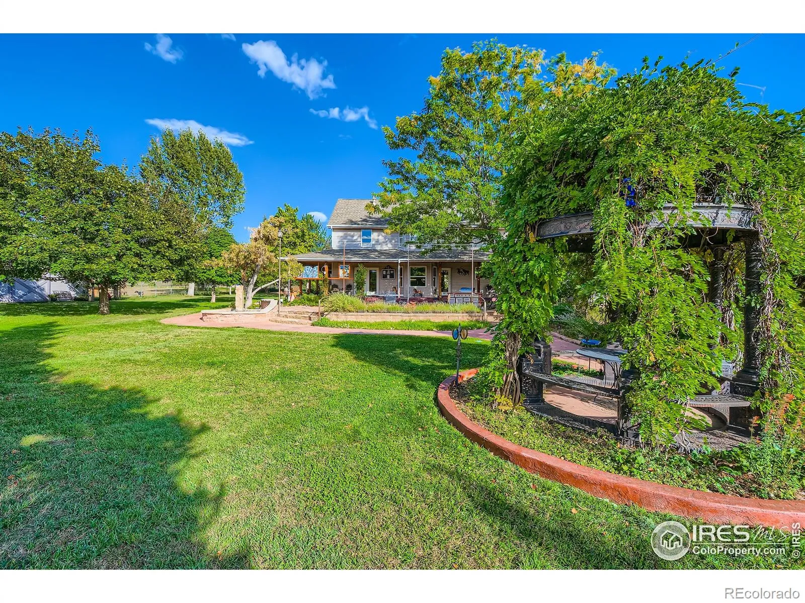Must see meticulously maintained 3-ac horse property offering privacy and sweeping mountain views to the back and Devil’s Backbone views to the front, just minutes from Loveland with easy access to Horsetooth Res, Bobcat Ridge, & Devil’s Backbone! This inviting custom built farmhouse-style home sits on a beautifully landscaped acreage with mature trees and plants, a beautiful grape arbor and gazebo you’ll have to see to believe, beautiful fountain features, lush lawn areas, and thoughtfully designed outdoor living spaces you’ll fall in love with! Perfect for outdoor entertaining or just enjoying the views from the wrap-around covered porch. Enjoy Colorado living at its best from the Hot Tub Deck with panoramic mountain views accessible from the Primary Suite, ideal for relaxing or entertaining. Outdoor features include a BBQ patio area with natural gas hookup (BBQ is included), stone walkways, and multiple entertainment areas. In addition to the huge 4-car garage, there’s also a beautiful outbuilding that can be used as a spacious shop or easily converted to house horses. It even has an attached greenhouse! The fully fenced property and fenced pasture make it perfect for horses or animals. The home offers a warm, functional layout filled with natural light and maple wood trim and cabinetry throughout, including a well-appointed Kitchen with lots of cabinets and counter space, gas appliances and double oven. Enjoy a spacious Primary Bedroom retreat with a large attached Study with built-in cabinetry. Features a formal front Living Room as well as a Family Room with a see-through fireplace to the Dining Room. A spacious Breakfast Nook captures mountain views to the back of the home that can be accessed through the Breakfast Nook or through beautiful French Doors from the Dining Room. This rare acreage property combines scenic views and meticulous landscaping with convenient access to Loveland, Fort Collins, and Northern Colorado! See property website for more pics!