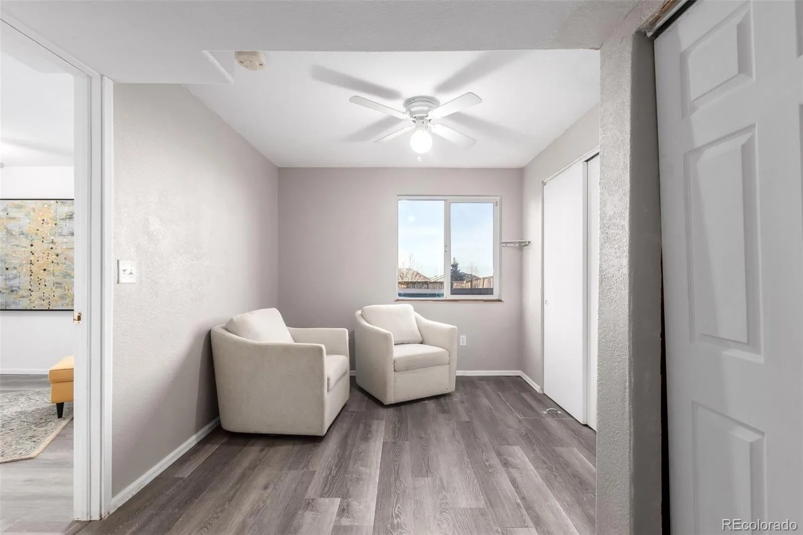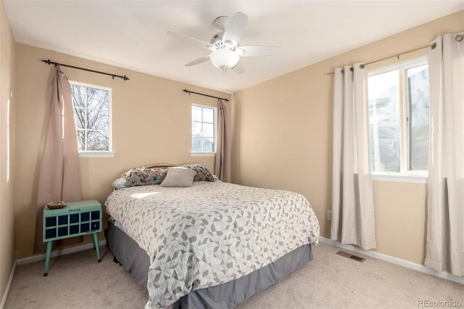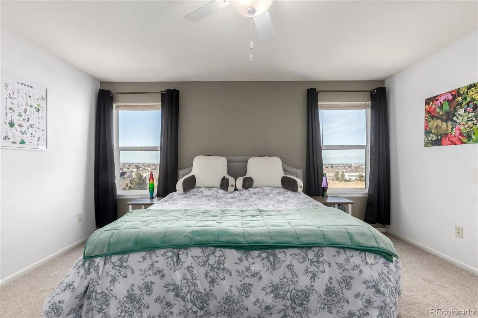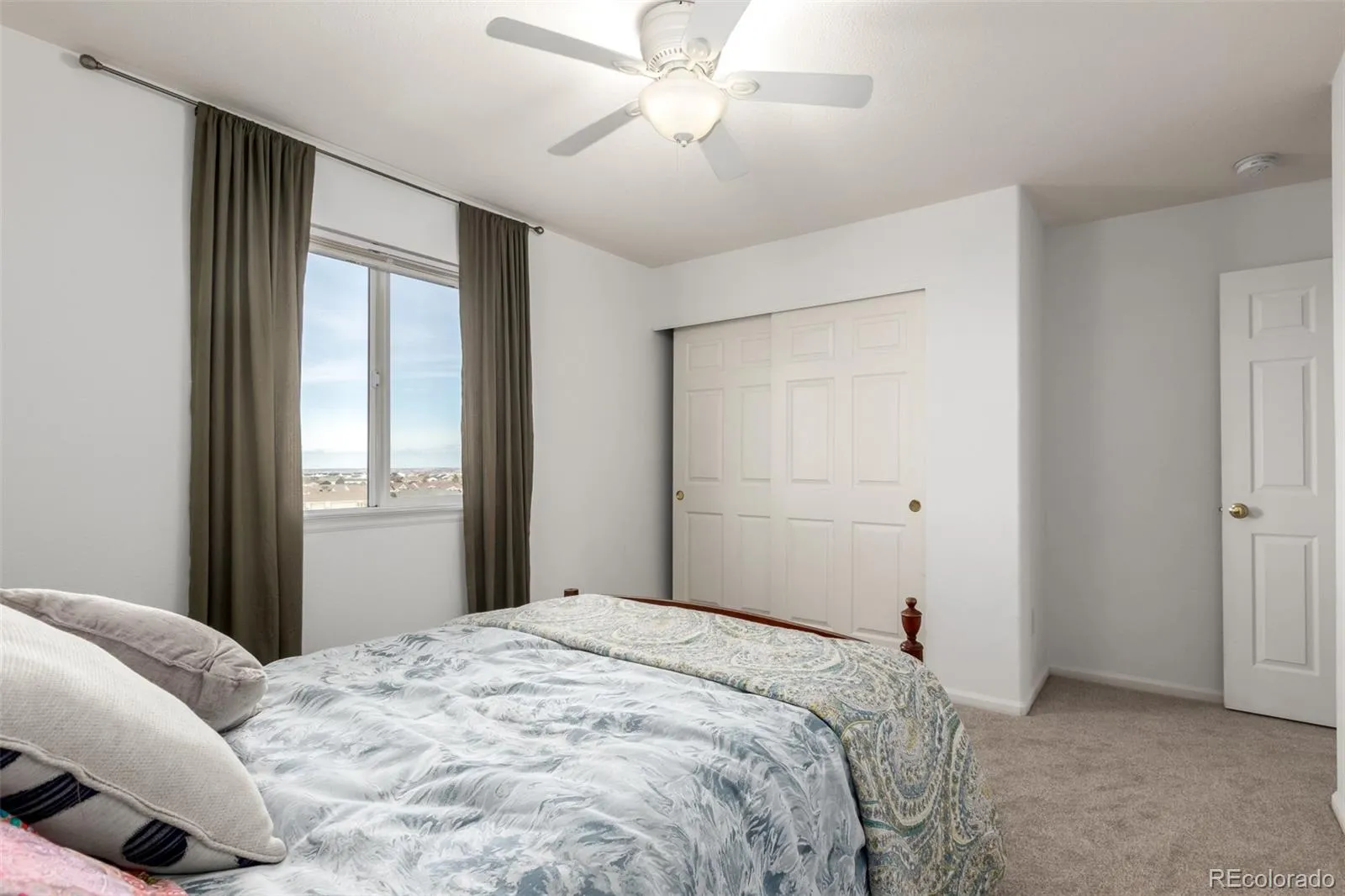 A raised deck extends the living space outdoors and captures expansive westerly views. Open space located a few homes away is visible from the deck, contributing to a more open outlook. Evening light and mountain-facing views provide the setting for colorful Rocky Mountain sunsets. The yard offers space for outdoor use while maintaining proximity to nearby trail systems and neighborhood parks.