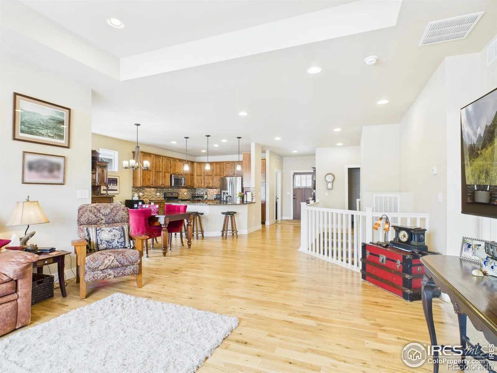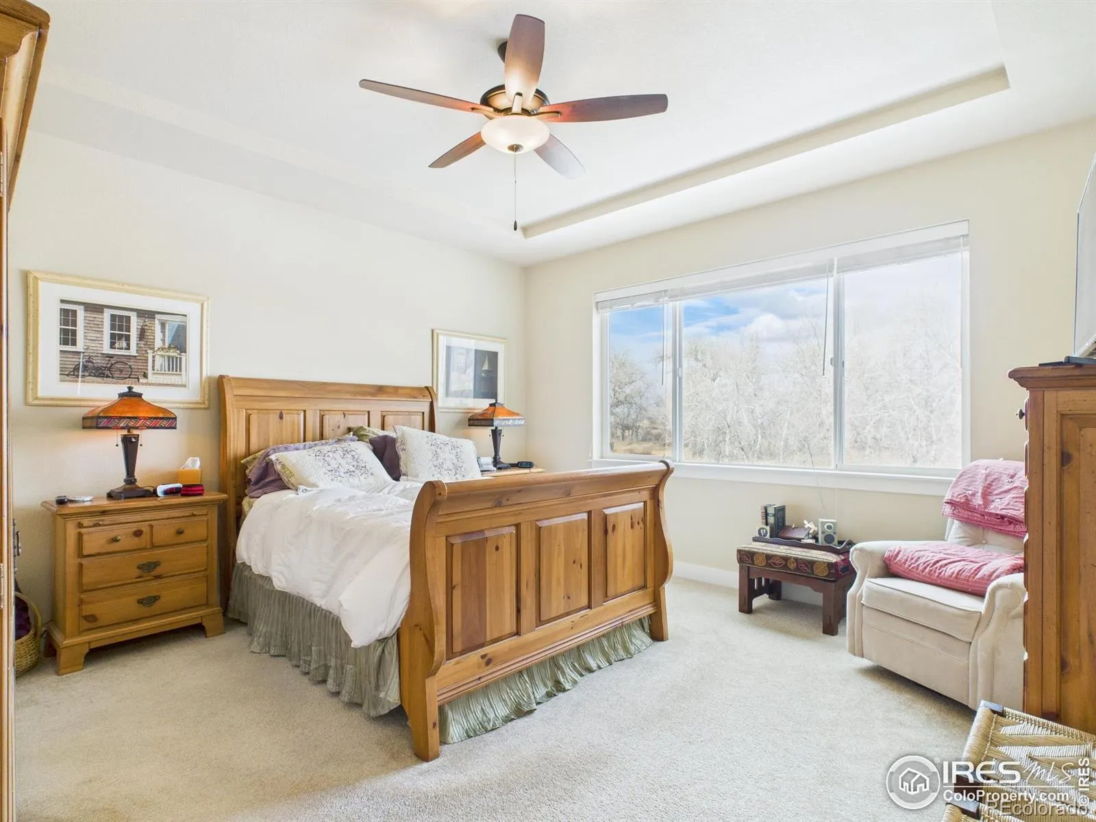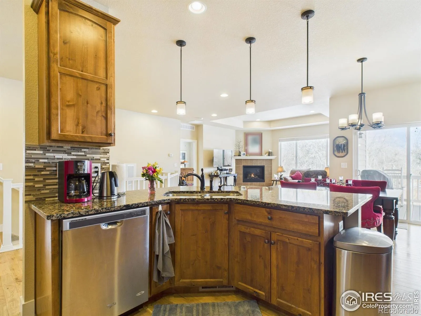 River views and trail access set the tone at this 3,120 sq ft patio home located steps from the Poudre River Trail with scenic views of the Poudre River. The main level offers two bedrooms, main floor laundry, and an open floorplan filled with natural light that highlights the warm maple hardwood floors. The kitchen features knotty alder cabinets, granite countertops, and stainless steel appliances. Two gas fireplaces add comfortable gathering spaces on both levels. The walk-out basement includes two additional bedrooms, a wet bar, and flexible space for guests, hobbies, or storage. Several outdoor living areas with covered patios and decks provide options for shade, dining, and relaxing outside. Schedule a showing and see the river views for yourself.