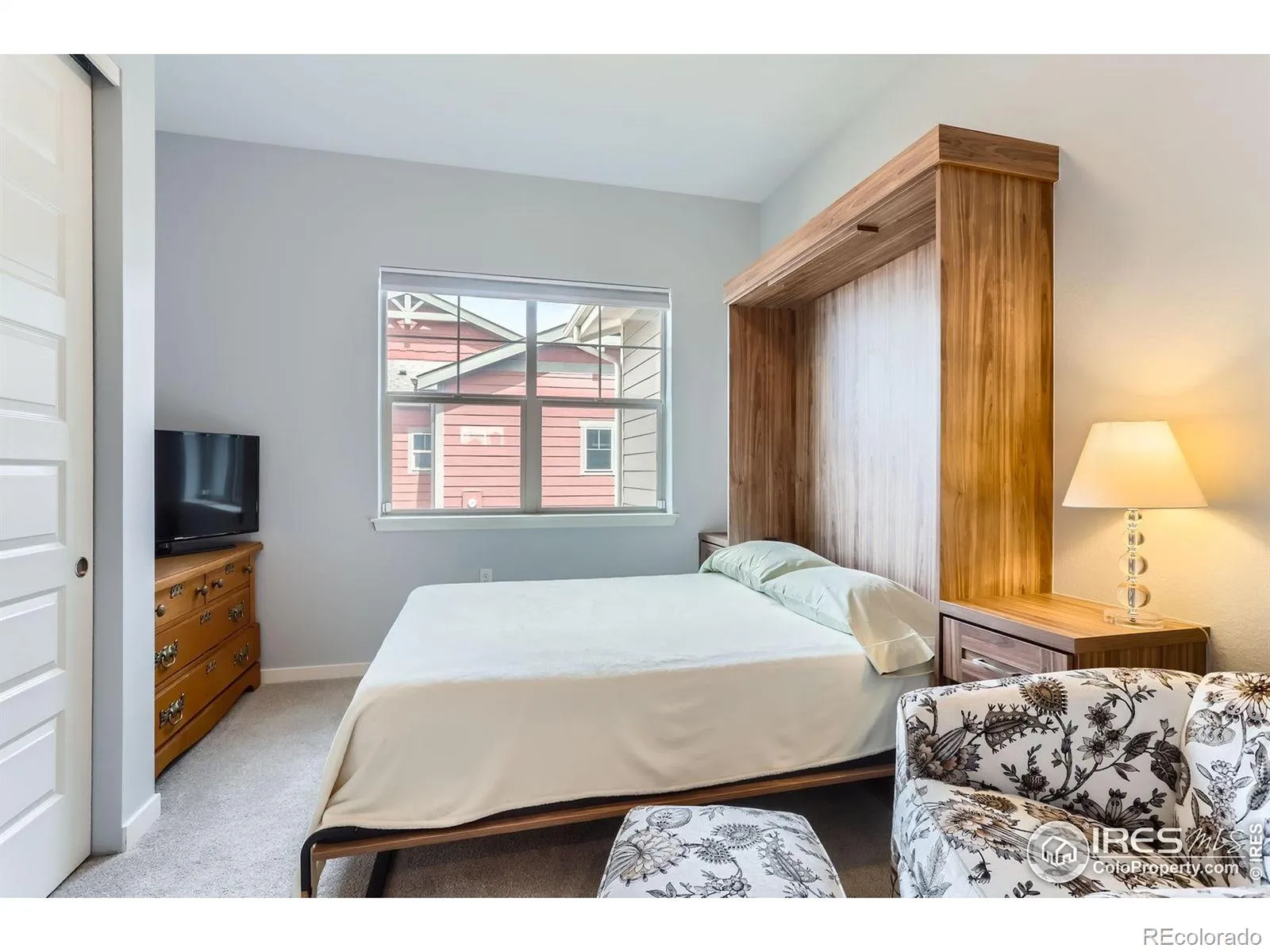 Presenting a captivating listing in the esteemed West Colliers Hill neighborhood of Erie, this charming Boulder Creek home seamlessly combines elegance with modern convenience. Designed for comfort, the main floor offers a spacious primary suite and a thoughtfully covered back patio, complemented by a front facing office perfect for your professional needs. The home boasts numerous upgrades including built in storage and workspace within the garage, a convenient Murphy bed in the main floor guest room, and a wall unit complete with bookshelves and additional storage in the office. The laundry room has storage cabinets, and the living room features stylish floating shelves flanking the fireplace. The primary bedroom is enhanced with a custom built in closet, and the entire home is adorned with new blinds and window treatments. Additionally Minke fans are installed in both the living room and primary bedroom. Step outside to a stunning xeriscaped backyard carefully designed with raised beds with an efficient drip irrigation system. Enjoy evenings around the fire pit with stunning mountain views. The HOA handles front yard maintenance and snow removal. This home is a perfect blend of functionality and style, ready to welcome its new owners.