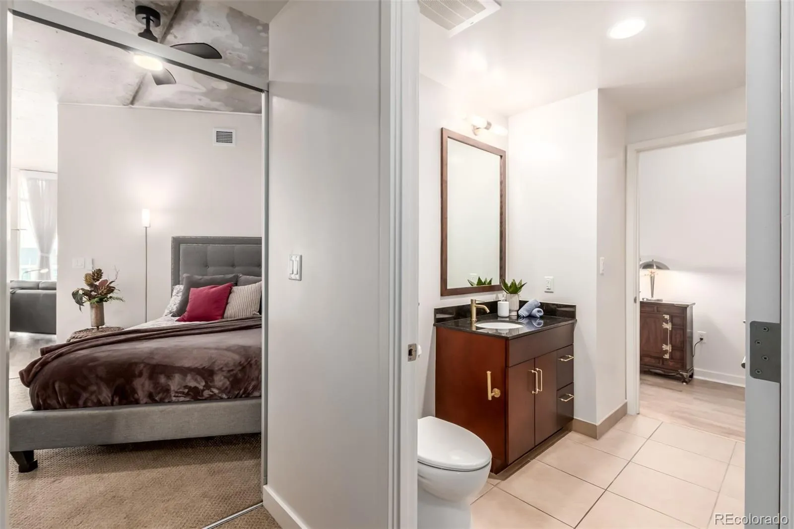 The bright bedroom includes a generous walk-in closet, providing ample storage. The modern bathroom is appointed with a sleek, glass-enclosed tub/shower combination. For everyday ease, a stacked washer and dryer are conveniently located within the unit. Step out onto your private balcony to enjoy fresh air and soak in the breathtaking city and mountain views—a perfect backdrop for your morning coffee or an evening cocktail. This home also includes a reserved deeded parking space, a valuable convenience in downtown Denver.