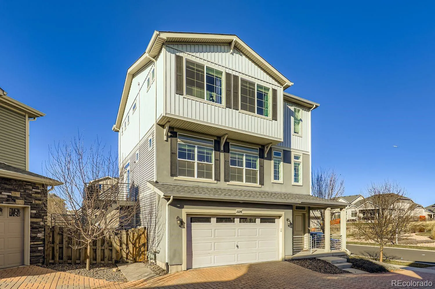 This contemporary three-story home in Adonea is perfectly positioned just steps from the community park. The ground level serves as a welcoming entry with both a front door and owner’s entry from the garage. On this level, you’ll find a versatile bonus room with sliding glass doors that open to the backyard. The spacious backyard is a true outdoor retreat, featuring a patio, hot tub, and low-maintenance artificial turf for year-round greenery.