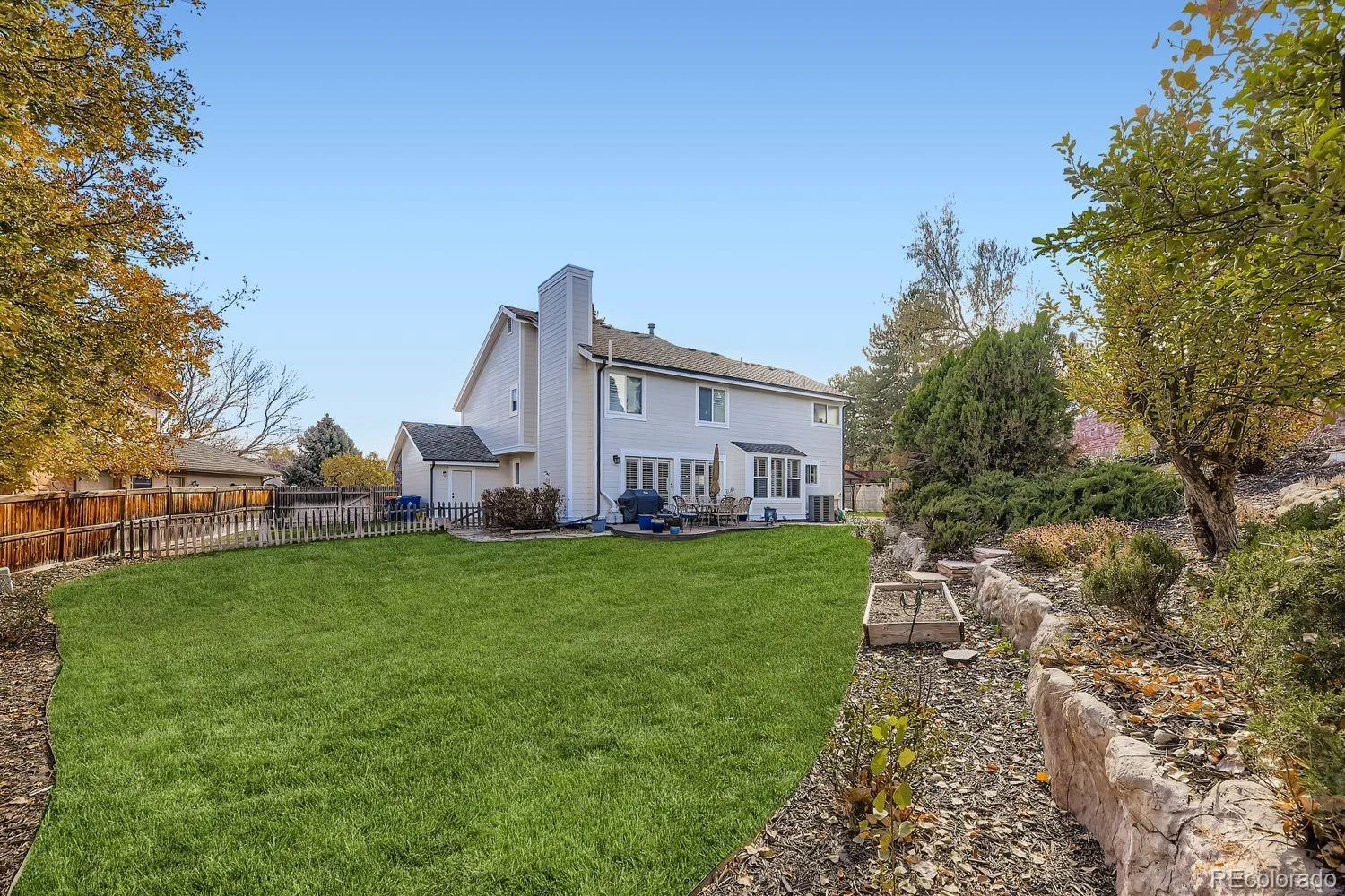 This beautifully updated residence tucked away on a quiet cul-de-sac in the heart of Greenwood Village’s desirable Sundance Valley neighborhood. This inviting home is a balance of comfort, style, and everyday functionality, all within a setting that embodies true neighborhood charm. Thoughtfully updated throughout, the home’s centerpiece is the kitchen featuring stylish finishes, new stainless-steel appliances (range, refrigerator, microwave), generous space for both casual dining and entertaining. The kitchen opens seamlessly to the family room with a cozy gas fireplace and flows effortlessly into the dining room, making it ideal for gatherings. The main level also offers a sun-filled living room with vaulted ceilings, a convenient powder bath, and a dedicated laundry room. Upstairs, the spacious primary suite serves as a private retreat, complete with a walk-in closet, spa-inspired bathroom featuring dual vanities and a large walk-in shower. Three additional bedrooms are well-appointed and share a generously sized secondary bathroom. The fully finished basement with new windows, adds exceptional versatility, featuring: recreation room perfect for entertaining or home office, space for a gym, a comfortable bedroom with egress window and adjacent full bath—ideal for guests or extended living. Fresh interior, new carpet and exterior paint enhances the home’s move-in-ready appeal. Outside, the expansive backyard offers both relaxation and play: turfed/sport area, sport court, putting green, dog run, open yard space, garden box and a stamped concrete patio with fire pit. Mature landscaping creates a seamless indoor-outdoor living experience. Located within the highly acclaimed Cherry Creek School District, this exceptional property offers more than just a home—it’s a lifestyle defined by convenience, elegance, the strong sense of community Sundance Valley is known for. If you’re seeking a turnkey home in Greenwood Village, 6023 S Akron Way is ready to welcome you home.
