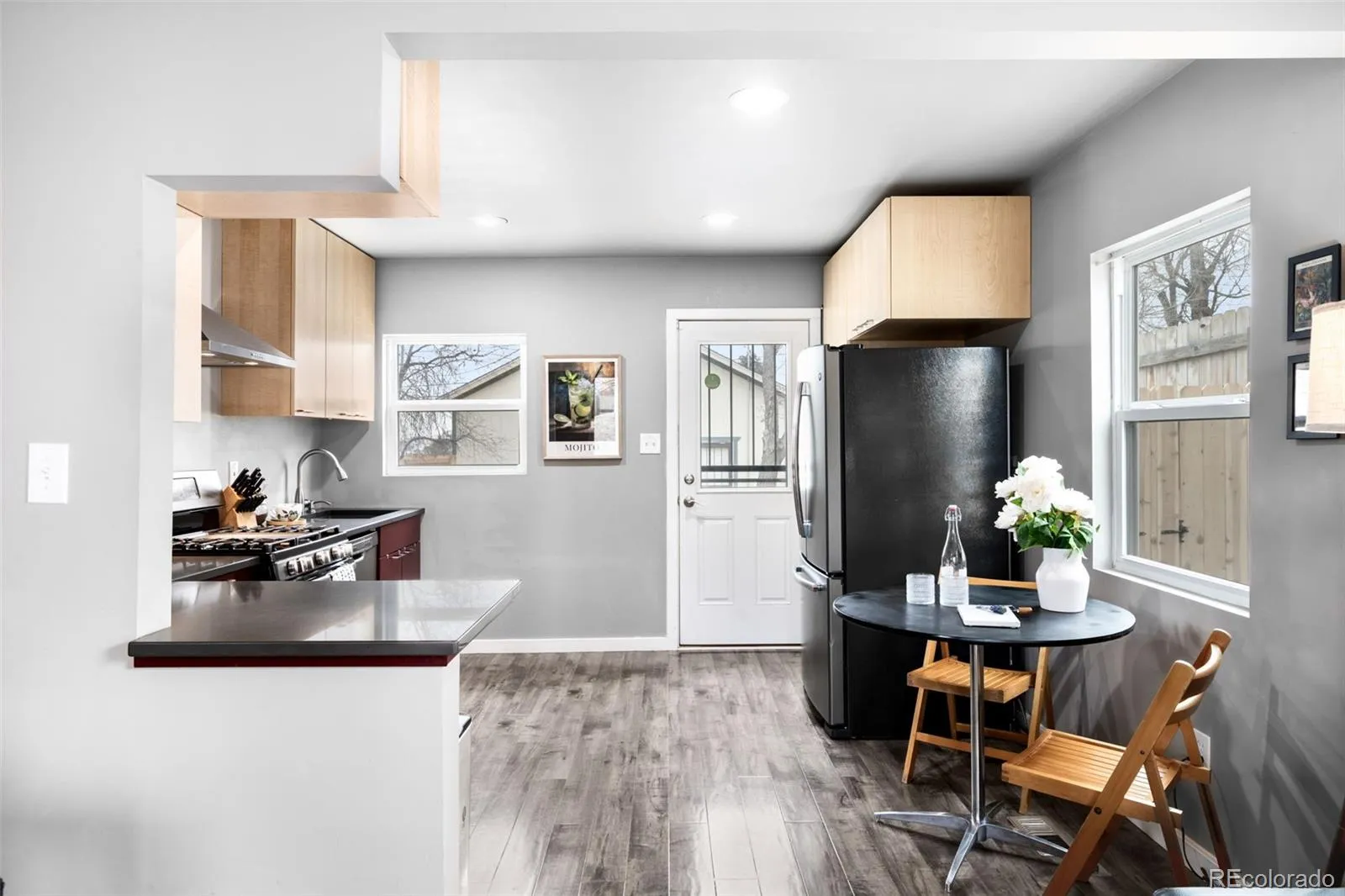 Perched on a hilltop lot in the heart of Villa Park, this updated 2-bedroom 2 bath home residence combines modern luxury with easy living. The interior is defined by original wood floors and a modern industrial kitchen featuring updated abstract cabinetry and sleek countertops. The layout flows into a spacious primary suite with a large bathroom, while the hilltop position offers amazing views of the downtown skyline. The property has a great yard with a brand-new fence that completely encloses the back of the property, to keep you pets and kids safe. An oversized, 2 story 2 car garage gives plenty storage, maybe an optional ADU conversion? Recent high-value mechanical and structural upgrades make this a standout deal: the roof and gutters were replaced in 2019, a brand-new sewer connection to the alley main was completed in late 2024, and the home features a tankless water heater along with a new washer and dryer. Located just blocks from the light rail and Paco Sanchez Park, this home offers an incredible value proposition for a buyer seeking a turn-key property.