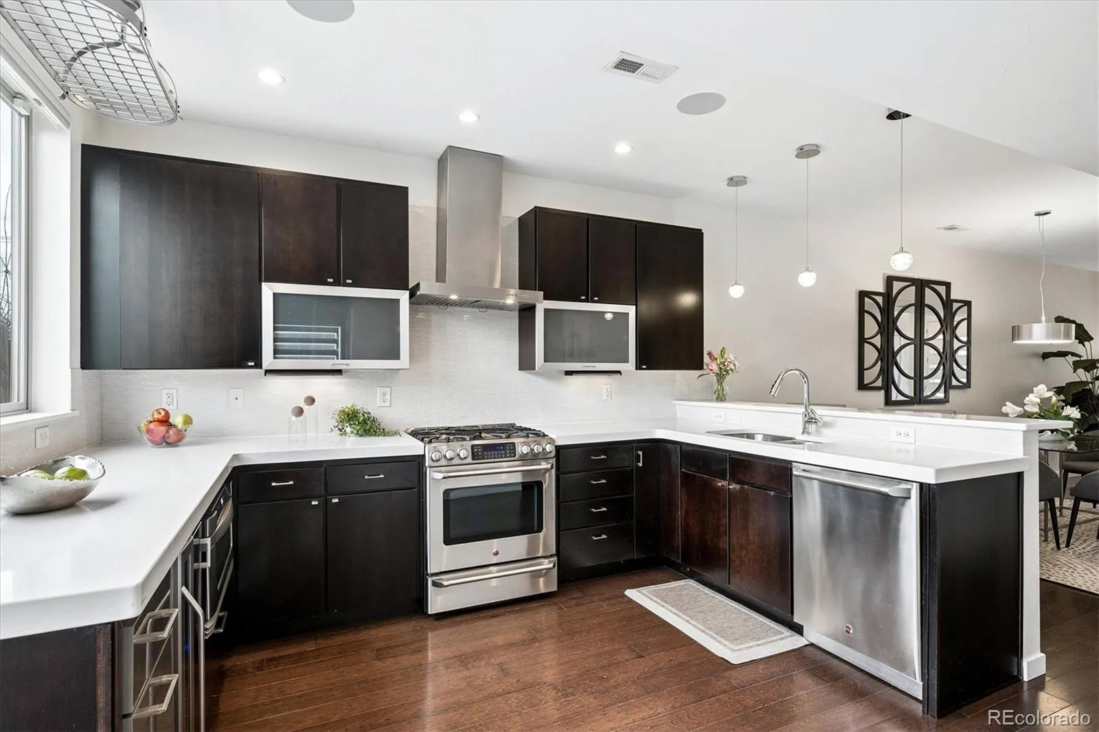 Exceptional, light-filled townhome in a premier Sloan’s Lake location that’s less than one block to the lake and park. This stunning residence offers 3 bedrooms, 3.5 bathrooms, and 2,533 square feet of beautifully finished living space. Designed for seamless indoor-outdoor living, the home features a patio and yard off the kitchen, plus a large, private third-floor deck with a remote-controlled Sunsetter awning and big, breathtaking views of Sloan’s Lake and the mountains. A rare combination of privacy, quiet, and unforgettable sunsets. Each bedroom has its own bathroom (2 en-suites) and walk-in closet, and the luxurious primary suite includes a custom closet and a fireplace. Additional highlights include a second-floor laundry room, two fireplaces (living room and primary bedroom), built-in speakers, a wet bar, two wine refrigerators, and a detached two-car garage wired for EV charging. Newly repainted and carpeted, this thoughtfully constructed home offers green-built features such as owned solar panels, extra insulation, newer high-capacity HVAC, and a HERS designation. Truly one of the finest townhomes available near Sloan’s Lake—this special property offers great condition, location, and price.