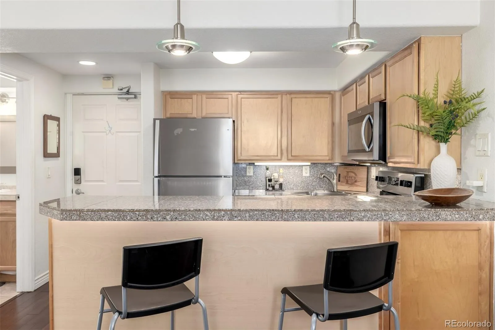 Cozy Convenience in the Heart of City Park West Discover the perfect blend of style and comfort in this beautifully appointed condo, nestled in the highly desirable McCullough’s community. Designed for effortless living, this home boasts an inviting ambiance with tasteful tile and wood flooring throughout. The spacious living room offers a warm and welcoming space to relax or entertain, while the chef-inspired kitchen is a true standout—featuring sleek stainless steel appliances, rich honey-toned cabinetry, elegant tiled granite countertops, and a versatile peninsula with a breakfast bar for casual dining. Unwind in the tranquil primary bedroom, complete with a mirrored-door closet and a cozy retreat-like atmosphere. A thoughtfully designed full bathroom enhances this unit’s functionality. Multiple Coin-op washer and dryer access on either ends of your first floor hallway. Conveniently located with easy access to the parking lot at the rear of the building, this home is just minutes from top-tier dining, scenic parks, and the vibrant energy of downtown Denver. Whether you’re seeking a stylish urban retreat or a smart investment opportunity, this gem is not to be missed! Schedule your showing today and experience the best of McCullough’s living.