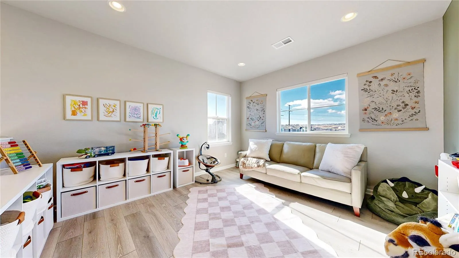 Welcome to your dream home in the highly desired Terrain Neighborhood that is designed for modern living and luxury comfort! Step inside to a spacious 3-bed, 2.5-bath haven, meticulously crafted with thoughtful upgrades throughout. Upon entering, you’re immediately struck by the grandeur of the great room, boasting soaring 18-foot ceilings that create an impressive sense of space and airiness. The open concept layout seamlessly connects the living, dining, and kitchen areas, perfect for entertaining guests or enjoying family time. The heart of the home is undoubtedly the Gourmet Chef’s Kitchen, featuring an island with Granite Countertops that serves as both a functional workspace and a stylish centerpiece. Equipped with Stainless Steel Whirlpool appliances, including a gas range, two ovens, a convection microwave, and farmhouse sink, this kitchen caters to culinary enthusiasts and casual cooks alike. Oversized windows flood the space with natural light, creating a warm and inviting ambiance. Retreat to the primary bedroom suite, where luxury awaits with easy access to a beautifully updated laundry room featuring *BRAND NEW WASHER & DRYER* Hang out in the versatile loft which offers additional living space, perfect for use as a second home office, media room, or play area. Additionally, the main floor flex room, at the entry of the house, can serve as a home office with French doors or quaint coffee nook. From designer fixtures to premium LVP flooring and White Shaker cabinetry, every detail has been carefully selected to exude sophistication and quality. To wind down, head outside and enjoy the serenity of the open space while music plays above on your covered patio, as it will, no doubt, be the outdoor space of endless possibilities for enjoyment and relaxation. Minutes to downtown Castle Rock, Outlet Mall, Gateway Open Space, and I-25!