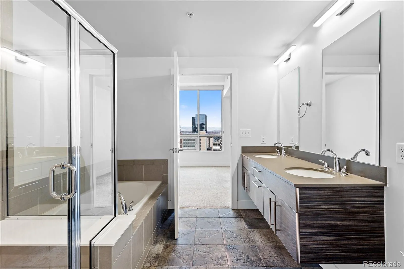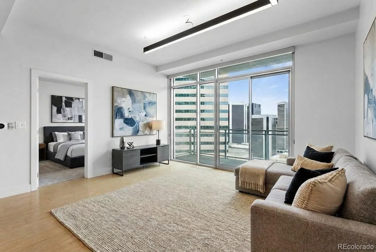 Panoramic Mountain and Downtown Skyline Views unfold from every angle in this west-facing 22nd floor residence. High-rise life, Mile High edition. Golden-hour pours in as the city shifts around you—from calm mornings to illuminated nights plus Denver’s most celebrated sunsets and Coors Field firework displays. Spanning 818 square feet, the home features floor-to-ceiling windows, designer-curated smart lighting and soaring ceilings for a modern canvas. Open-concept layout seamlessly connects living, dining, and kitchen spaces, complemented by a kitchen pantry and private laundry room—elevating everyday living. Quiet luxury primary suite featuring a five-piece en-suite bath with a soaking tub and floating vanity, along with a custom walk-in closet with built-ins. Separate powder bath for guests—rare among one-bedroom residences. A defining architectural landmark in Denver’s skyline, One Lincoln Park balances the scale of a high-rise with the feel of a boutique residence. Sophisticated, composed, and intentionally managed—24/7 attended lobby and dedicated on-site management create a sense of arrival that’s both secure and personal. Loft-style fitness center overlooks the owners lounge and rooftop/pool deck, bringing natural light, views and architectural openness into everyday routines. Owners lounge offers flexible seating, work zones, and a full kitchen. Rooftop pool deck complete with southern exposure, heated pool, hot tub, fire features, community gardens and grilling areas. Residents enjoy thoughtful extras including a rentable guest suite and HOA coverage that streamlines life with high-speed internet, TV, gas, heat and water included. Two reserved/deeded parking spaces plus two storage units add significant value above other downtown condos. Positioned near Union Station, RiNo, Uptown, LoDo, dining, nightlife, and transit, One Lincoln Park offers a refined downtown lifestyle—boutique in feel, confident in scale, and effortlessly livable.
