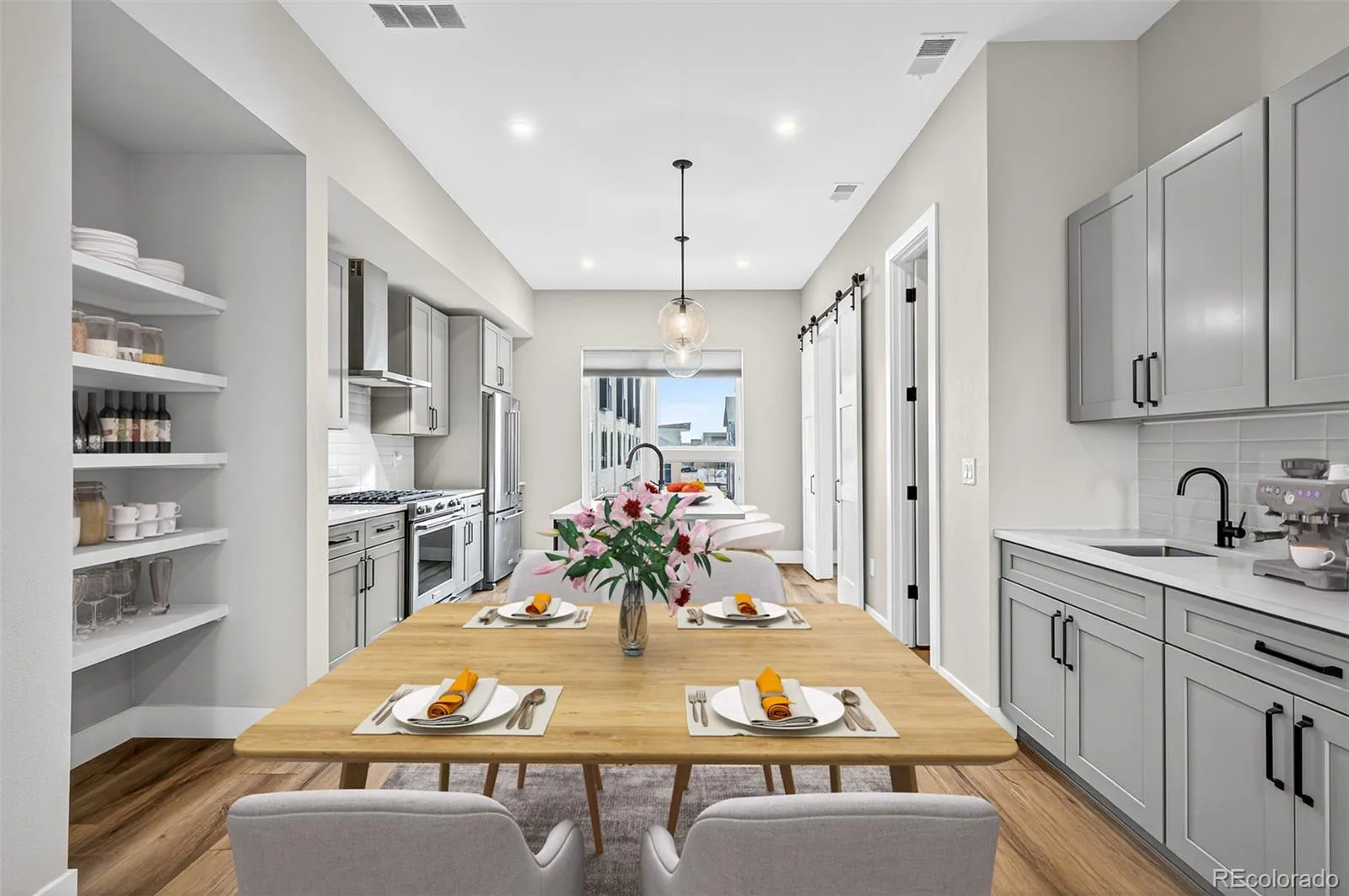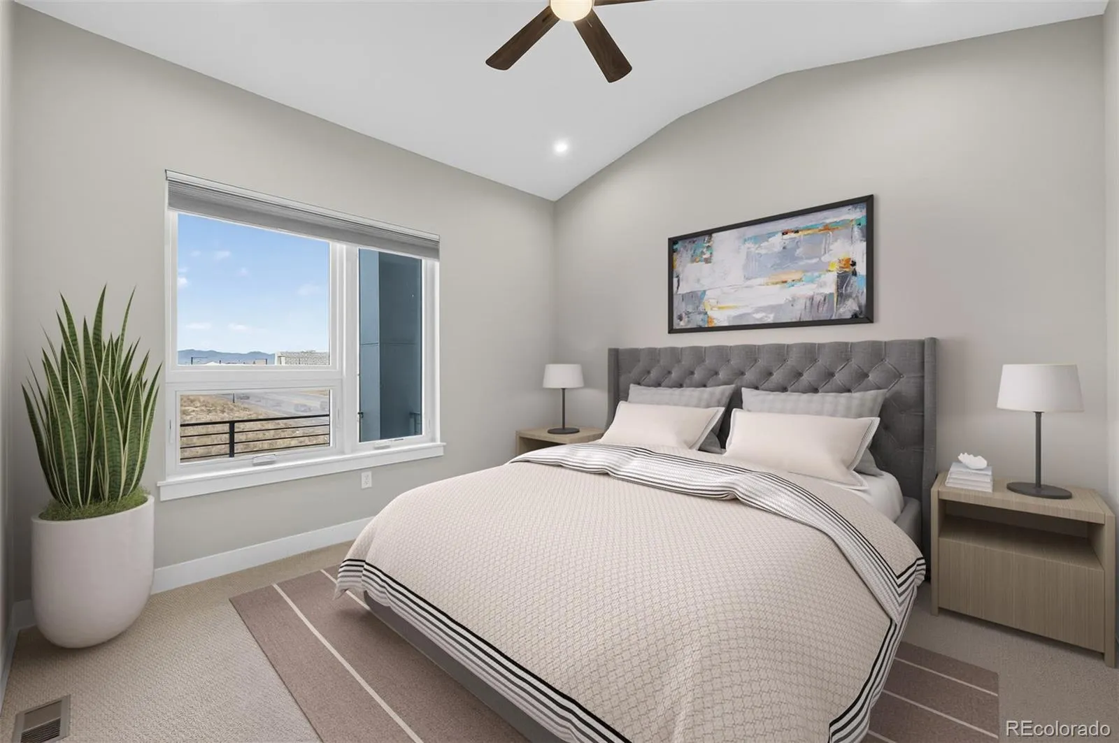 Architectural style meets everyday livability in this modern, west-facing townhome located in the heart of Central Park. A gated and fenced private front porch welcomes you inside, offering both privacy and curb appeal. Thoughtfully designed with high ceilings, abundant natural light, and a private outdoor space on every level, this home captures stunning mountain views and sunset light throughout.