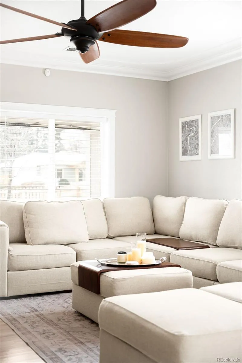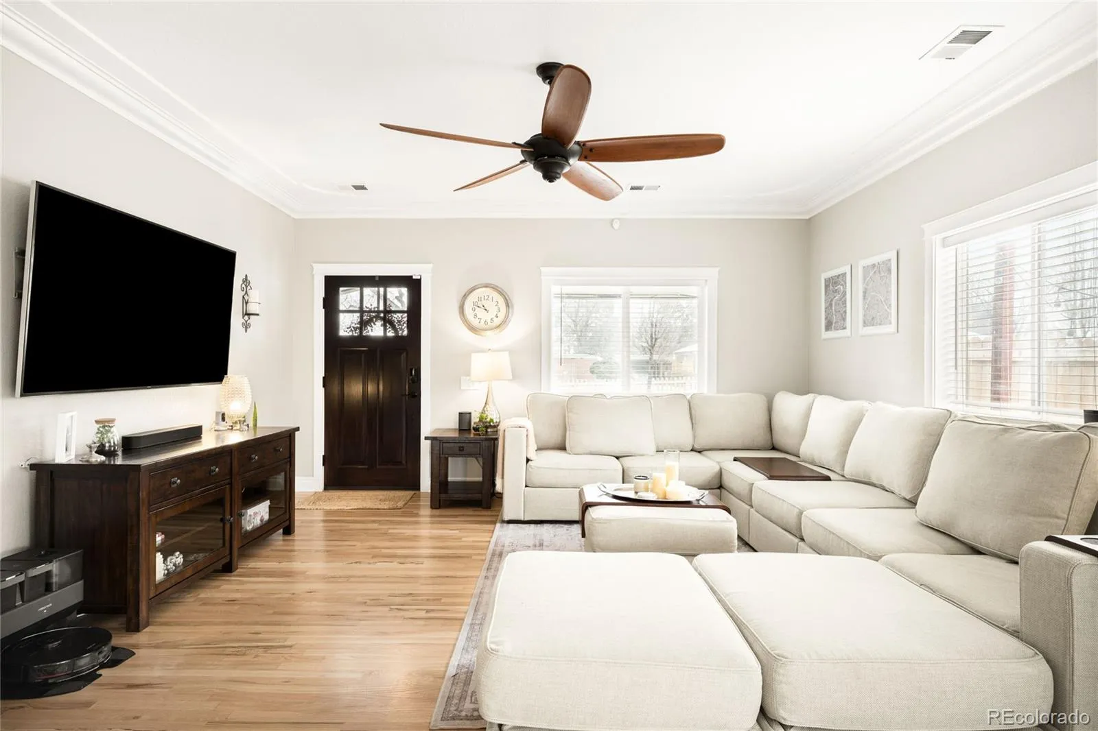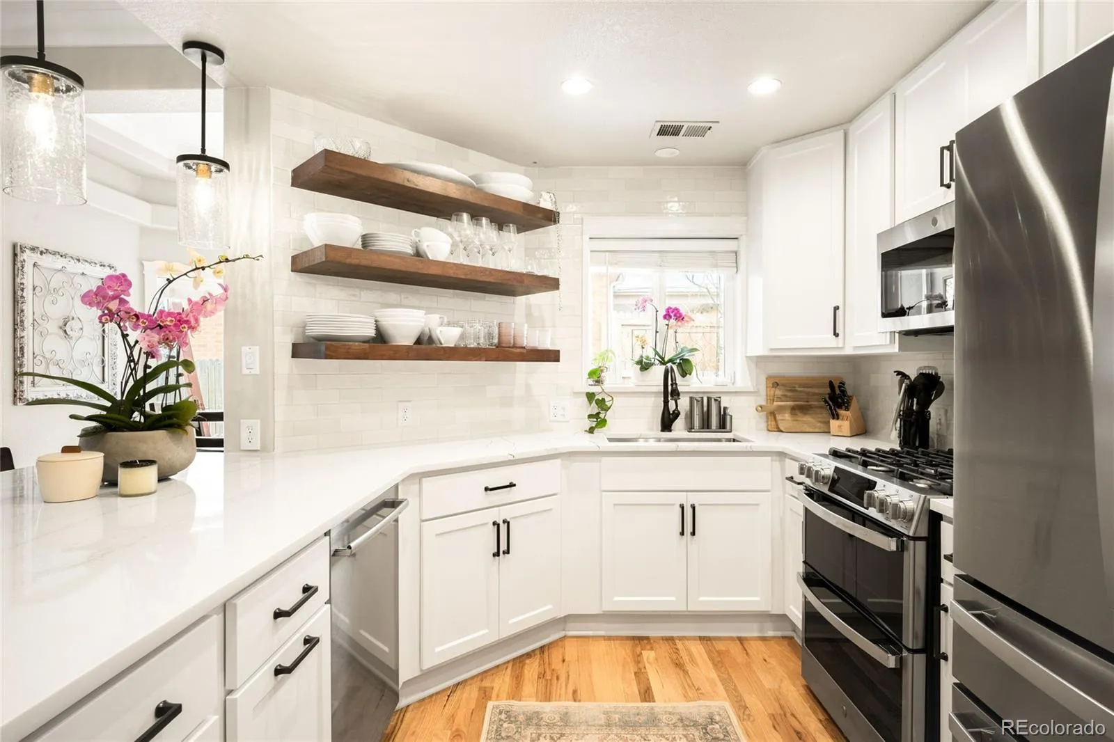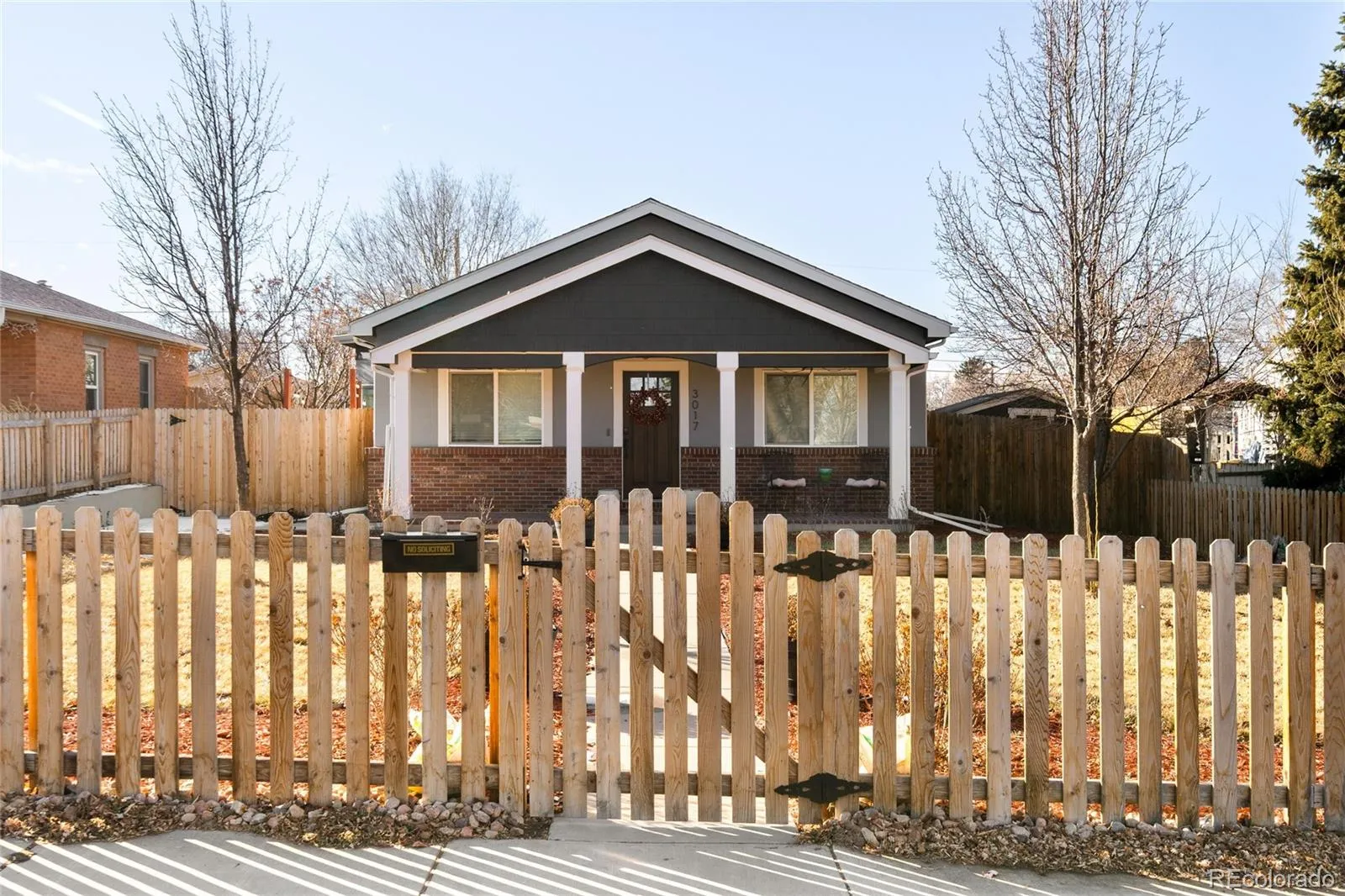 Timeless bungalow charm meets modern luxury in this beautifully updated Skyland residence. Built in 2014 and thoughtfully enhanced with high-end finishes throughout, this home delivers style, comfort and effortless livability. Sunlight pours through oversized windows, illuminating warm tones and rich hardwood floors that flow seamlessly from room to room. The open living and dining areas feel welcoming and refined, ideal for both everyday living and entertaining. At the heart of the home, the stylish kitchen impresses with crisp all-white cabinetry, stainless steel appliances and a functional peninsula that anchors the space. The serene primary suite is a true retreat, featuring a spa-inspired en-suite bath and elegant French doors that open directly to the fully fenced backyard. Additional bedrooms are well-proportioned and versatile for guests, work or hobbies. A detached two-car garage adds convenience, while a prime location offers easy access to parks, dining and downtown Denver.