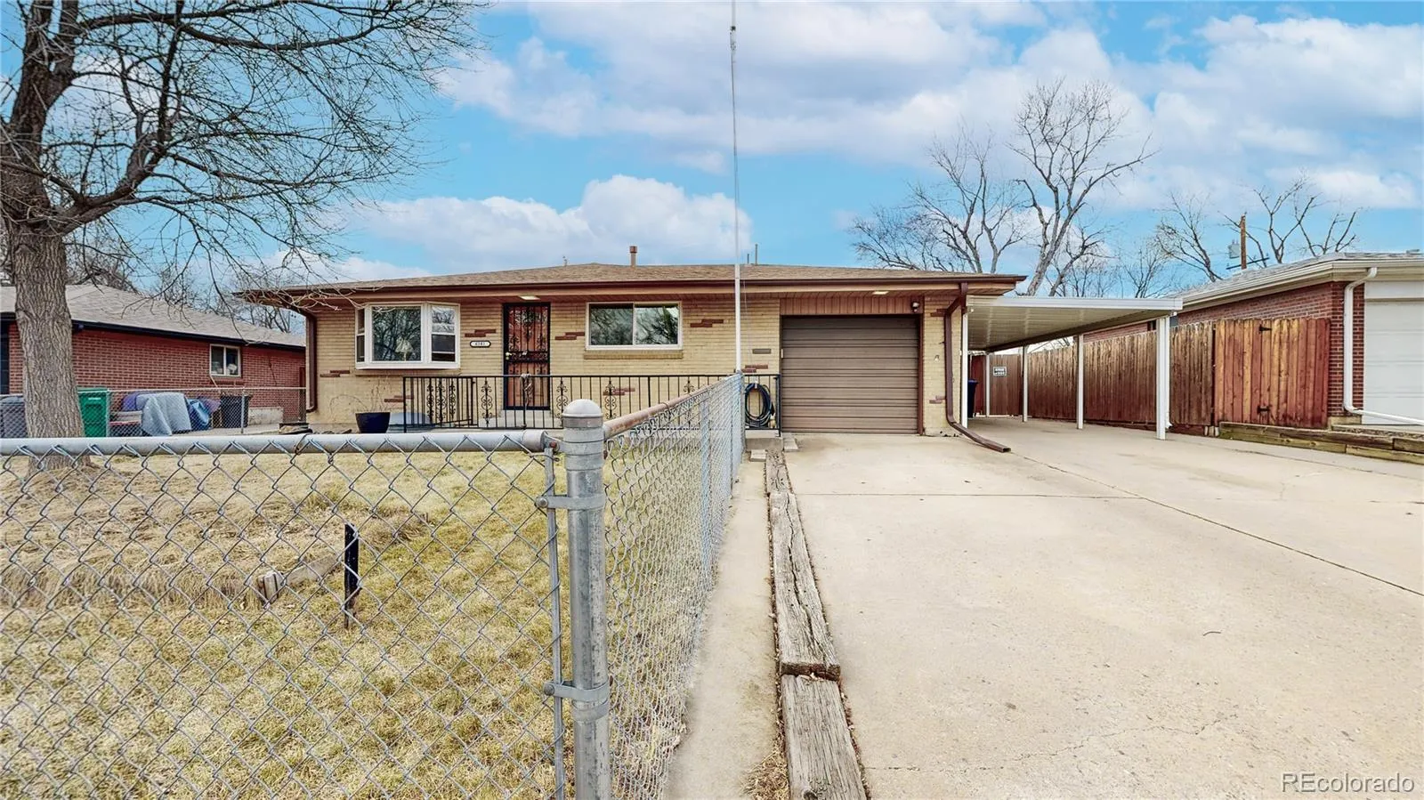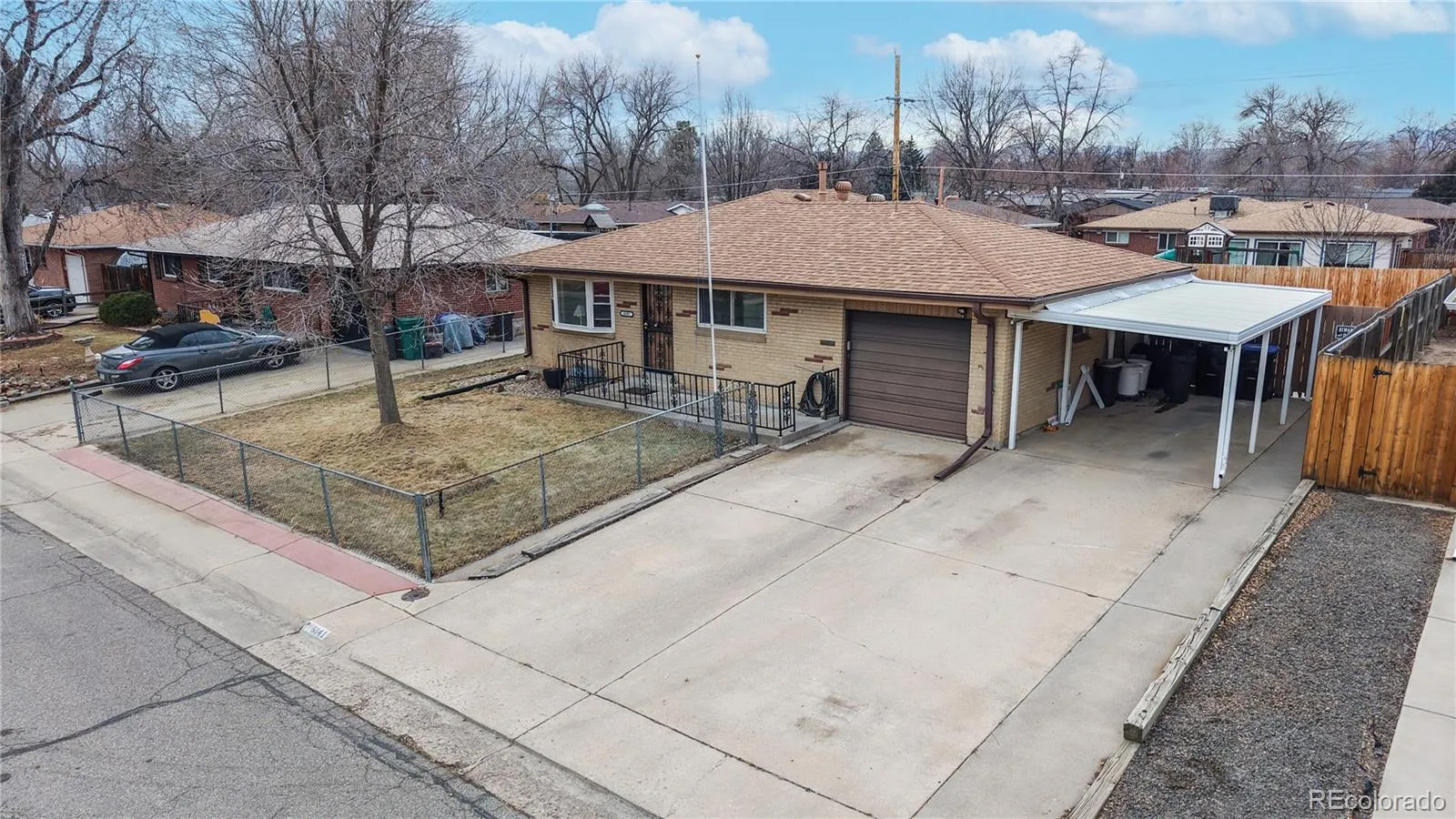 Classic brick ranch style home in the highly desired Koldeway neighborhood. A stroll through this 4-bed, 2-bath 2,000+ SF home reveals hardwood floors, newer windows throughout, open floor plan, functional kitchen with stainless appliances, Corian countertop, lots of cabinet storage, eat-in-kitchen space. Main floor also features two spacious bedrooms with natural light, ceiling fans, end of the hall linen closet, 3/4 bath and granite countertop sink. Downstairs offers a finished basement with 2 more non-conforming bedrooms and a 1/2 bath that is plumbed to be a 3/4 with shower. The mechanical/ laundry room provides newer HVAC, water heater, included with washer and dryer and plenty of storage. This home has good bones with a variety of newer upgrades from the AC, newer roof, newer oversized carport, plus 1 car attached garage, large fully fenced backyard, fenced front with sprinkler in front and back, plus 3 small side gardens. Close to the incredible Ralston central park, Ralston creek trails, recreation, schools, shopping, dining and transportation. A home in need of a little love with lots of potential in a wonderful and quiet community.