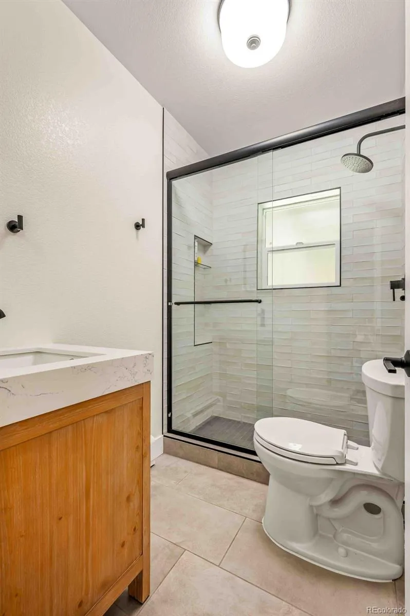 Inside, original hardwood floors and a wood-burning fireplace greet you in the living room. The upgraded chef’s kitchen boasts stainless steel appliances, a 6-burner stove, tiled backsplash, espresso cabinetry with under-cabinet lighting, and new countertops and flooring. The main floor also features two bedrooms, one of which can serve as an office, playroom, or dining room. The fully renovated bathroom offers floor-to-ceiling tile, a new shower pan, updated vanity, toilet, lighting, and plumbing.