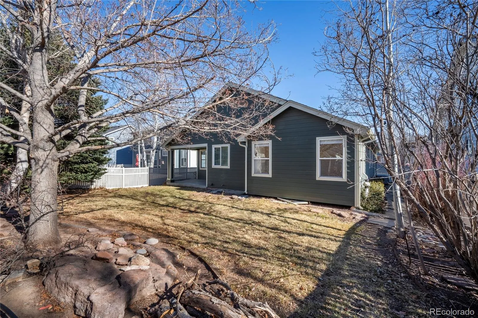 Charming Ryland-Built Ranch in Firestone! This beautifully maintained ranch-style home offers 3,082 total square feet, 4 bedrooms, and 2 bathrooms, with thoughtful updates throughout. The spacious kitchen features extended cabinetry, newer stainless-steel appliances, with a gas range, new garbage disposal, new sink and faucet, opening seamlessly to a generous dining area—perfect for everyday living and entertaining. The cozy family room is anchored by a gas fireplace and complemented by rich wood flooring that extends throughout the main level. The private primary suite with new hickory wood flooring includes a spacious five-piece ensuite bath and a spacious walk-in closet, creating a relaxing retreat. 2 additional bedrooms on the main floor with new flooring and new paint. Major system upgrades include a 7-year-old roof, new AC, new water heater, and humidifier, new updated parts on the furnace, along with a radon mitigation system for peace of mind. Newer exterior and interior paint. Newer appliances including washer and dryer included. Additional highlights include custom window blinds and owned solar, keeping energy costs low. The full basement offers a bedroom or office and additional room to grow or customize, while the private backyard features mature landscaping and a covered patio—ideal for outdoor enjoyment. No metro tax, low HOA, and a quick close available make this home an exceptional opportunity.