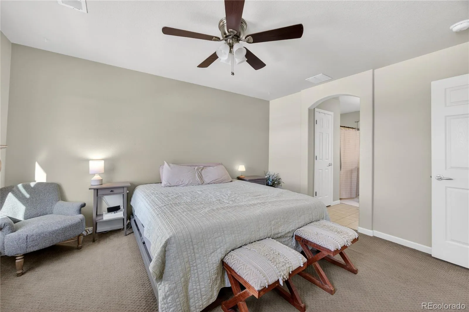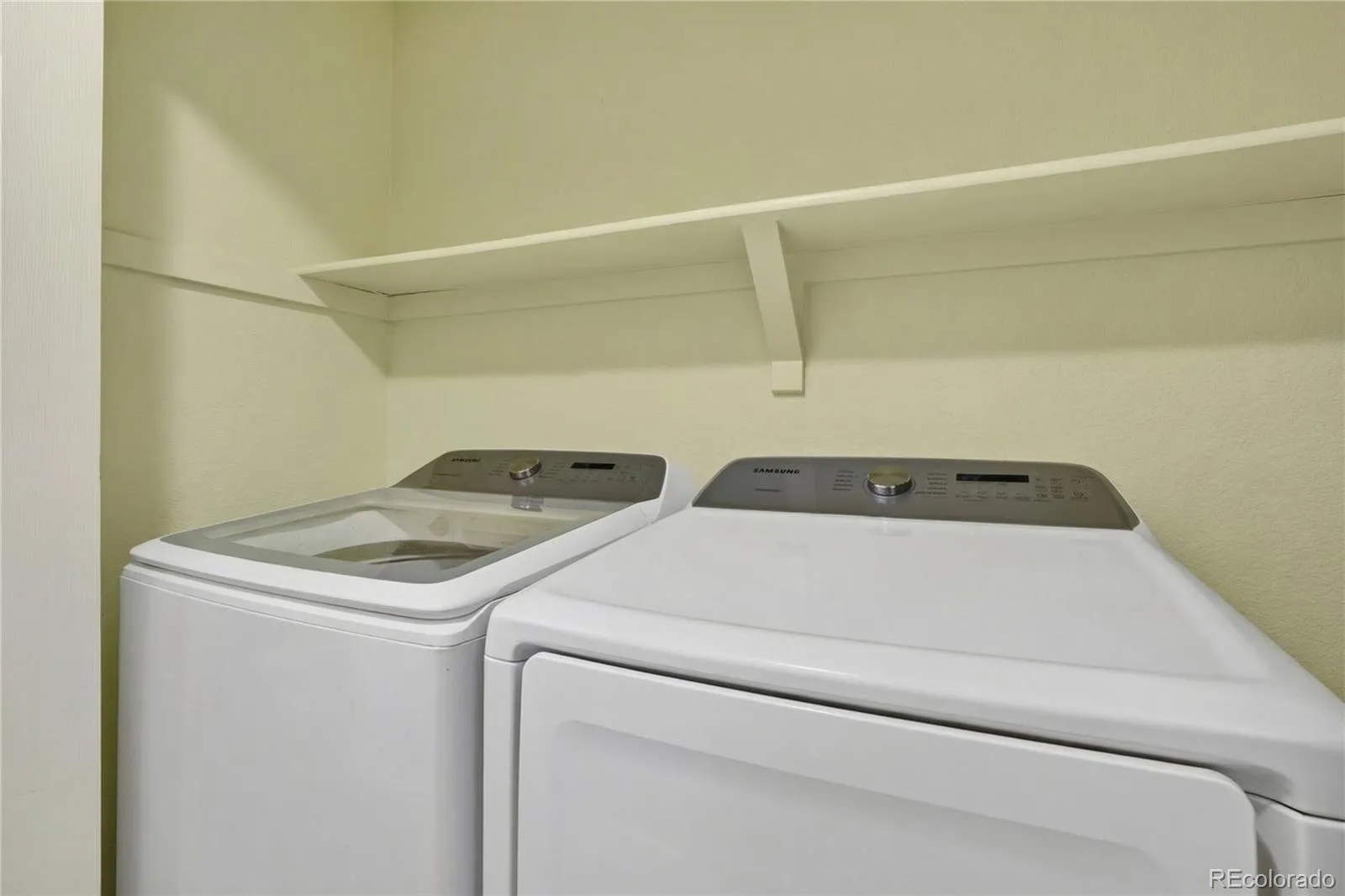 The primary bedroom includes a walk-in closet, while two additional bedrooms and three bathrooms provide flexibility for guests, home offices, or roommates. Additional features include in-unit washer and dryer, crawl space storage, and a security system.