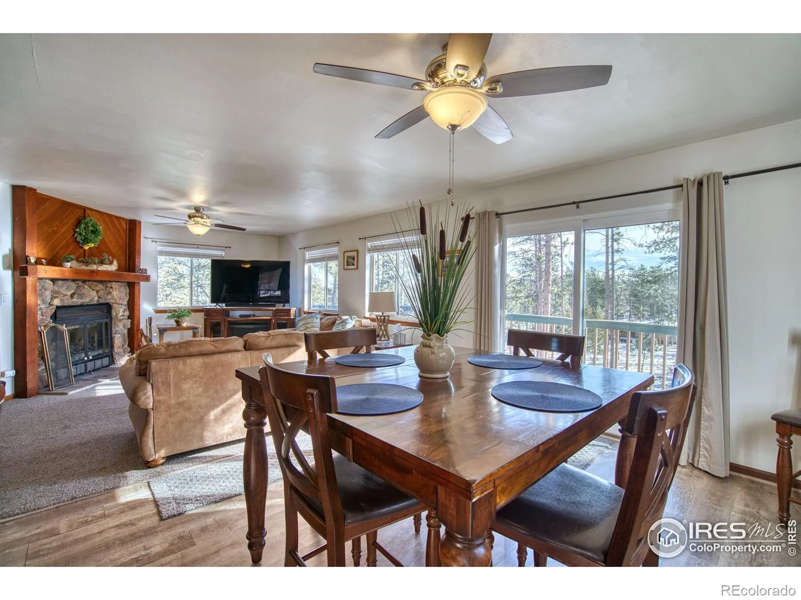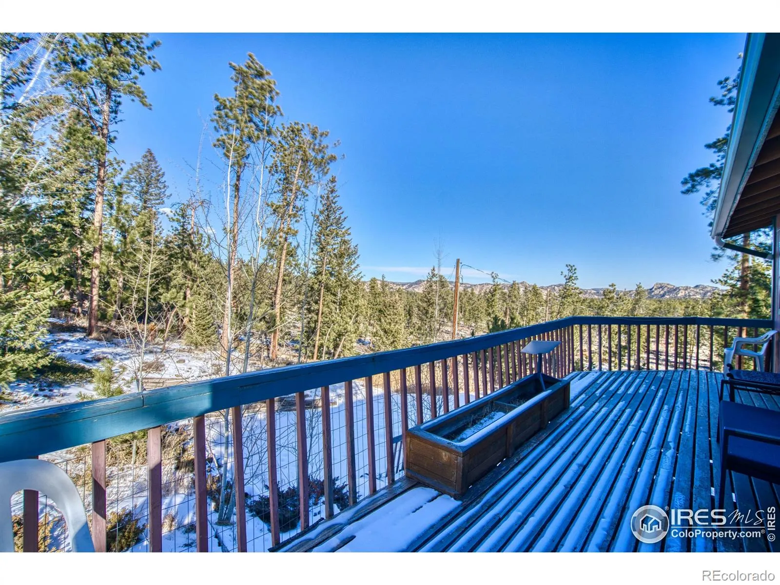 Escape to your Mountain Hideaway! Light, spacious & upside-down 2 story home at the end of the road, up on a hill w/ views for miles. Walk up the terraced landscape and in on the Main level w/ large family room, 2 big bedrooms, laundry room and utility room. Go upstairs to the remodeled, spacious & open upper-level w/ large living room w/ moss rock fireplace, dining room and upgraded kitchen w/ SS appliances, 42″ cabs & lots of countertops. Also, the large primary bedroom & full bath w/ soaker tub. Large wrap-around deck w/ shed, lots of windows, great views, metal roof. See the wildlife and wildflowers! Red Feather Shops are 7 mins away, 40 mins to Ft. Collins. Easy to get to but, oh, so private! Close to grocery store, new restaurant, lakes incl. Snake Lake, Deer Lake & Dowdy and hiking/biking trails. NEW WELL STSTEM, NEW PRESSURE TANK, NEW WATER HEATER. Shared well/sewage disposal. Furnishings are negotiable. Home sold AS-IS. Listing agent is owner of the property.**Memberships to private lakes are available.