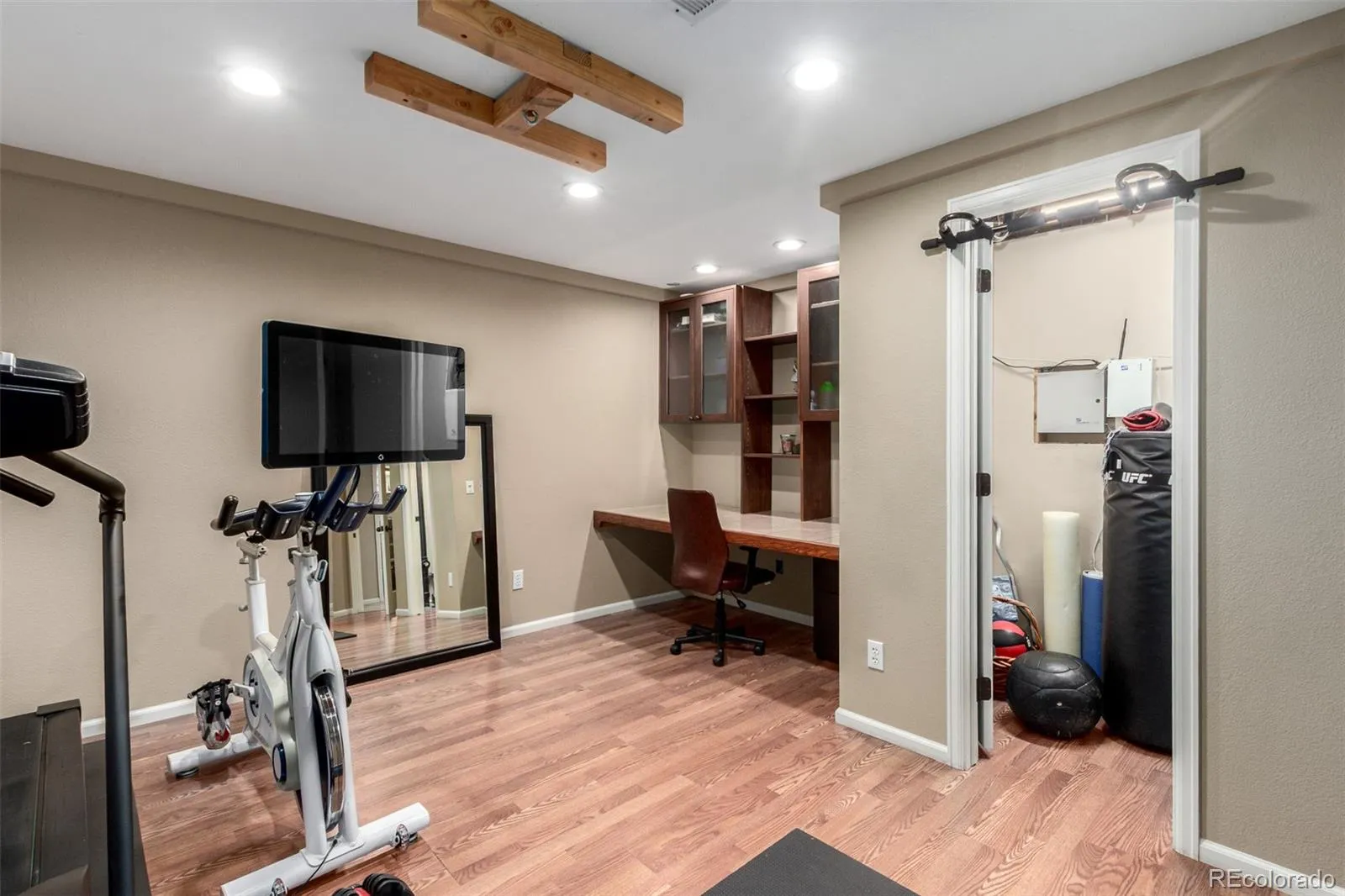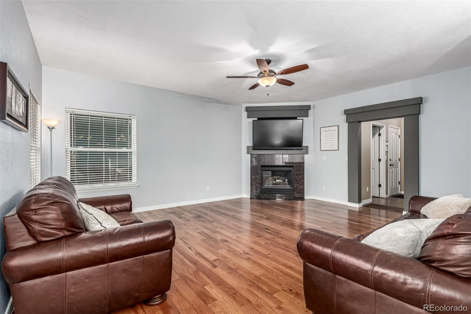 Welcome to your beautiful home in the highly desirable neighborhood of Highlands Ranch! A well-maintained lawn and stone façade welcome you as you as you enter the home. Inside you are greeted with an abundance of natural light, vaulted ceilings, hickory hardwood floors, and updated lighting. The main entryway flows into your recently updated, open concept gourmet kitchen, complete with and abundance of solid black walnut cabinets, stainless steel appliances, a large island w/ oversized cabinets, and quartz countertops. Just off the kitchen you will find a cozy living room and gas fireplace – a perfect spot to relax after a long day. The spacious backyard offers plenty of room to enjoy a quite meal with friends, play some games, or just relax. Just off the living room is your massive, custom built, 4-car garage! Fully insulated and equipped w/ multiple 220 outlets, dedicated sub-panel, additional storage above shop, hot and cold running water, 6 camera – closed circuit video surveillance system (hardwired and connected to tv in garage), and 100k BTU heater, this garage is a mechanic/carpenter’s dream! As you head upstairs, matching hardwood floors continue through the hallways and into the large loft. The primary suite showcases plush carpet, a full bath w/ dual sinks, and a walk-in closet. Additionally, there are 3 more well maintained bedrooms on the second level. In the basement, you will find a bonus room w a fireplace, which creates a welcoming space to watch a movie or shoot a game of pool. The basement also features, a large bath w/ shower, plenty of storage, an extra bedroom, and workout room. Other updates include new roof in 2024, tankless water heater, whole home steam humidifier, newer windows, water softener, and whole house water filtration system.