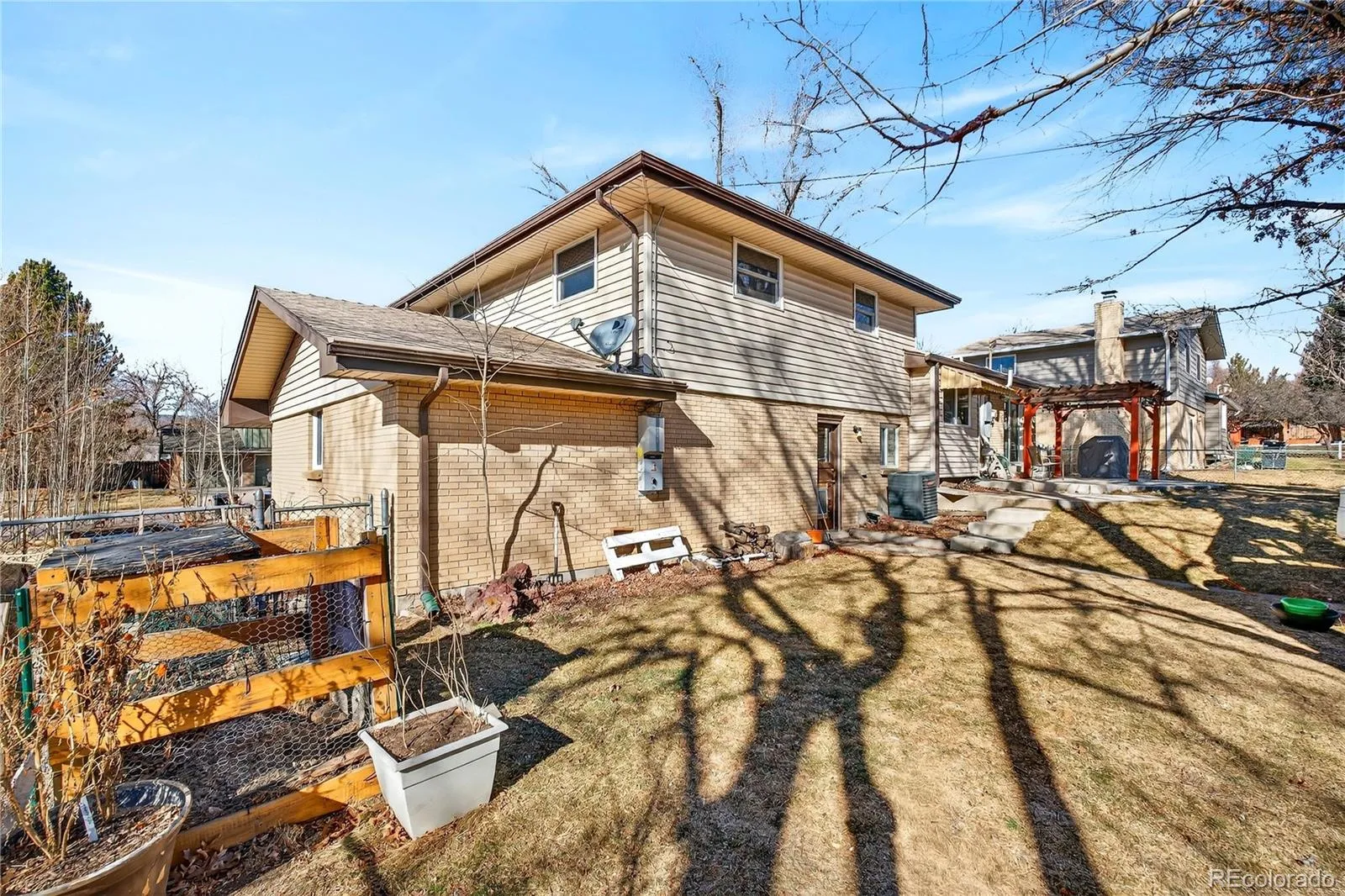 The open floor plan creates a bright and spacious living area anchored by a cozy wood-burning fireplace, making it the perfect place to relax or host guests. Step outside to your private backyard oasis with a pergola, fire pit, mature trees, and a chicken coop, ideal for outdoor entertaining and enjoying Colorado’s seasons.