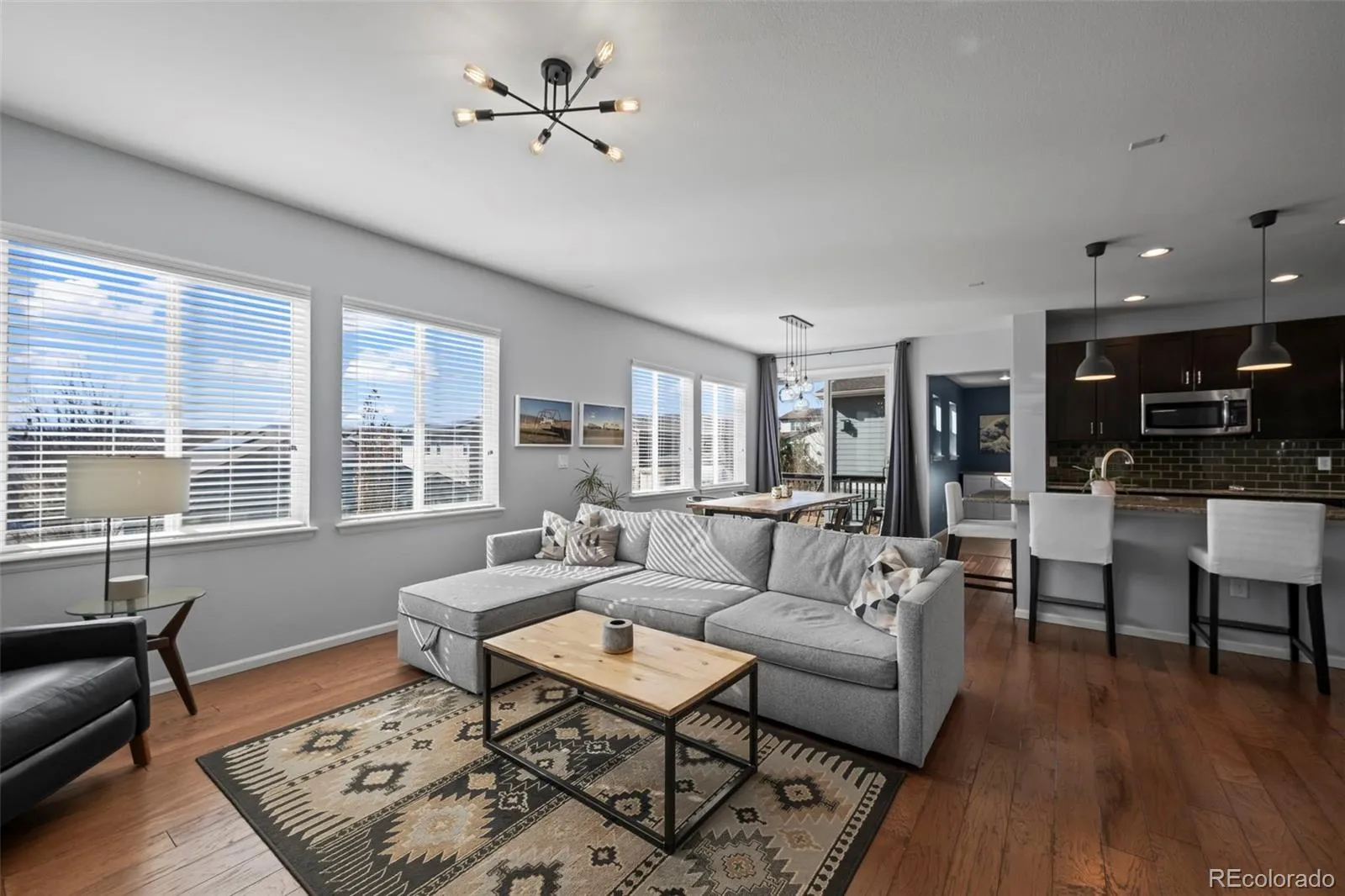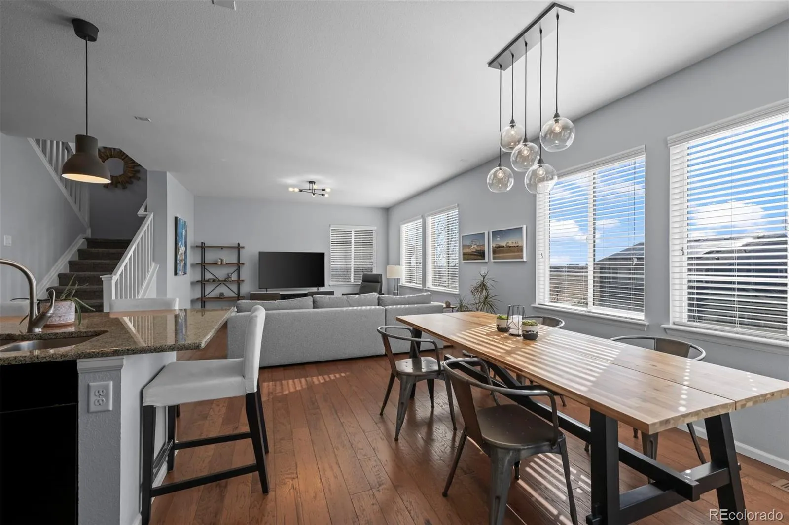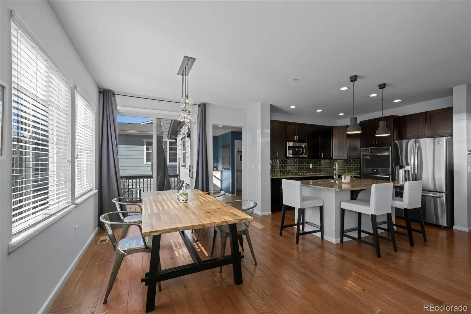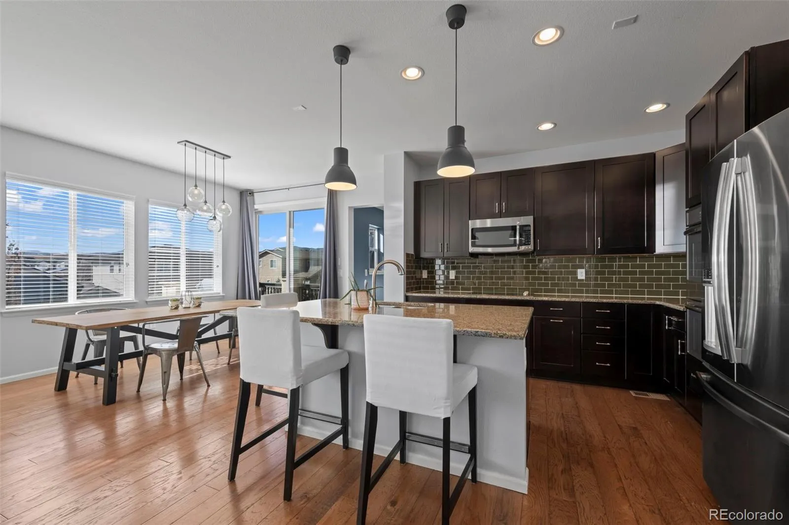 Experience the feeling of “home” when you step inside this Candelas gem! Perfectly positioned within the neighborhood, this home sits just steps from the community’s expansive Sarah George Park, complete with trails, playground, and baseball field. The main level welcomes you with an inviting, open-concept layout where rich flooring flows seamlessly from the dedicated home office to from the spacious living area. The gourmet kitchen features a granite island with breakfast bar, premium stainless appliances, and double ovens. Perfectly positioned between the garage and walk-in pantry, the ultimate “owner’s entry” awaits, featuring a stylish drop zone and custom cabinetry that doubles as a built-in coffee bar for your morning routine. Upstairs, the primary suite serves as a true private retreat with windows that frame panoramic mountain views. Two additional bedrooms, a guest bathroom, and laundry room complete the second floor. The outdoor living is equally impressive, featuring a deck for year-round enjoyment and a sprawling backyard with a large patio with built in fire pit- with beautifully landscaped surroundings. Complete with an unfinished basement ready for your design, this home offers an elevated lifestyle just steps from Candelas’ world-class pools, fitness centers, and miles of scenic trails.
