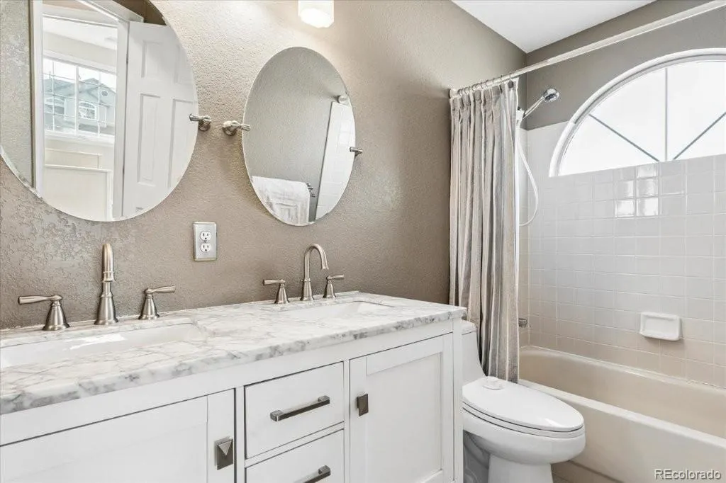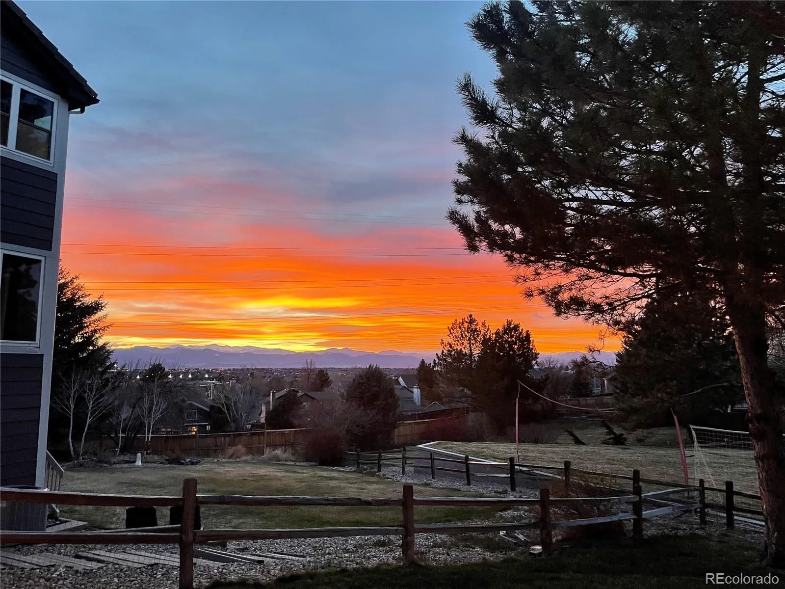 SPECTACULAR MOUNTAIN VIEWS!! A beautifully updated home on a premier cul-de-sac lot in Lone Tree. Sun-filled windows in various sizes nicely complement each room, creating a warm and welcoming feeling throughout. Gleaming hardwood flooring on main & lower levels. Open floor plan is ideal for entertaining and comfortable daily living. Cooking will be a pleasure in the Gourmet Dream Kitchen with windows capturing the AMAZING MOUNTAIN VIEWS. Abundance of attractive white cabinetry and countertops, including a huge island with 4 burner gas cooktop. Stainless appliances, pantry and spacious eating area surrounded by windows. Vaulted Dining Room and Main Floor Home Office (or 5th bedroom) with French doors, bay window and built-ins for storage. Dramatic 2-story Family Room has appealing architectural feature of several windows at different levels, gas fireplace with brick surround + hearth. Access to back deck. Laundry Room with built-in cabinets + updated ½ bath on lower level. Primary Suite is pure luxury! French doors open to the vaulted bedroom with wood flooring. Gorgeous remodeled 5-piece bath has deep soaking tub, quartz countertops and walk-in with closet system. Bonus loft area ideal for study nook or reading area. 2 additional upstairs bedrooms complemented by wood flooring. Nicely served by updated bath with dual sinks, marble countertops & tile flooring. Handy built-in cabinets in hall provide added storage space. Extensive additional living space in the finished basement featuring a Rec Room, 4th bedroom and ¾ bath. Outdoor entertaining will be a treat on the newer low maintenance deck, which offers UNOBSTRUCTED VIEWS of our spectacular & colorful sunsets. Mounted outside TV included. Wonderful cul-de-sac location just steps from La Quinta Park, walking trails and neighborhood elementary school. A True Colorado Treasure!