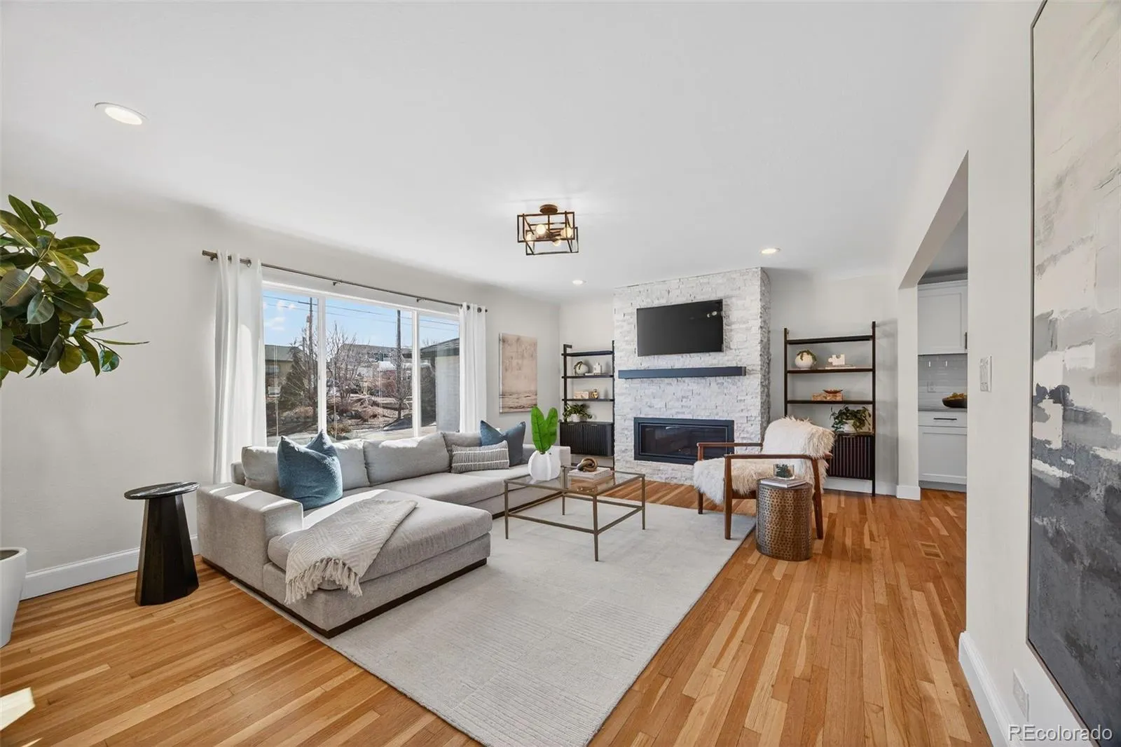 Welcome to this impeccably updated 4-bed, 3-bath ranch home in the desirable West Highland neighborhood. This property has a rare 10,800 sq. ft. corner lot, where modern comfort and thoughtful design converge with exceptional indoor-outdoor living. The sun-filled main level features custom lighting, a beautifully updated kitchen that opens to the living and dining areas, and a striking new fireplace perfect for both daily living and entertaining. The primary suite is an expansive retreat addition, complete with a generous spa-inspired en-suite bath and two separate closets that elevate everyday living, while a gracious secondary main-floor bedroom with its own custom closet and a well-appointed bath complete this level. The fully finished basement expands the living space with two additional bedrooms, a full bath, and a versatile family room or den ideal for media, work, or play. Outdoors, you’ll find a professionally expanded backyard with over 1,000 sq ft of additional usable space, a custom retaining wall, and more than $75,000 invested in landscaping with a smart irrigation system, creating a beautifully manicured, sun-soaked setting. Thoughtful enhancements include a slab with electrical in place for a future hot tub, new secure perimeter fencing, and an expanded driveway that accommodates three vehicles with additional room for RV or boat parking. Additional upgrades include integrated smart home feature and security system, updated lighting, fireplace, a new city water line installed in 2023, and a radon mitigation system — combining quality craftsmanship, modern convenience, and rare outdoor expansiveness in one truly distinctive offering. Close to sloan’s lake, shopping and restaurants and more!