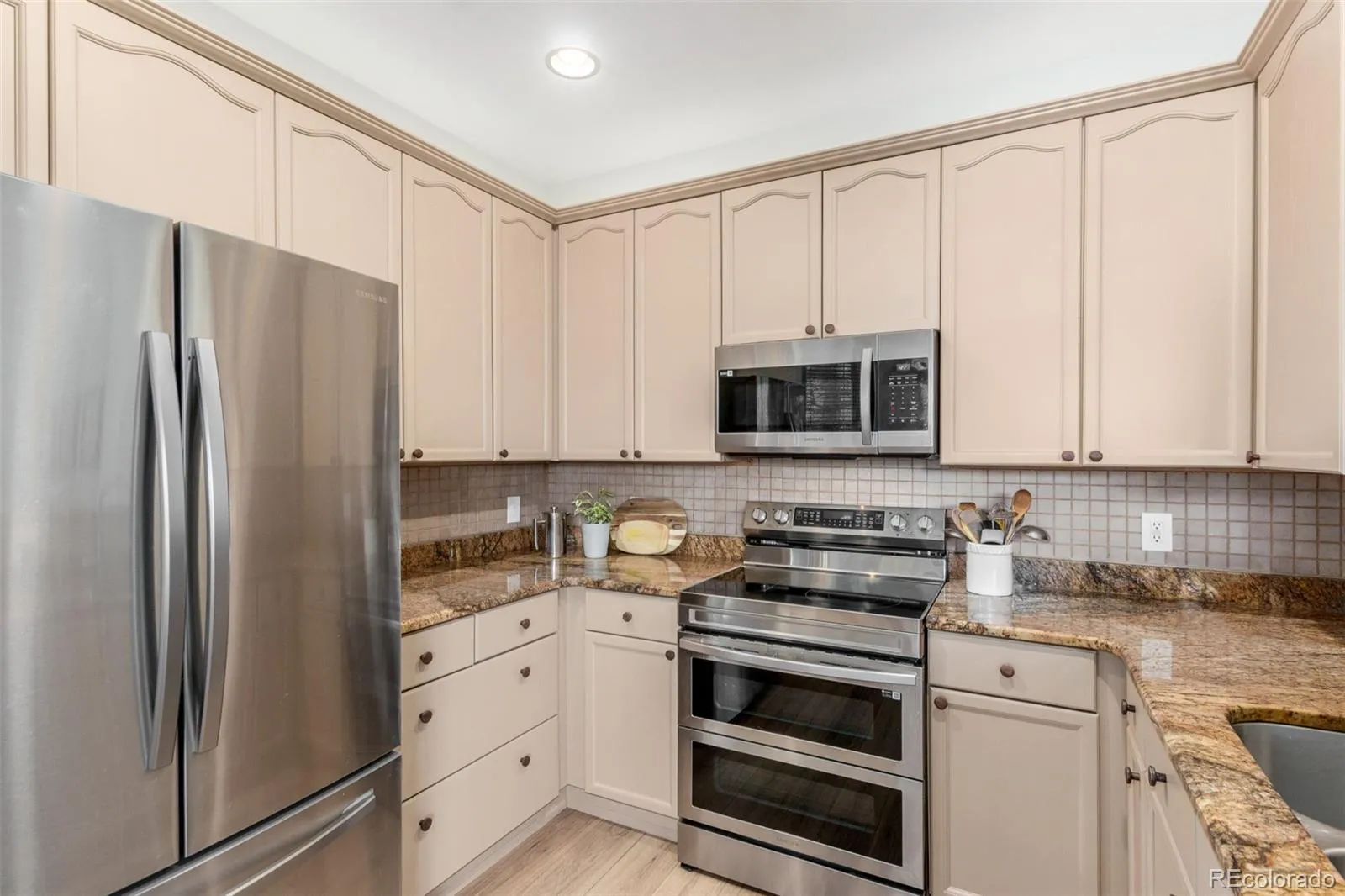 This Littleton condo delivers exactly what today’s buyers are searching for: move-in-ready confidence, low-maintenance living, & the freedom to lock the door and go—whether that’s for a weekend in the mountains or an entire season away. Set in a newer, well-maintained community with low HOA dues, this property offers peace of mind from day one. Inside, high ceilings & an open-concept layout create an easy, welcoming flow between the living room, dining area, and kitchen. Newer neutral carpet and neutral paint keep the space feeling clean and current, while a gas fireplace adds warmth. The kitchen is thoughtfully updated with newly painted cabinets, granite countertops, new LVP flooring, and stainless steel appliances—including brand-new 2026 dishwasher. All appliances are included, along with water filtration system & in-unit laundry. Both bedrooms feature closet systems, maximizing storage & organization. The owner’s suite offers a generous walk-in closet & attached full bath with a jetted soaking tub, while the secondary bedroom sits adjacent to a 3/4 hallway bathroom—ideal for guests, a home office, or flexible living. Behind the scenes, the big-ticket items are already handled. New dual insulated vinyl windows with a transferable warranty, 2yr old HVAC system, A/C, new water heater with expansion tank, electrostatic & whole-house water & RO filtration all contribute to long-term efficiency and lower ownership stress. Low HOA dues cover trash, water, sewer, snow removal, building maintenance, and access to a pool, clubhouse, and hot tub—supporting a lifestyle that’s easy, social, and outdoor-focused. With quick access to C-470, nearby trails, shopping, & the foothills, this is a smart option for a primary residence, first-time buyer, or low-maintenance vacation home base.