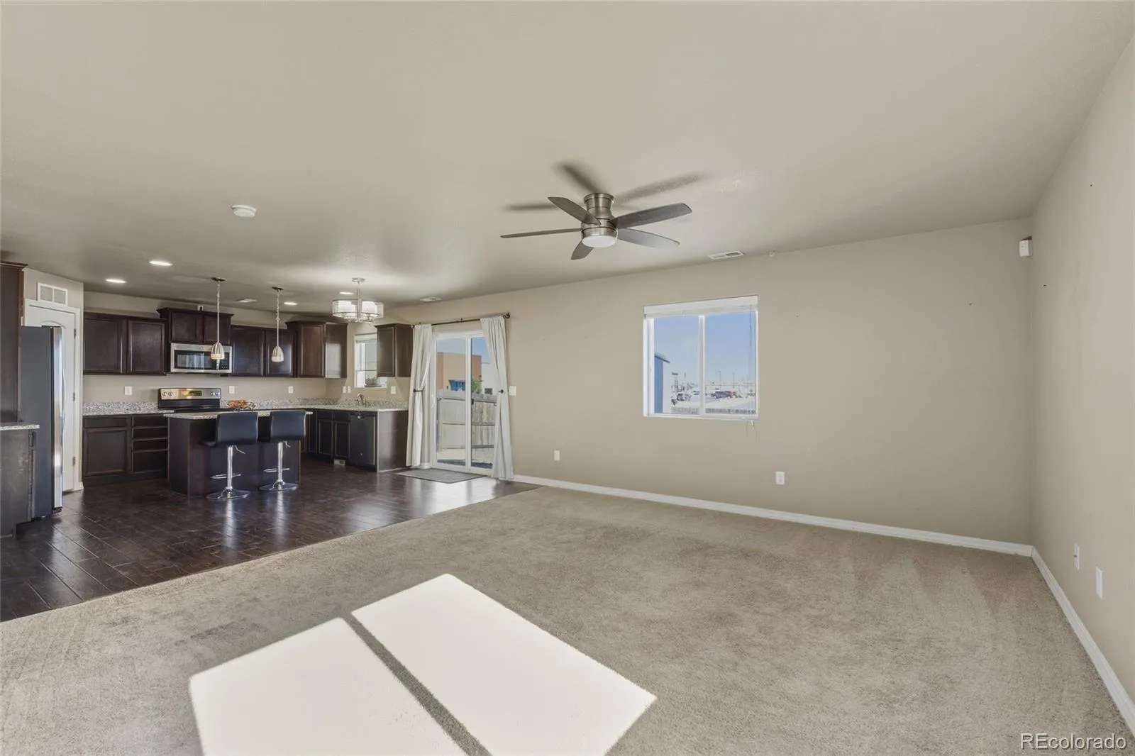 Brand NEW impact-resistant roof and fully owned solar panels set the tone for this beautifully maintained two-story home, offering long-term durability and impressively low utility costs from day one. Tucked away on a quiet cul-de-sac in Peyton, Colorado, this home delivers space, efficiency, and access to award-winning schools. Inside, a light-filled living room flows seamlessly into the open-concept kitchen featuring stainless steel appliances, a spacious pantry, generous counter space, and an island with seating, ideal for everyday living and effortless entertaining. The natural connection to the dining area makes hosting feel easy and inviting. Step outside to the expansive backyard, perfect for BBQs, outdoor gatherings, play space, or simply relaxing in the Colorado sunshine. Upstairs, the primary suite offers a peaceful retreat with a private ensuite bath. Two additional bedrooms, a full bathroom, and a convenient upstairs laundry room with ample storage complete the upper level.