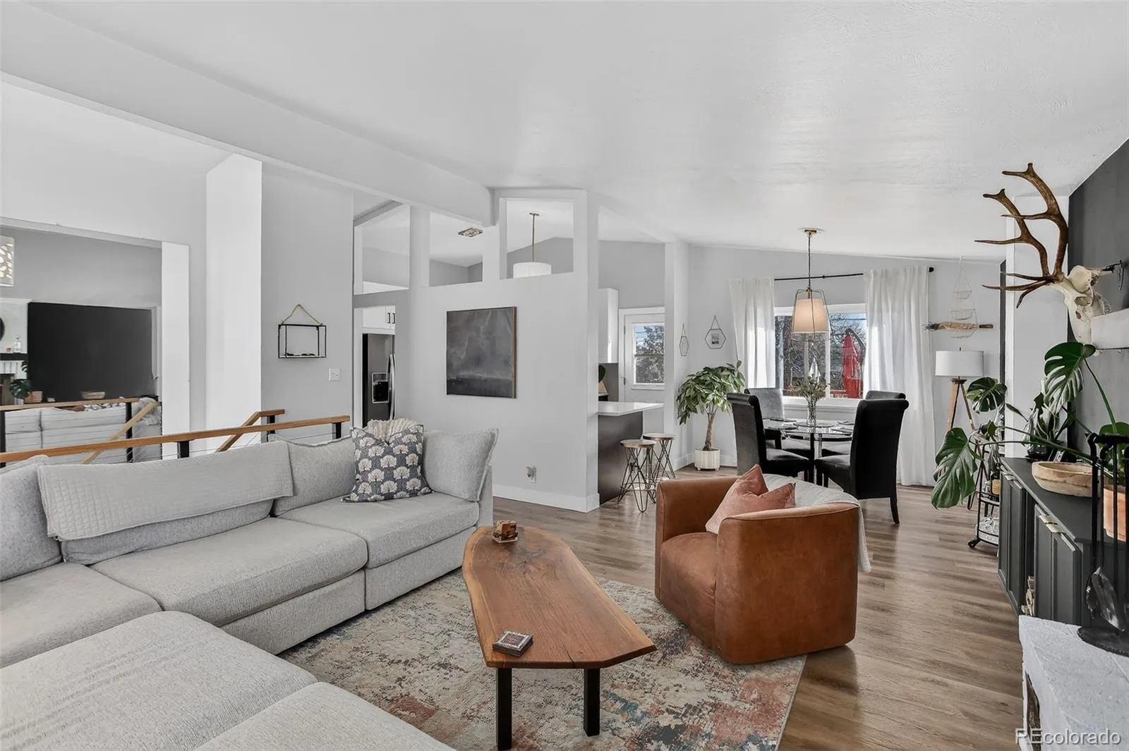Ideally located in Aurora with convenient access to Anschutz Medical Campus, major highways, shopping, and dining, this beautifully updated bi-level home blends comfort with a modern vibe. Laminate flooring flows throughout the upper and lower levels, complemented by tasteful updates that create a clean, contemporary feel. The upper level features a welcoming living room with a wood-burning fireplace and custom built-in cabinetry, a stylish dining area with pendant lighting, and an updated eat-in kitchen showcasing granite countertops, Whirlpool appliances, and direct backyard access—perfect for both everyday living and entertaining. Two upper-level bedrooms include a spacious primary suite with a ceiling fan and a sleek 3/4 tiled bathroom. The lower level expands the living space with a large family room, three additional bedrooms with closets, a full bathroom with tiled tub/shower, and a dedicated laundry room with washer and dryer included. Offering flexible living, modern updates, and a highly accessible location, this move-in-ready home presents a fantastic opportunity in an established neighborhood.