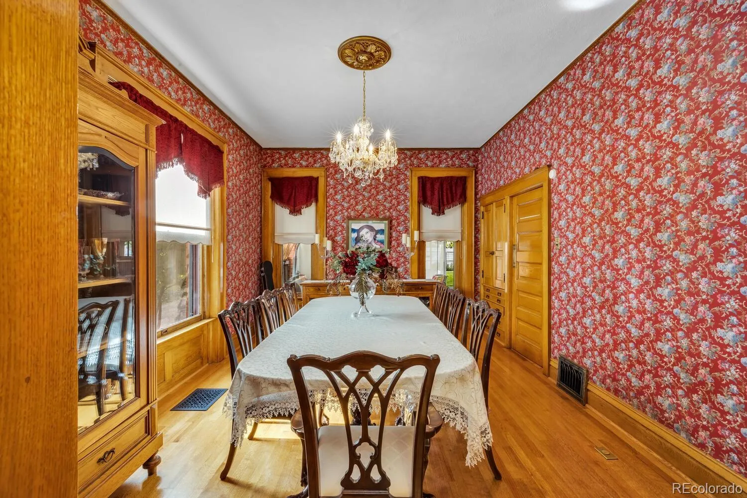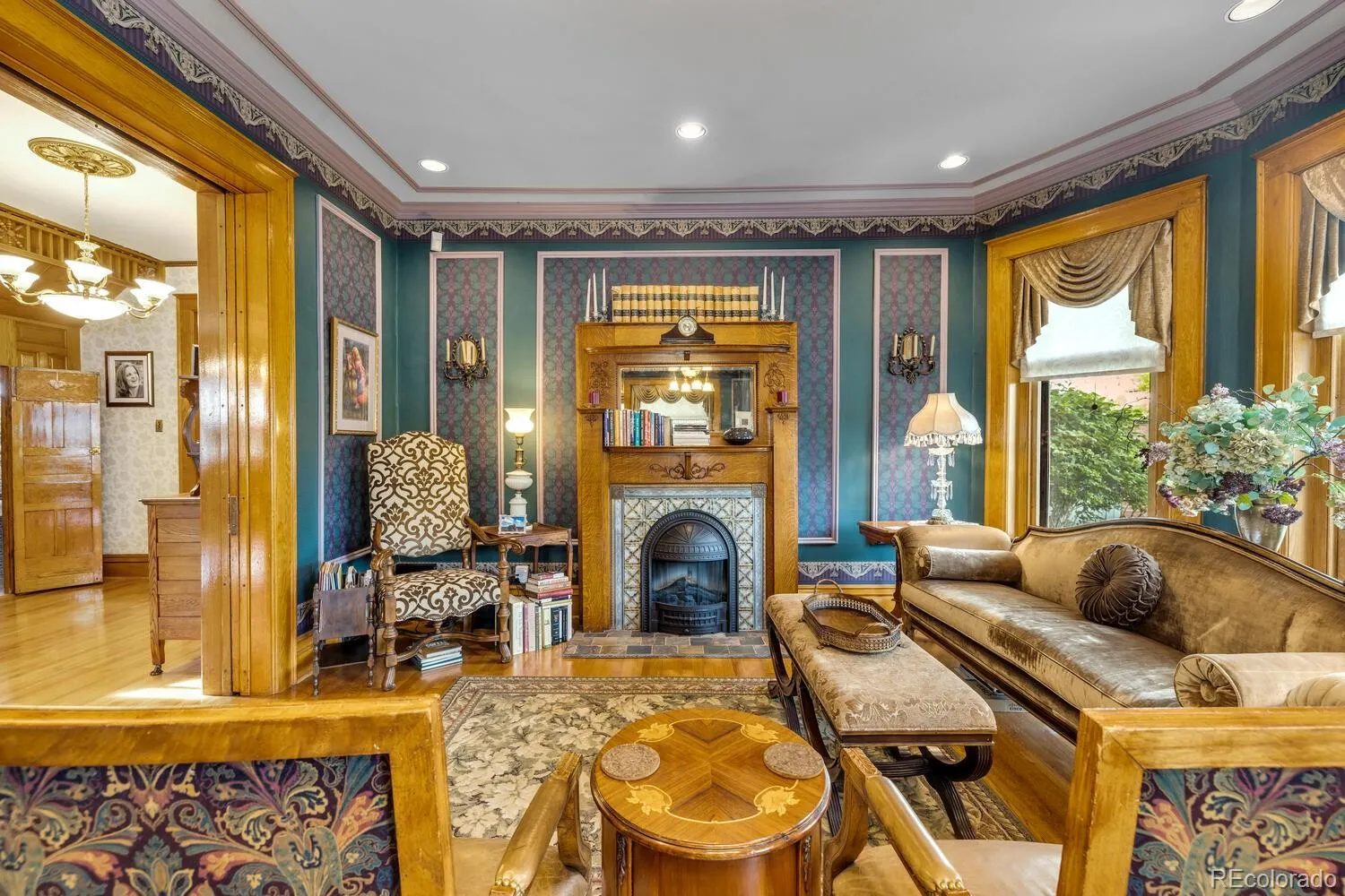 Step inside to discover grand, light-filled living spaces adorned with authentic period details — from intricate woodwork and original pocket doors to a built-in china cabinet in the formal dining room. The elegant front parlor offers the perfect setting for formal entertaining or relaxing fireside with a quiet cup of tea.