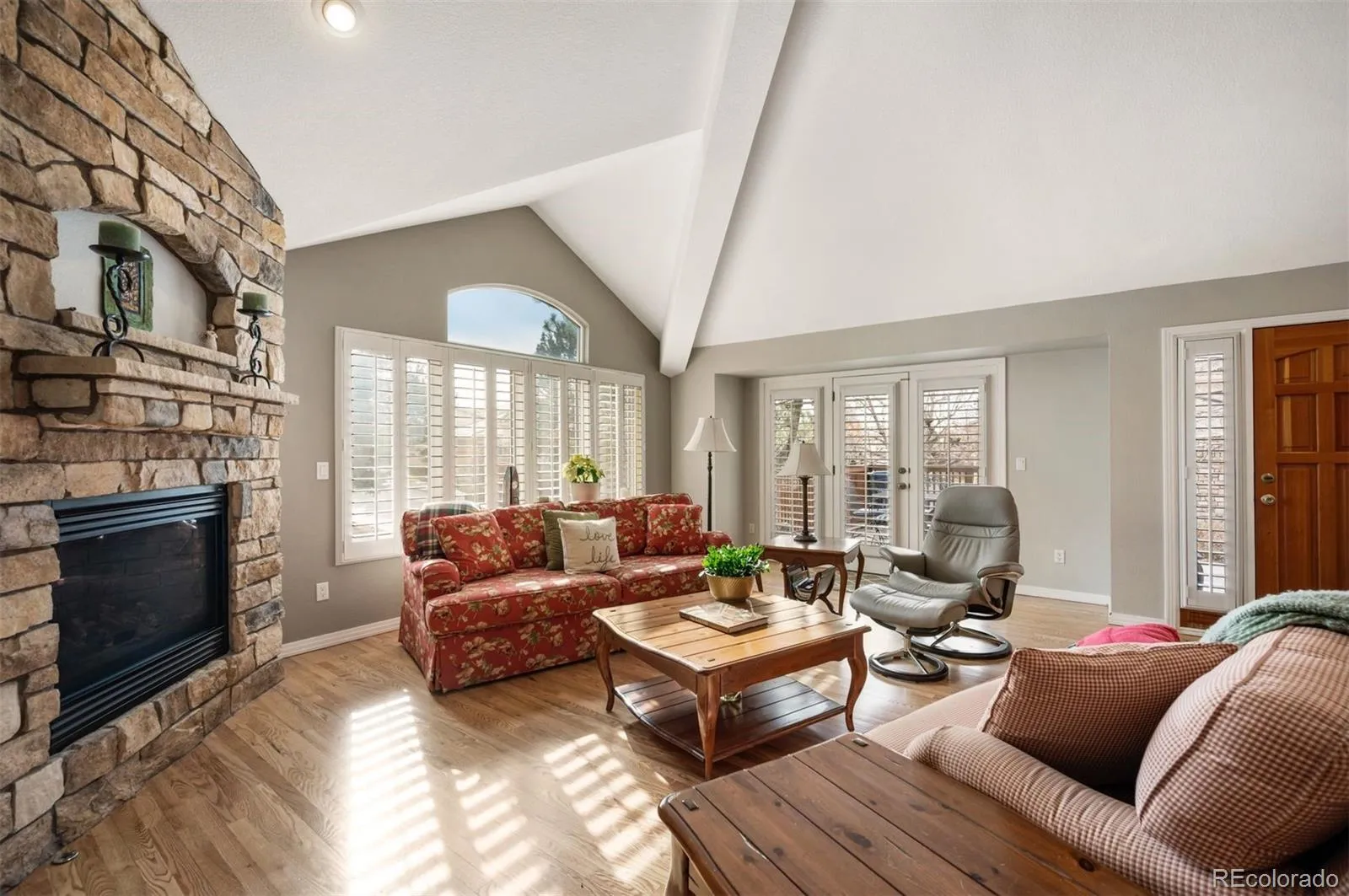 Set within one of the few gated communities that back directly to Cherry Creek Reservoir and only 30 minutes to DIA, this refined patio home offers a truly effortless lifestyle with rare access to open space. The residence includes 2,400 finished square feet plus an additional 1,800-square-foot basement, providing exceptional flexibility. Hardwood floors run throughout the main living areas, complemented by an updated kitchen with white cabinetry, quartz countertops, and tile backsplash that create a timeless, understated aesthetic. Vaulted ceilings and a fireplace anchor the living room, while plantation shutters add architectural polish. The main-floor primary suite features a five-piece bath and walk-in closet, with a second main-level bedroom ideal for guests or a home office. Upstairs, a secondary living room, guest bedroom, and bathroom offer a private retreat. A rebuilt deck, shaded by mature trees, extends the living space outdoors. HOA includes exterior maintenance, landscaping, snow removal, trash, recycling, and access to a clubhouse, pool, and hot tub. Step outside to direct reservoir trail access—a rare opportunity to find.