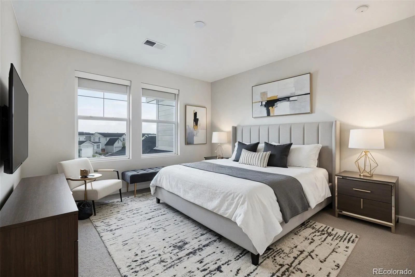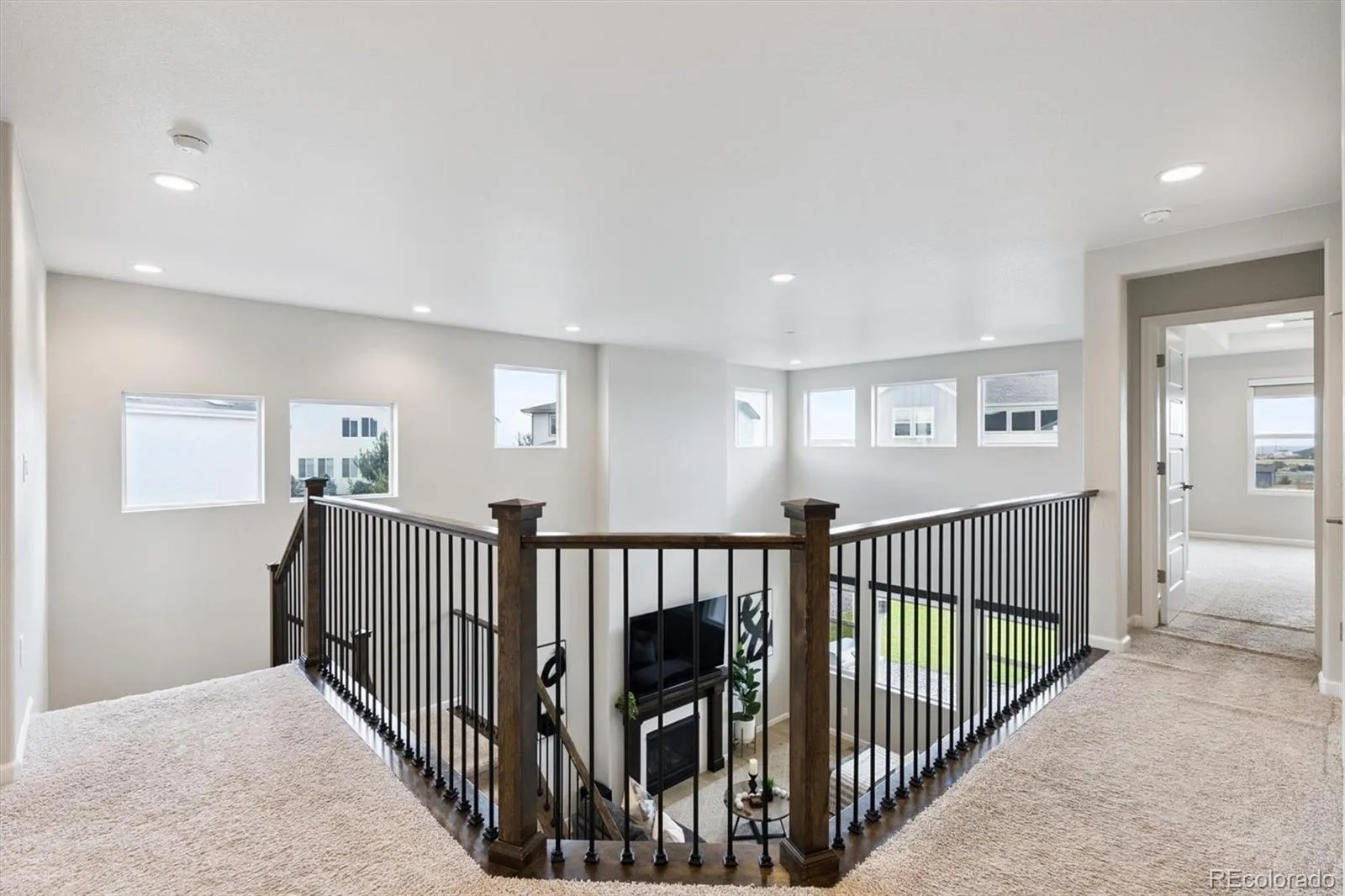 Built in 2023 and located on a quiet cul-de-sac in Castle Pines, this 5-bedroom, 5-bathroom single-family home offers 4,354 finished square feet and backs directly to open space with panoramic mountain views. The surrounding neighborhood is highly sought after for its peaceful atmosphere and strong sense of community, offering a welcoming environment that perfectly complements the quiet cul-de-sac setting. Featuring one of the highest finished square footages for this floor plan in the neighborhood, this home is immaculately maintained and completely move-in ready. The open floor plan features vaulted ceilings and abundant natural light throughout. The main level includes a dedicated home office, sunroom, playroom, and a spacious family room that opens directly to the backyard—ideal for everyday living and entertaining. The kitchen flows seamlessly into the living areas, while custom blackout shades, dual HVAC systems, and a whole-house humidifier provide comfort and efficiency year-round. Brand New Refrigerator! Upstairs, the primary suite is a private retreat with an oversized walk-in shower featuring multiple shower heads, including a rainfall option, and two generous walk-in closets. Secondary bedrooms are notably spacious, each accommodating king-size beds with functional closets. The finished basement expands the living space with a large recreation room, additional bedroom, full bathroom, and a dedicated home gym—offering flexibility for guests, work, or recreation. The fully fenced backyard backs to open space and captures sweeping views of Pikes Peak and the surrounding mountains, creating a peaceful and private setting. Wildlife sightings add to the sense of space and natural beauty. Conveniently located near I-25, Castle Rock, Castle Pines, and the Denver Tech Center, this home combines privacy, views, and accessibility. A 3-car garage completes the property, and the seller is including a 1-year Fidelity National Home Warranty.