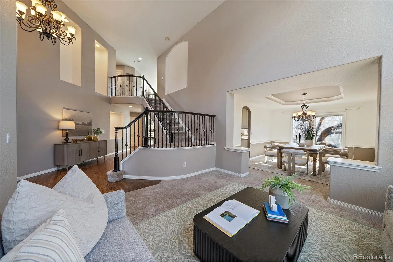 The garden-level basement is designed for relaxation, entertaining and home projects featuring a cozy room with fireplace and built-ins, a craft room with cabinetry and granite countertop and a large rec room with wet bar, mini-fridge, projector and screen and a game-table area with bay windows. An additional bedroom and 3/4 bath, along with a crawl space for storage complete the basement. The drywalled 3-car garage has an exterior door to the backyard. New furnace & AC in 2021. Minutes from Harmony Rd and endless amenities. Check out the floor plans with the photos as well as the 3D tour!