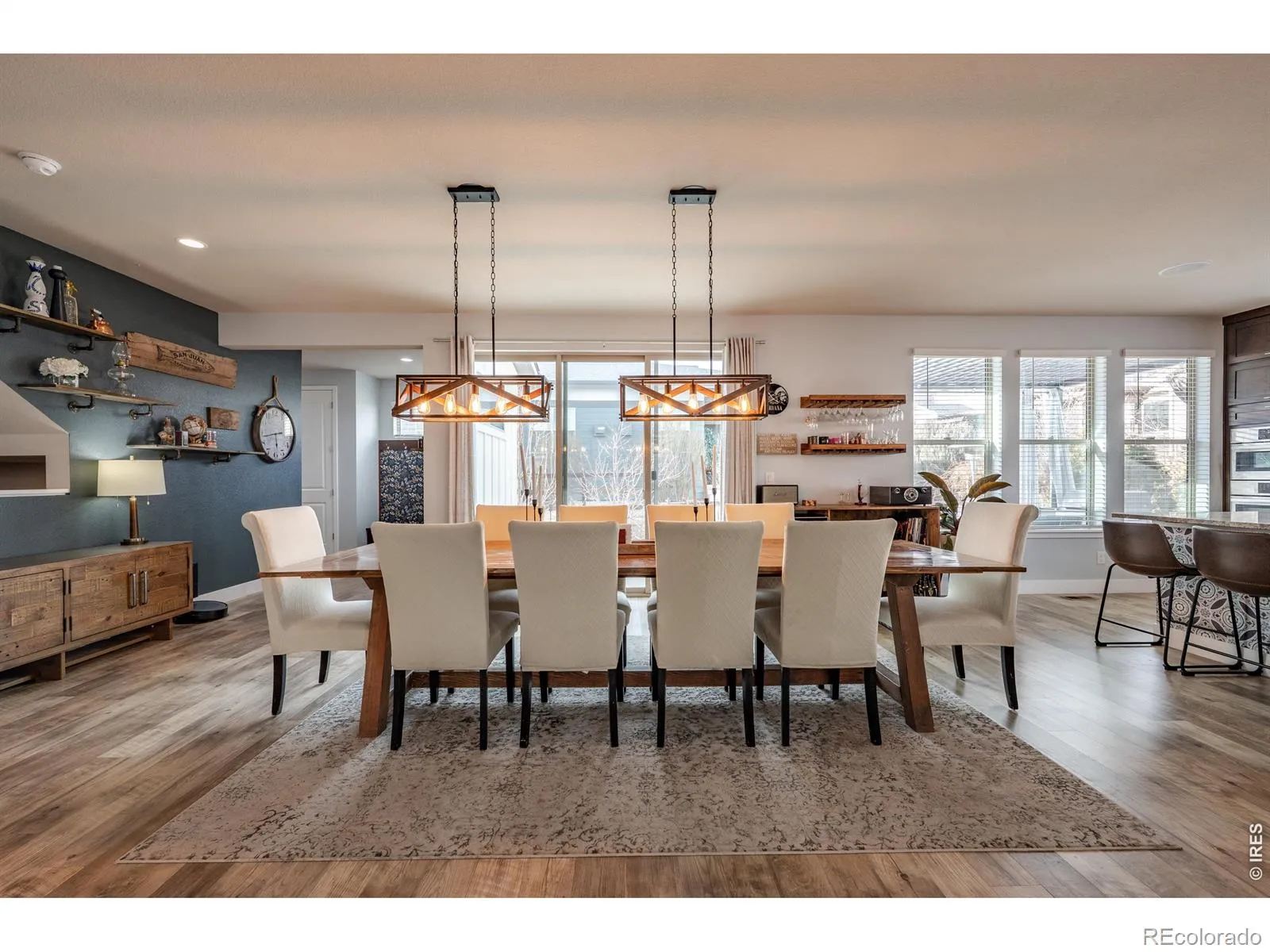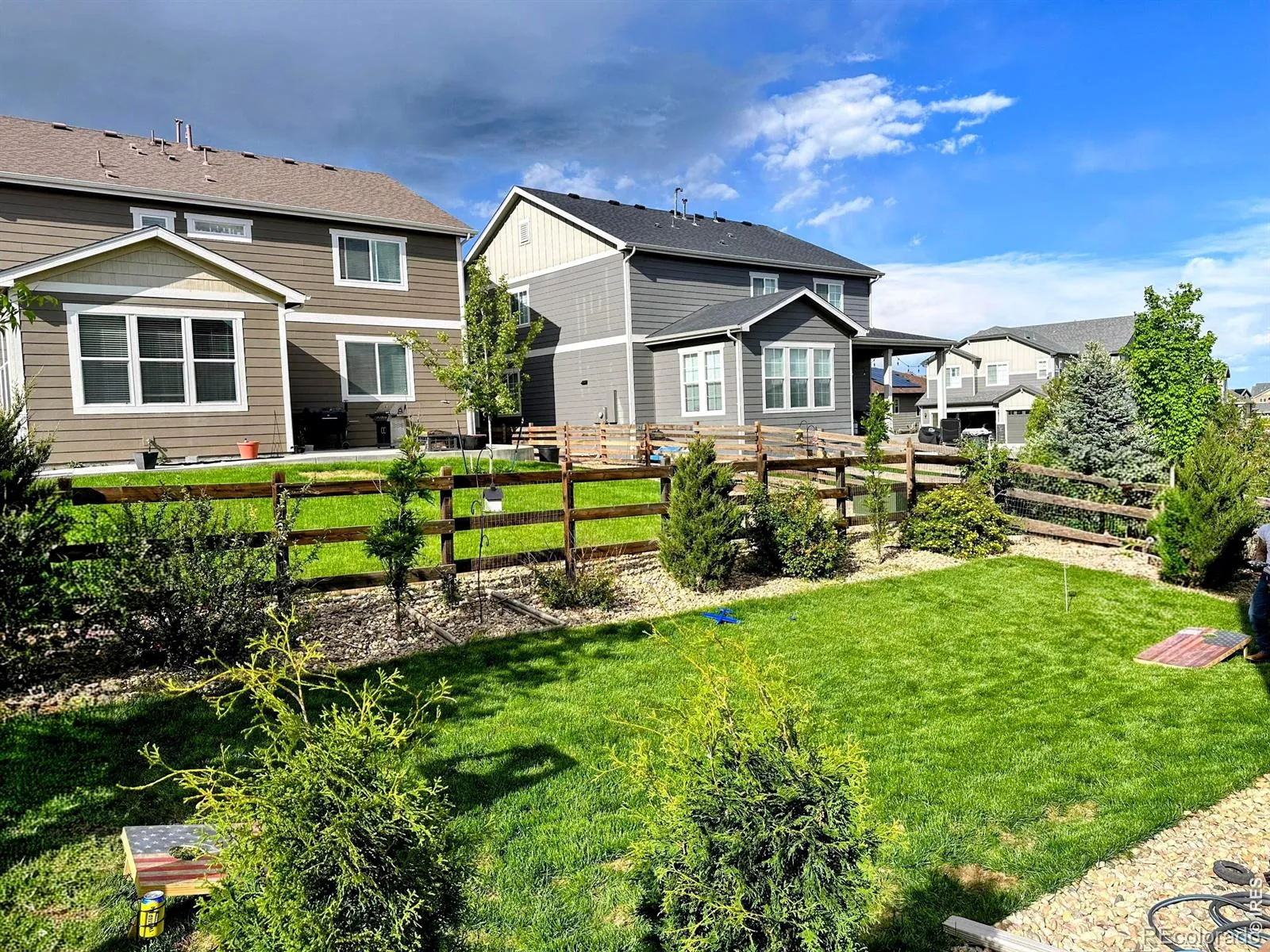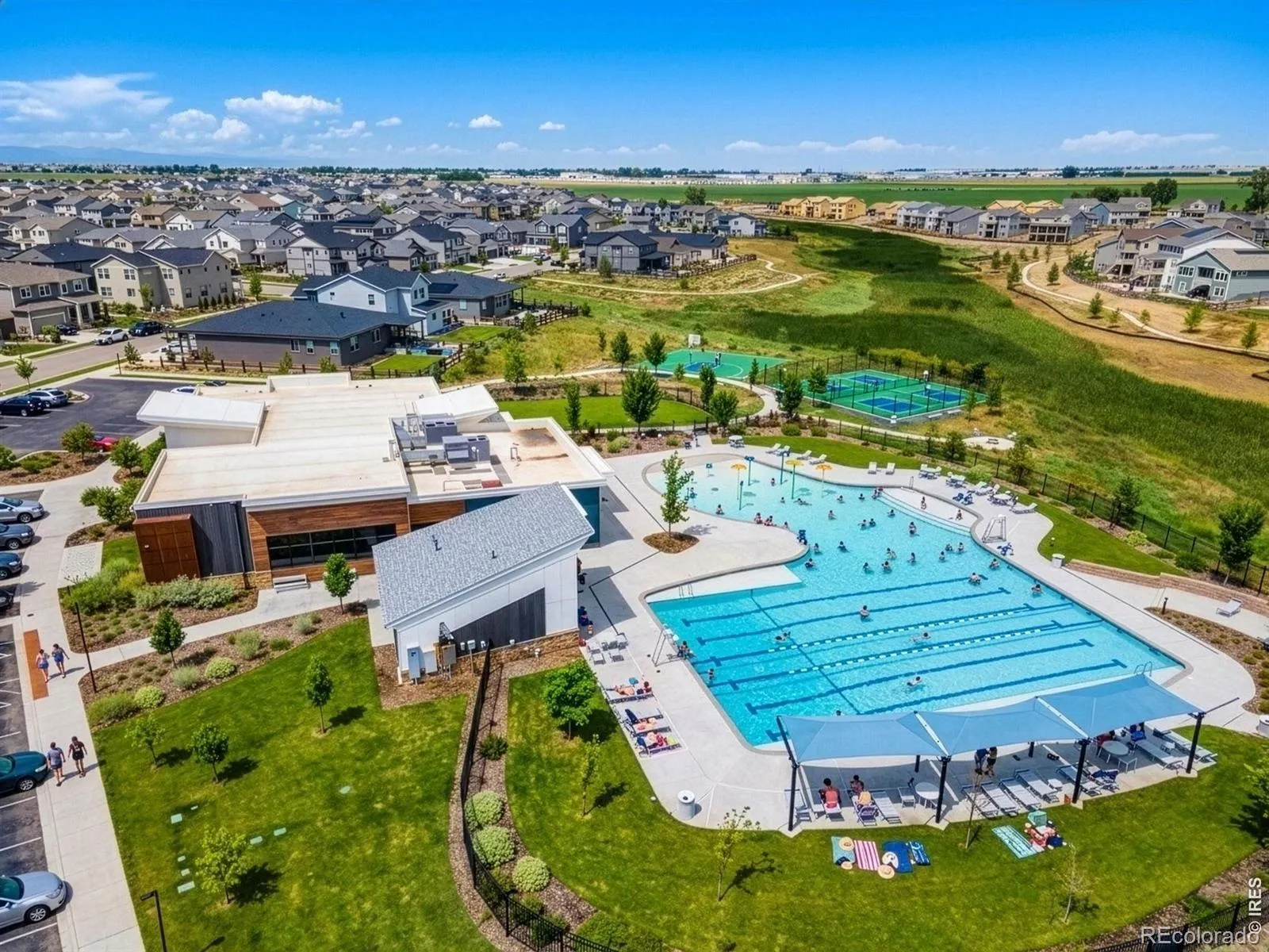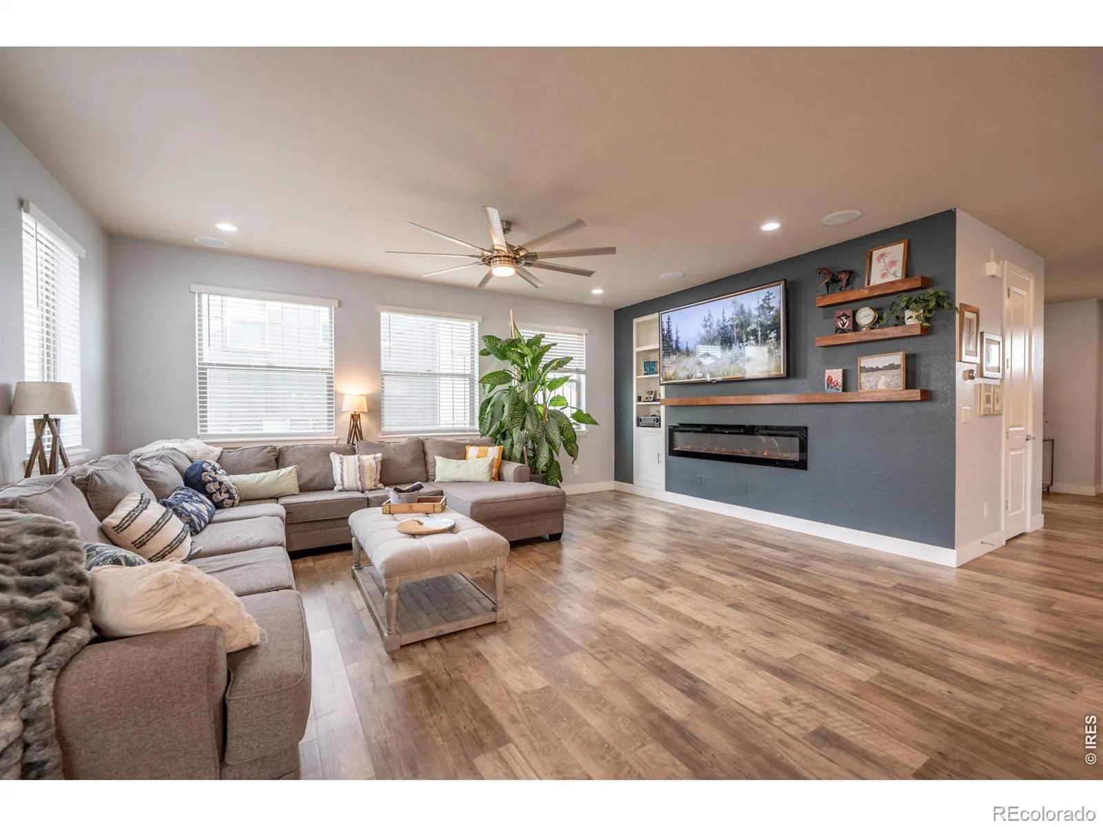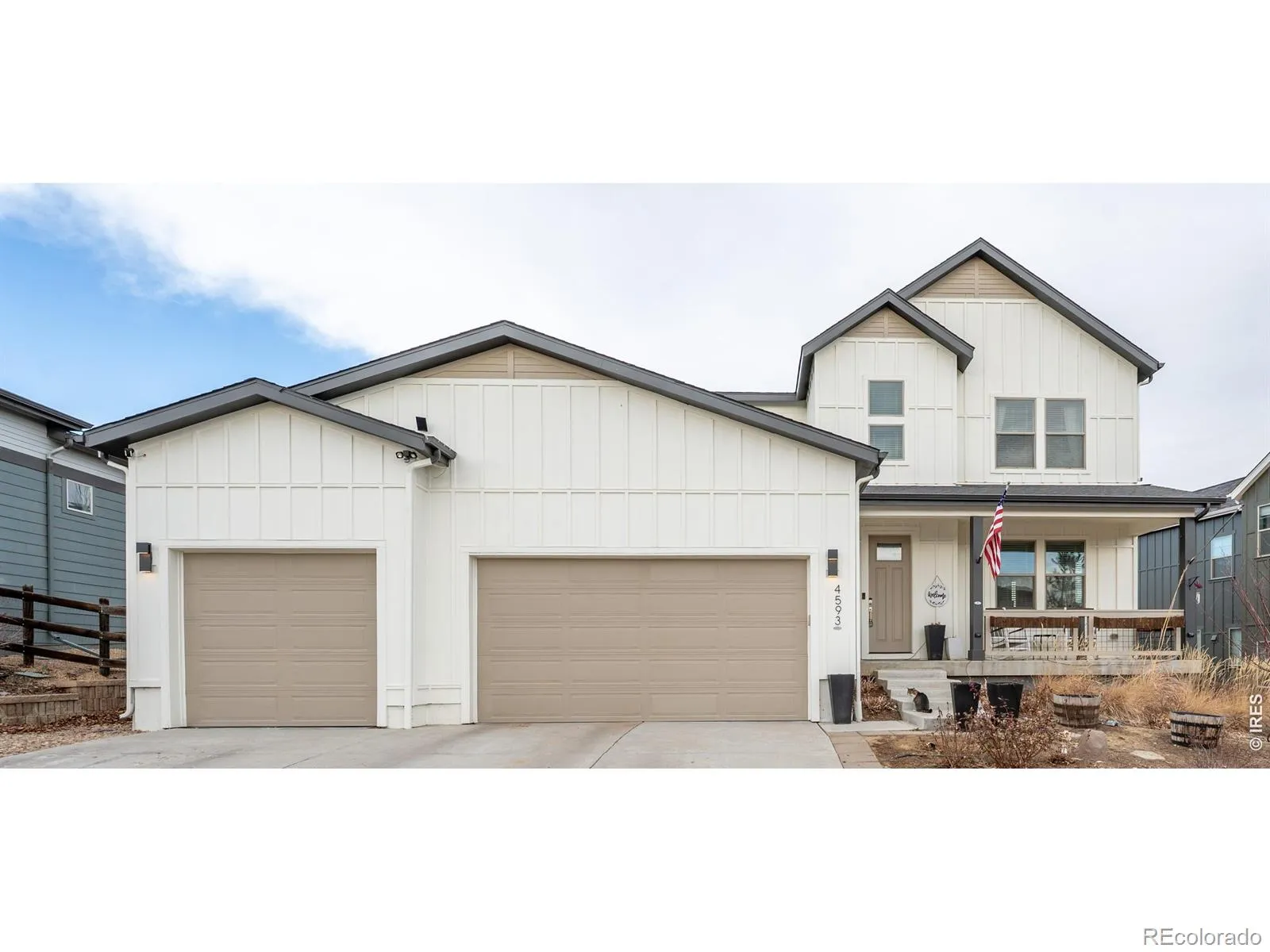 Welcome to 4593 Colorado River Drive in Firestone – a stunning Brookfield Semi-Custom built home that blends luxury, space, & effortless entertaining. From the moment you step inside, you’ll notice the expansive open-concept layout flooded with natural light, soaring 8′ doors, & oversized windows that create an airy, inviting feel throughout. The heart of the home is the stunning chef’s kitchen, featuring Bosch and Kenmore Elite appliances, Tharp custom cabinetry, a massive center island, gas cooktop, & double ovens-perfect for hosting everything from casual gatherings to holiday dinners. Full-wall glass patio doors seamlessly connect the interior to a huge partially covered side porch, making indoor-outdoor entertaining a breeze. The main floor also offers a generous private office-ideal for working from home, along with a thoughtfully designed mudroom & extended pantry space off the 3 car garage-perfect for easy grocery drop-offs and everyday organization. The living area is anchored by a modern fireplace, custom walnut mantel & shelving, adding warmth & style. Upstairs, you’ll find 3 spacious bedrooms (secondary bedrooms are separated by a wonderful jack & jill bathroom), primary suite is on the back of the home offering comfort & privacy for everyone. Primary Suite is generous with an onsite bathroom that will knock your socks off! The finished basement expands your living space even further with a large family room & fantastic dry bar-ideal for entertaining, guests. 4th bedroom & bathroom are also in the basement, plus two separate storage areas. Outside, enjoy relaxing mornings on the welcoming front porch, & spend evenings in the backyard garden area with a nicely sized yard, perfect for play, pets, or quiet downtime. This Energy Star-rated home is exceptionally well insulated, providing year-round comfort & a quiet interior. Luxury finishes, custom details, & a layout designed for both everyday living & unforgettable entertaining-this home truly has it all.