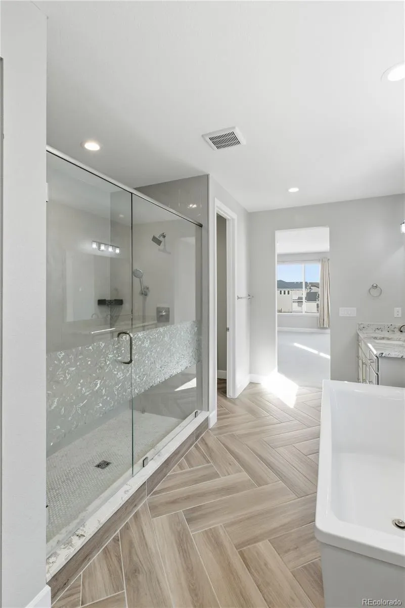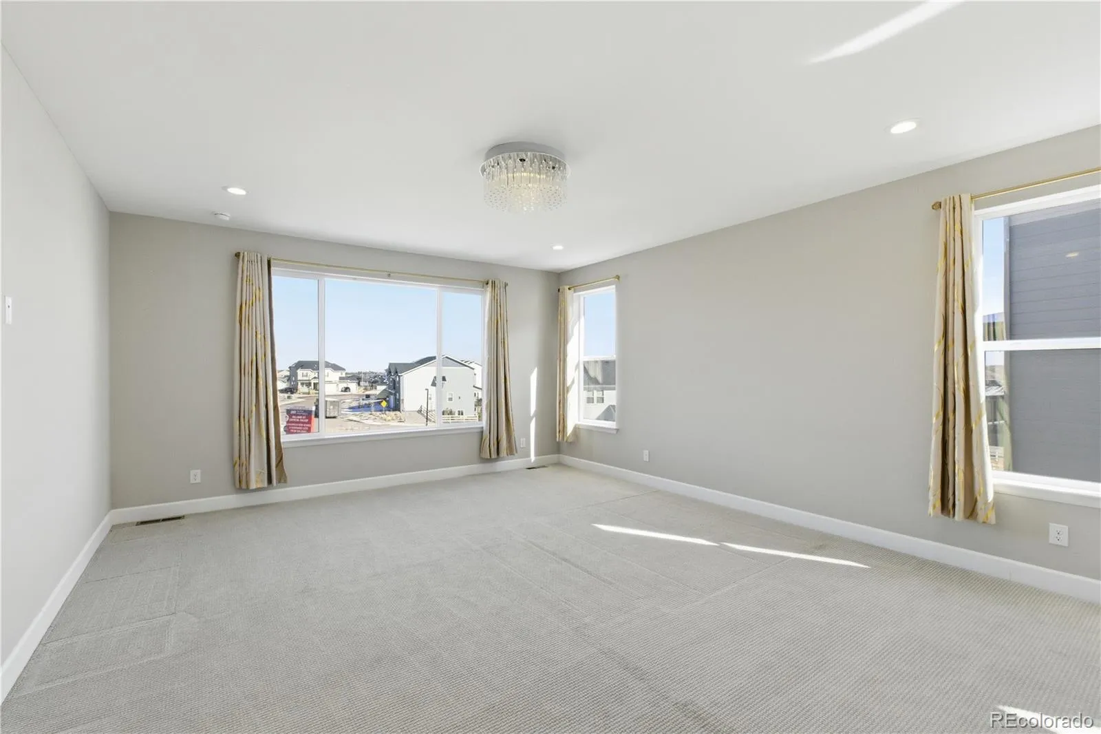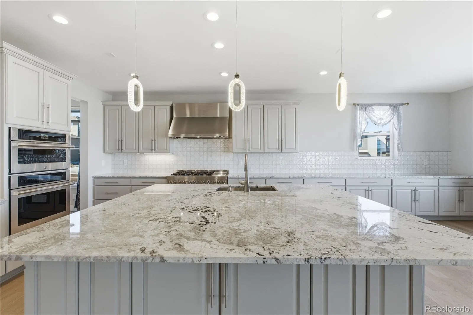 Experience the opportunity to own the first resale in the coveted Ridge at Crystal Valley. This one year old contemporary masterpiece blends the pristine feel of new construction with the sophisticated upgrades today’s buyers crave including designer lighting, custom window treatments, enhanced closet systems, and professionally completed low-maintenance landscaping. The grand, sun drenched entry leads to soaring ceilings and expansive windows that frame the Colorado sky, creating an immediate sense of scale. At the heart of the home, the inviting family room features a sleek fireplace and flows effortlessly into a chef inspired kitchen complete with granite counters, a gas range, and double ovens. Thew four-panel sliding glass wall dissolves the line between the interior and the outdoor deck for a true indoor outdoor lifestyle.