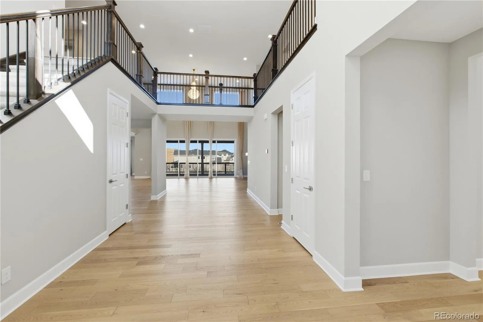 Step inside and feel the sense of space. A grand, sun-filled entry opens to impressive soaring ceilings, expansive windows, and an airy layout designed for both connection and relaxation. The inviting family room features a fireplace and flows effortlessly into the dining area and chef-inspired kitchen, where granite counters, stainless steel appliances, a gas range, and a double oven make cooking and entertaining a delight. The 4-panel sliding door completely transforms the main level, creating a seamless transition to the outdoor deck and capturing Colorado’s indoor-outdoor lifestyle.