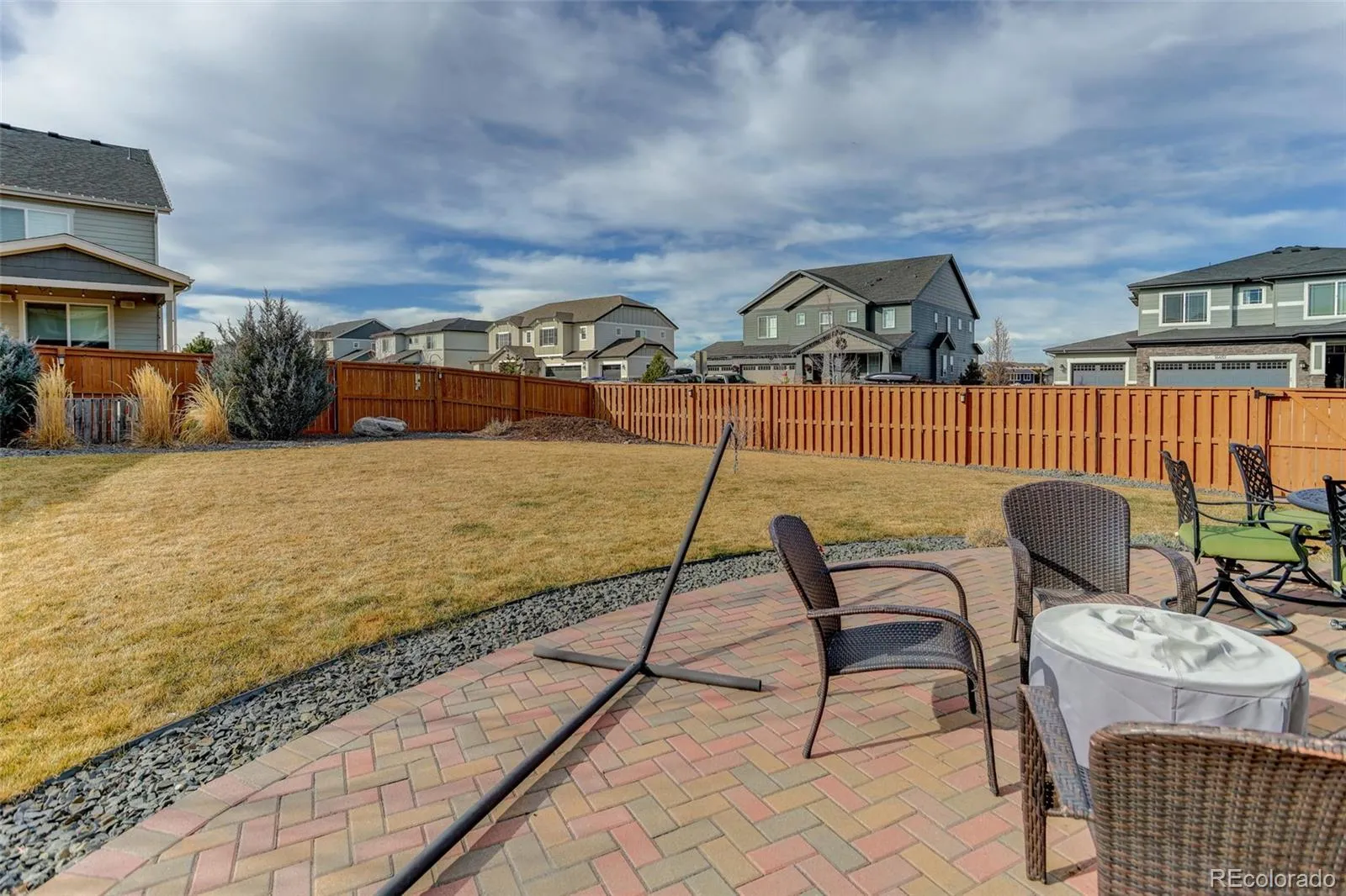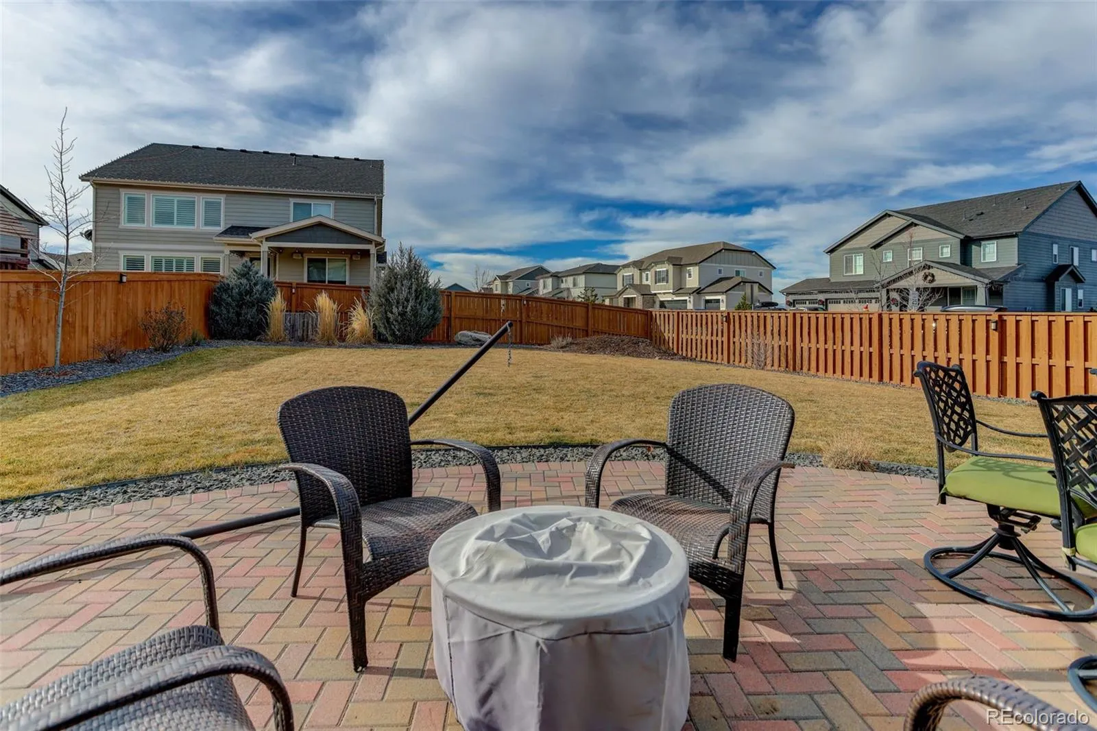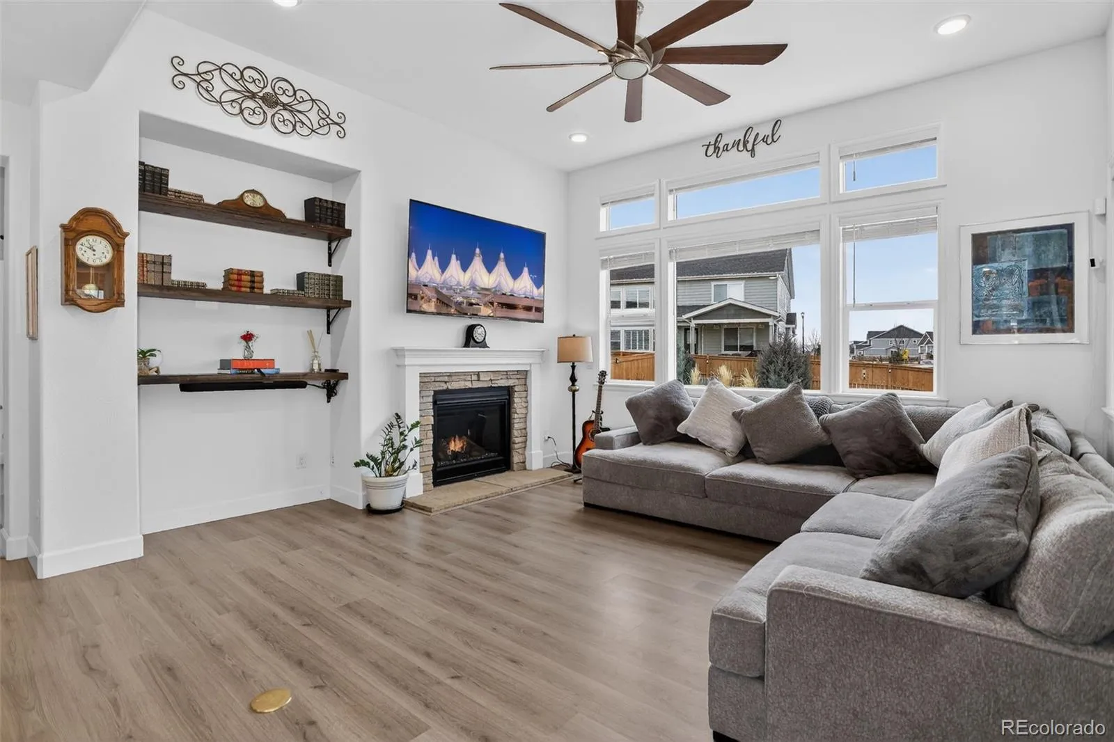 1% Rate Buy Down for one year if buyer uses Texana Bank*. Perfectly positioned on a desirable corner lot in the Buffalo Run Golf Community in the vibrant Villages of Buffalo Run, this beautifully maintained home offers a seamless blend of thoughtful design, everyday functionality, & elevated outdoor living with convenient access to parks, trails, dining, shopping, & major commuter routes. The main level features durable laminate flooring, a spacious dining area, & living room with vaulted ceilings, near floor-to-ceiling windows that flood the room with light & a cozy gas fireplace—creating an inviting atmosphere for both sun-filled afternoons and relaxing nights. The chef’s kitchen anchors the home with quartz countertops, stainless steel appliances including a gas stove & double oven, large island, eat-in space, recessed & pendant lighting, & direct access to the backyard. A private office with French doors offers ideal work-from-home setup, while an oversized mudroom closet provides abundant storage & organization. Upstairs, a versatile loft adds flexible living space alongside a well-appointed laundry room with tile flooring & built-in shelving. The expansive primary suite is a true retreat, complete with walk-in closet & spa-inspired en-suite bath featuring dual granite vanities, a standalone soaking tub, & a tiled shower. Secondary bedrooms are generously sized with walk-in closets & share a full bath with double sinks & granite counters. Enjoy outdoor living, whether entertaining or relaxing, year-round on the covered patio, upgraded with ceiling fan, recessed lighting, & motorized privacy shades. Enjoy a custom brick patio, raised garden bed, & permanent JellyFish exterior holiday/accent lighting. Additional highlights include 3-car garage with polyurea flooring & storage shelving, & unfinished basement with bathroom rough-in offering endless potential. A home that seamlessly blends space, style, and location—this is the one you’ve been waiting for!