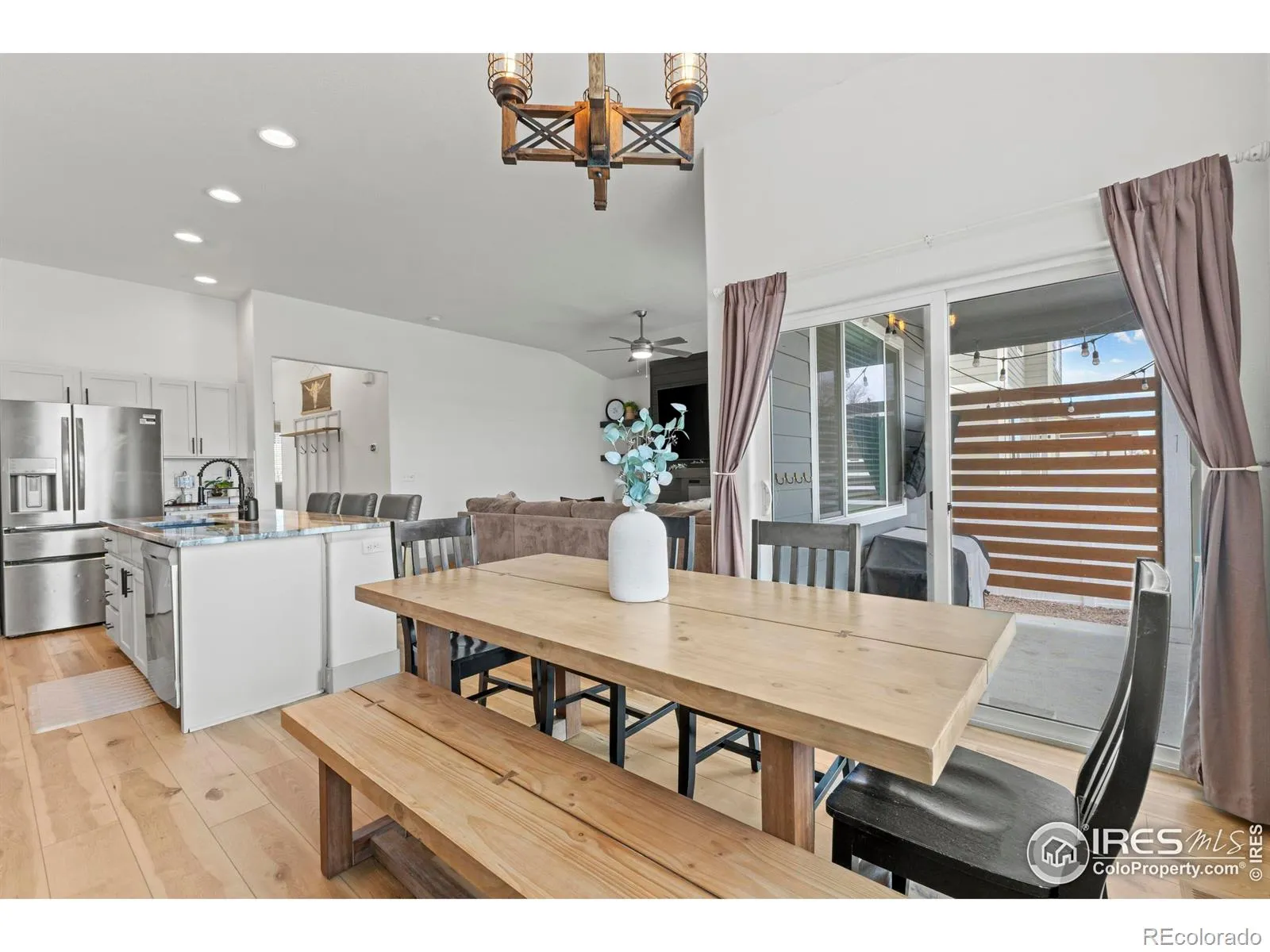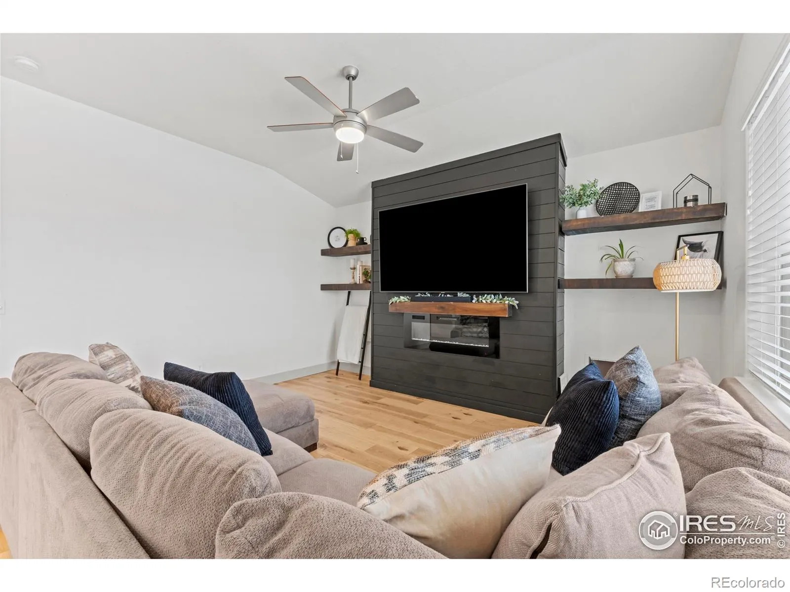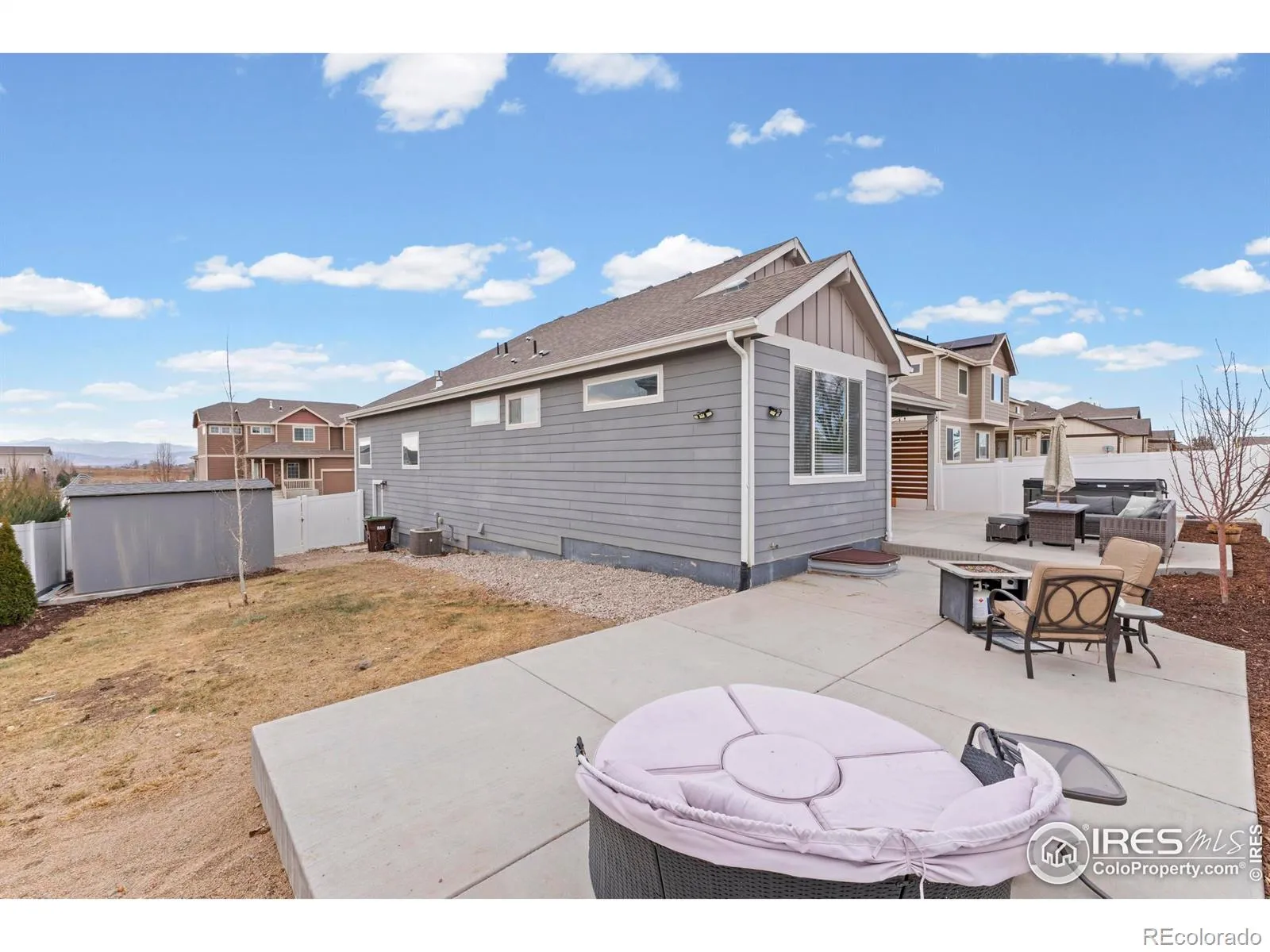 Step into this move-in ready gem in Hunters Crossing, where style meets space and everyday life flows effortlessly. This raised ranch offers 3 bedrooms upstairs and 2 downstairs, providing versatile spaces for work, play, or relaxation. The full basement features a dedicated theater room, bar, and game area-perfect for movies, games, or hosting friends.The heart of the home is the updated kitchen, open to the living room, where quartz countertops, new cabinets, and a striking fireplace feature make entertaining and everyday living a joy. Sunsets, mountains, and wide-open skies greet you from the front patio, while the oversized concrete backyard patio offers room to grill, entertain, and unwind in style. Behind the home, enjoy open-field privacy with no rear neighbors, giving you space to breathe without feeling isolated. Every detail has been thoughtfully updated in a cohesive, modern style, making this home significantly more refined than the typical builder-grade finishes in the neighborhood. Ideally located, you’re just minutes from Fort Collins, Windsor, Timnath, and Greeley, putting all of Northern Colorado within easy reach.Whether hosting friends in the kitchen and living areas, catching a quiet sunset from the side patio, or enjoying the theater and game spaces in the basement, 1216 Muskox Street offers a lifestyle of connection, comfort, and versatility. Don’t miss this rare opportunity to own a stylish, spacious home in a welcoming community.