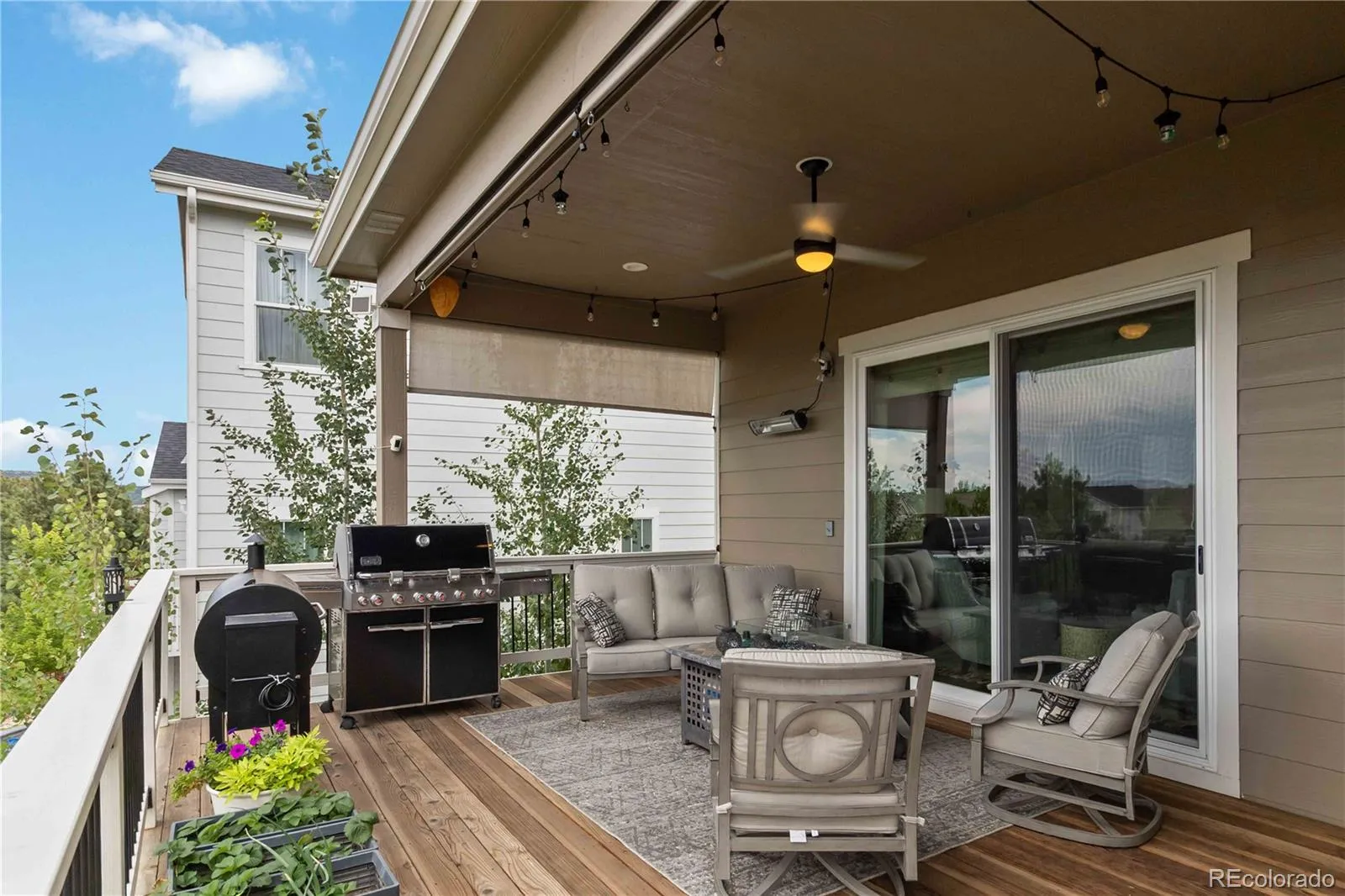 Welcome HOME! This home has it all. Located on a cul-de-sac in Blacktain at the Meadows. This home features a 3 car garage & BACKS TO OPEN SPACE! Many upgrades throughout including OWNED solar panels, whole house humidifier plus recirculating pump for instant hot water & extended deck. This is a spacious ranch style home with 2 en-suites in addition to the primary bedroom. Great options for multi-generational living! There is also a formal dining room perfect for large gatherings. The main level family room features a gorgeous fireplace and a slider upgrade in place of a window. High ceilings on both levels grace this layout and create ample natural light. Home incluses custom window blinds, rods & draperies. Enjoy a private oasis out back: covered deck, trails & setting. Seller has added over $20k in professional landscaping including fruit trees and garden beds. Kitchen features a large island perfect for entertaining! Enjoy a walk in pantry, high end stainless appliances: induction stove, double ovens & smart refrigerator. Primary retreat feels like you are on vacation. Gorgeous views out back! Large soaking tub & spacious walk in closet. Upgraded motion lights in laundry room too! Most bedroom also feature gorgeous ceiling fans. Tastefully decorated throughout! Descend the spacious stairs to the fully finished basement featuring an upgraded private office space, 2 bedrooms & full bathroom. Plenty of storage left over. One of a kind opportunity for main level living in the heart of Castle Rock. Minutes to Red Hawk Ridge golf course & main street in Castle Rock. Enjoy an amazing community pool & club house!