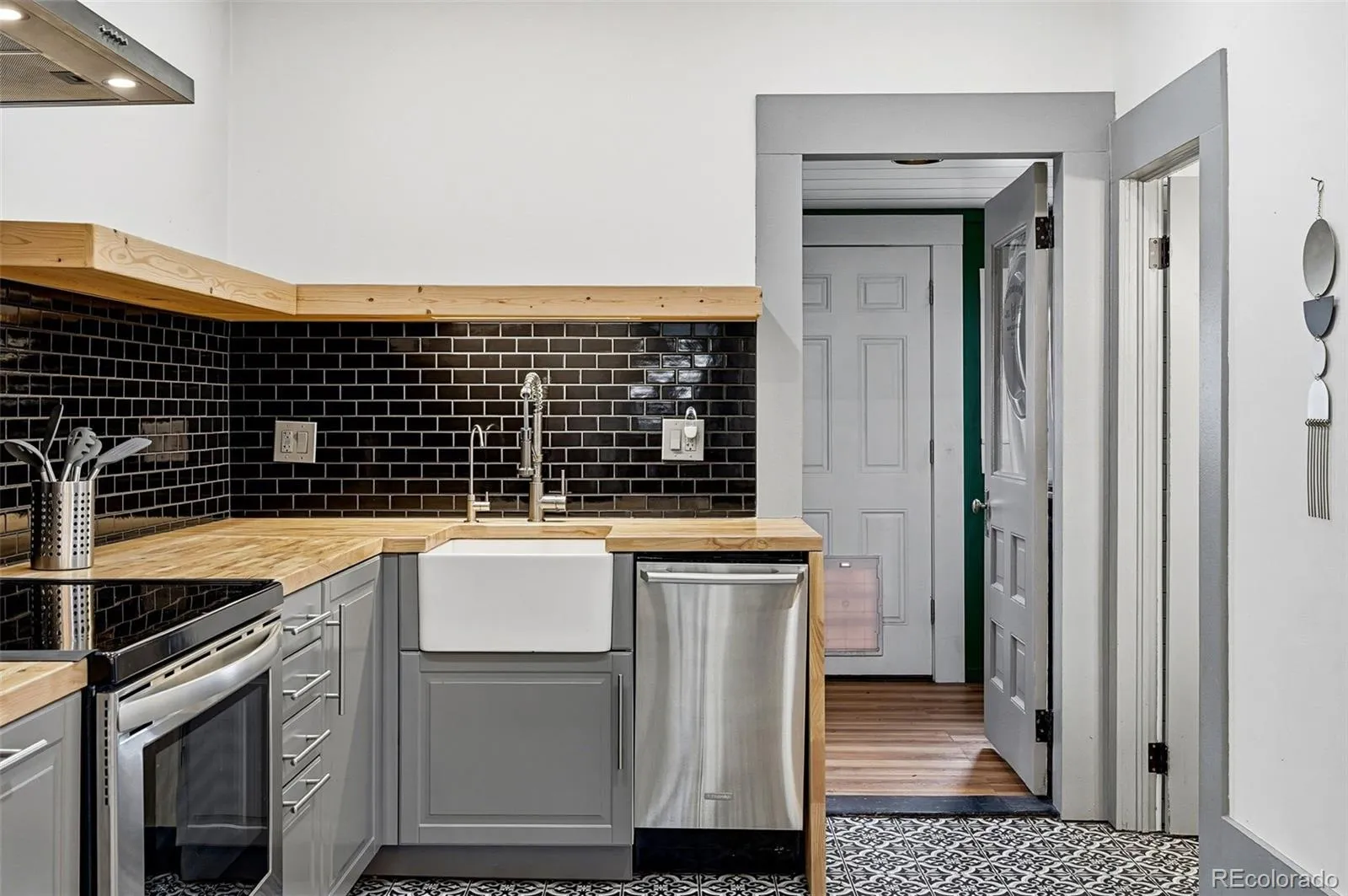 This beautiful, completely updated 1-bed, 1-bath half-duplex is perfectly located just one block from the Tennyson Street Cultural District in the highly sought-after Berkeley neighborhood and blends vintage charm, thoughtful upgrades, and unbeatable access to one of Denver’s most beloved lifestyle corridors. Step inside to discover a bright and inviting interior featuring soaring 10’ ceilings, sparkling hardwood floors, and oversized windows that flood the space with natural light. Farmhouse-inspired kitchen and separate dining area designed with both function and design in mind feature Italian tiles, butcher block counters, induction stove/oven, and reverse-osmosis water filter. Mudroom off kitchen features additional storage and main-floor laundry for ease. The inviting front porch is perfect for soaking in the neighborhood’s social and walkable atmosphere while the fenced backyard is ideal for both quiet mornings and evening gatherings. Detached one-car garage and one-car off-street parking space, central A/C and sprinkler system. The location sets this home apart within one block to César Chávez Park and next to dining, grocery, coffee, retail, yoga/Pilates and so much more! Easy to rent too! Seller is a licensed Colorado Realtor.