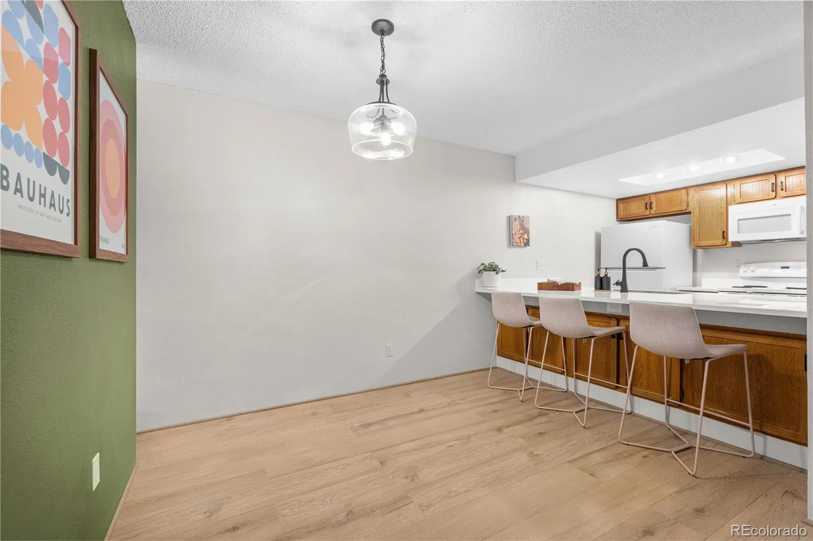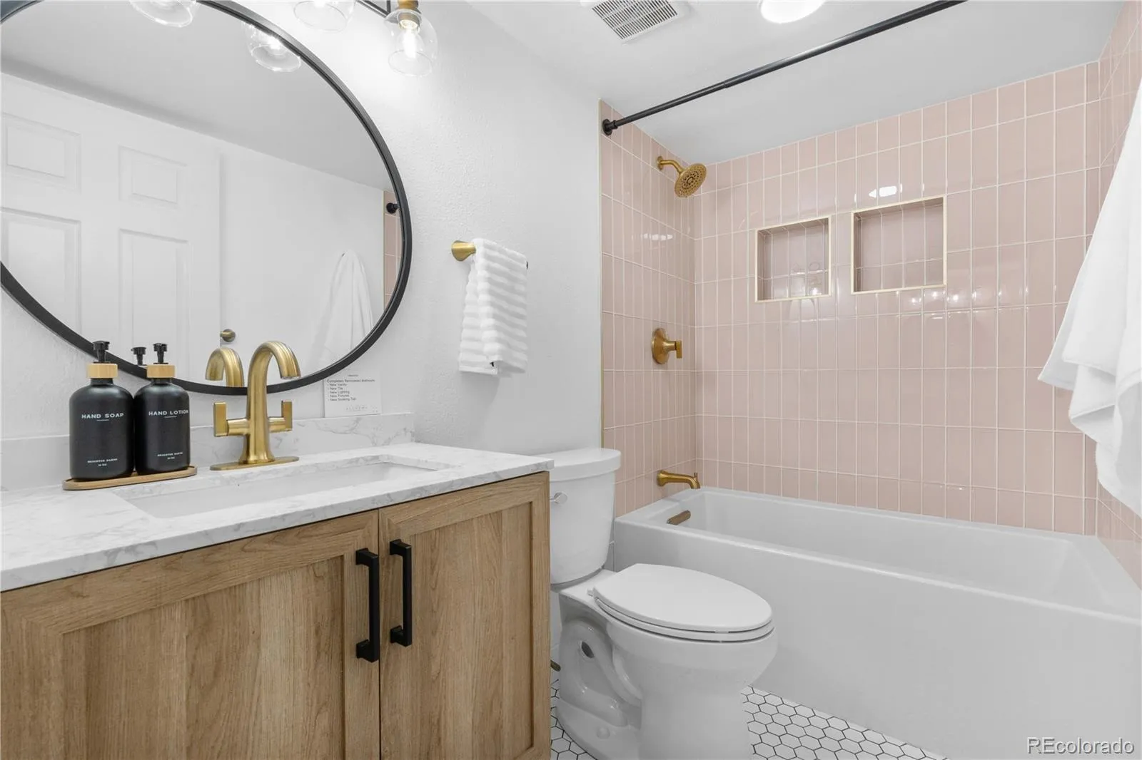 Check out this stylish, updated ground-floor condo just minutes from Cherry Creek and steps to the High Line Canal Trail. This roomy 1-bed, 1-bath property has an open feel with modern updates throughout. The kitchen features brand-new quartz countertops while the bathroom feels like a mini spa thanks to the oversized soaking tub and updated vanities. The cozy wood-burning fireplace features cool tile work and custom wood acoustic panels. Fresh luxury vinyl flooring, updated lighting, and new paint give the whole place a clean, modern vibe. A one car garage and in unit laundry finish this property off nicely.